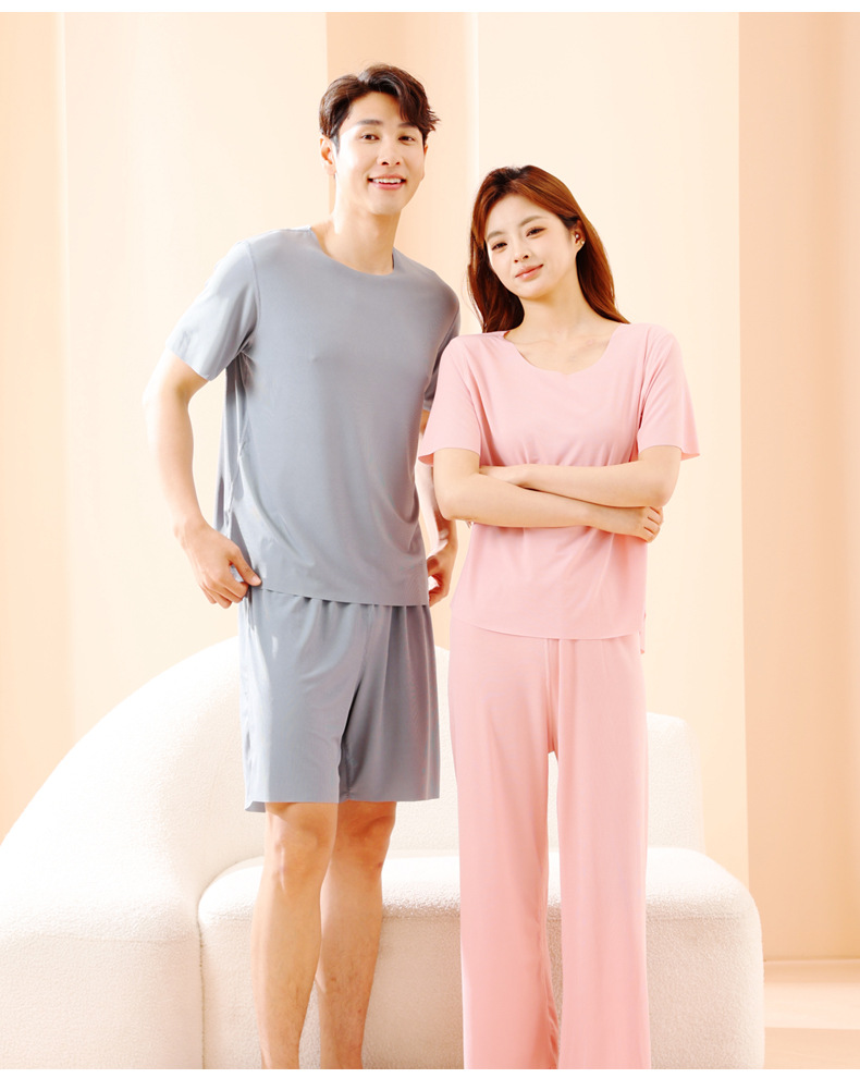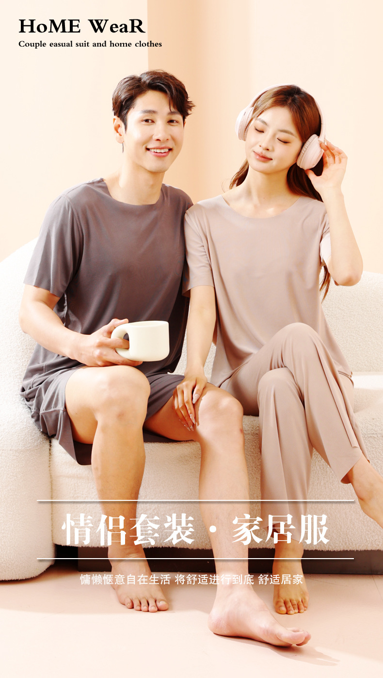 TikTok Quick Hands 인터넷 연예인 느슨한 여성 커플 잠옷 아이스 실크 투피스 캐주얼 홈 의류 여름 파자마 여성 여름