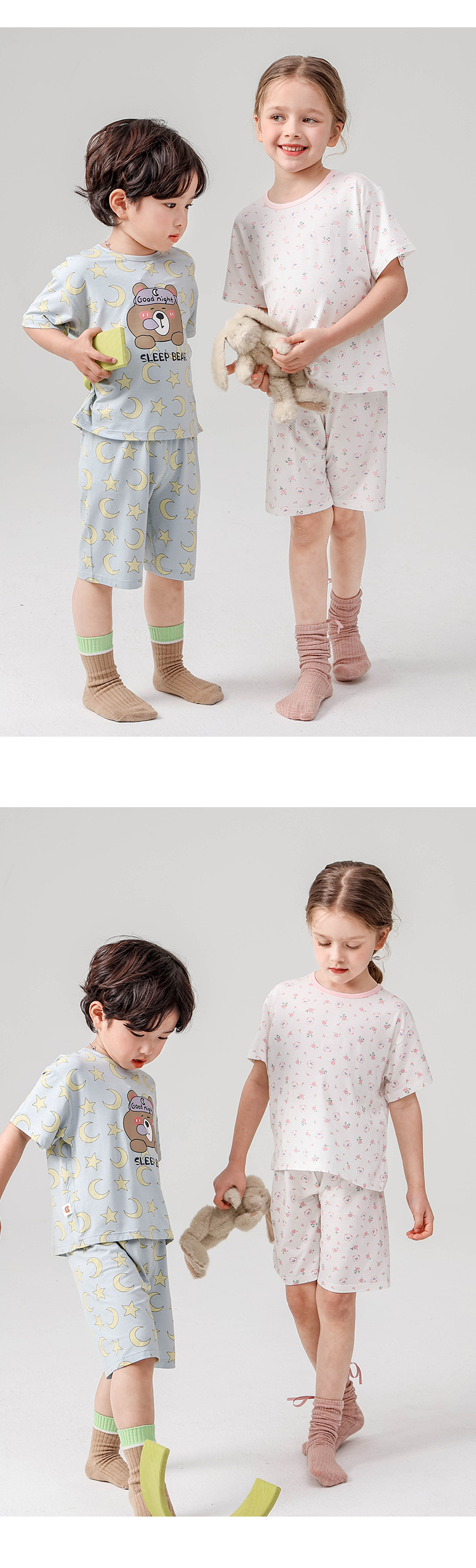 ZYZ 디자이너 여름 어린이 에어컨 옷 통기성 반팔 잠옷 귀여운 토끼 Yassel 소녀 홈웨어스토어 가기