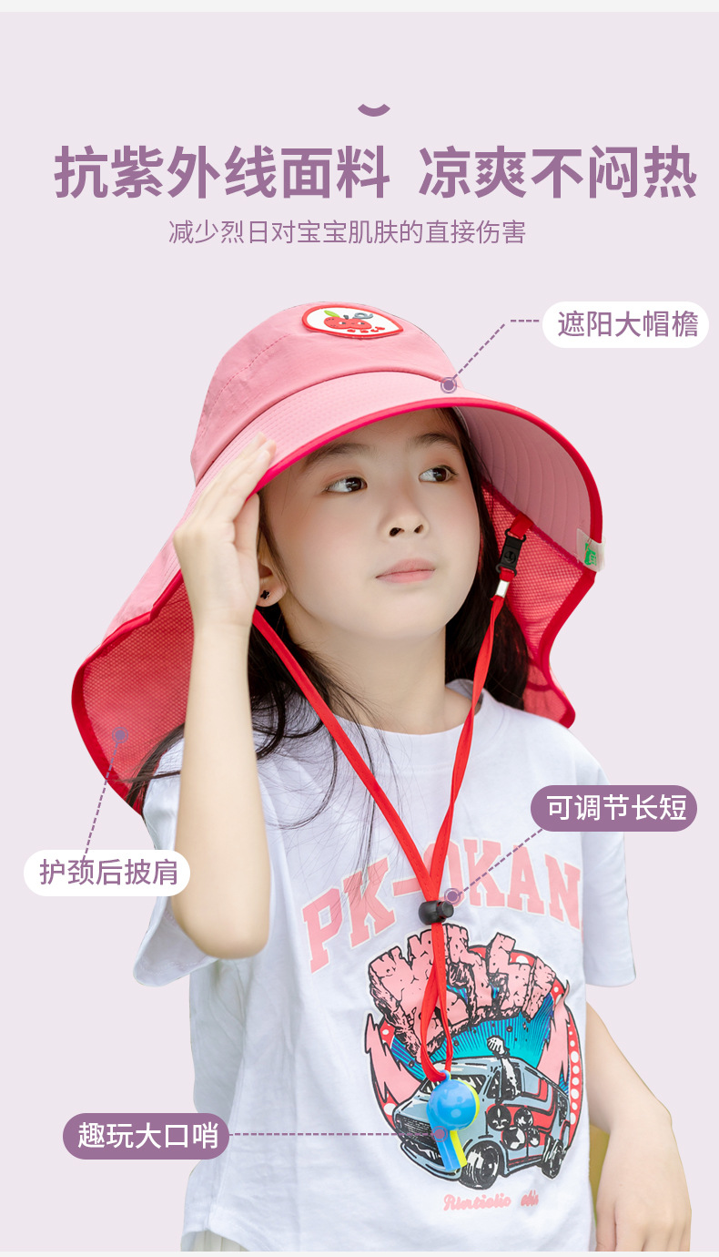 여름 외출시 여아를 위한 어린이 모자, 자외선 차단 및 목 보호, 챙이 큰 다용도 자외선 차단 모자, 귀여운 아기 반공 모자