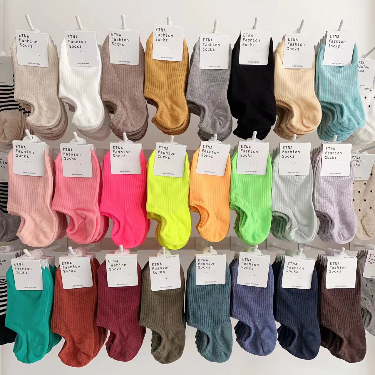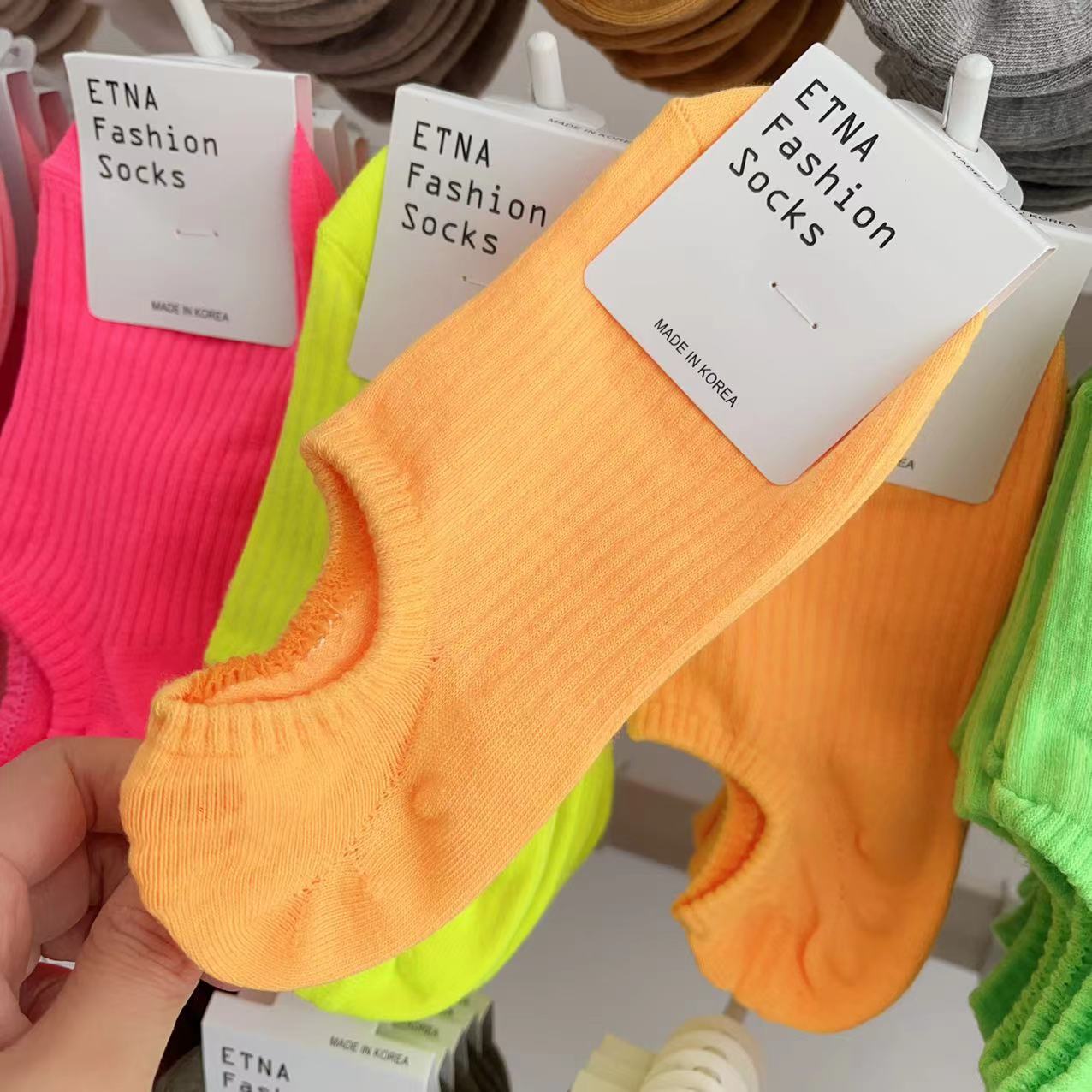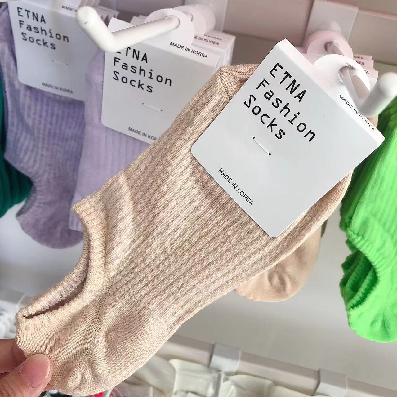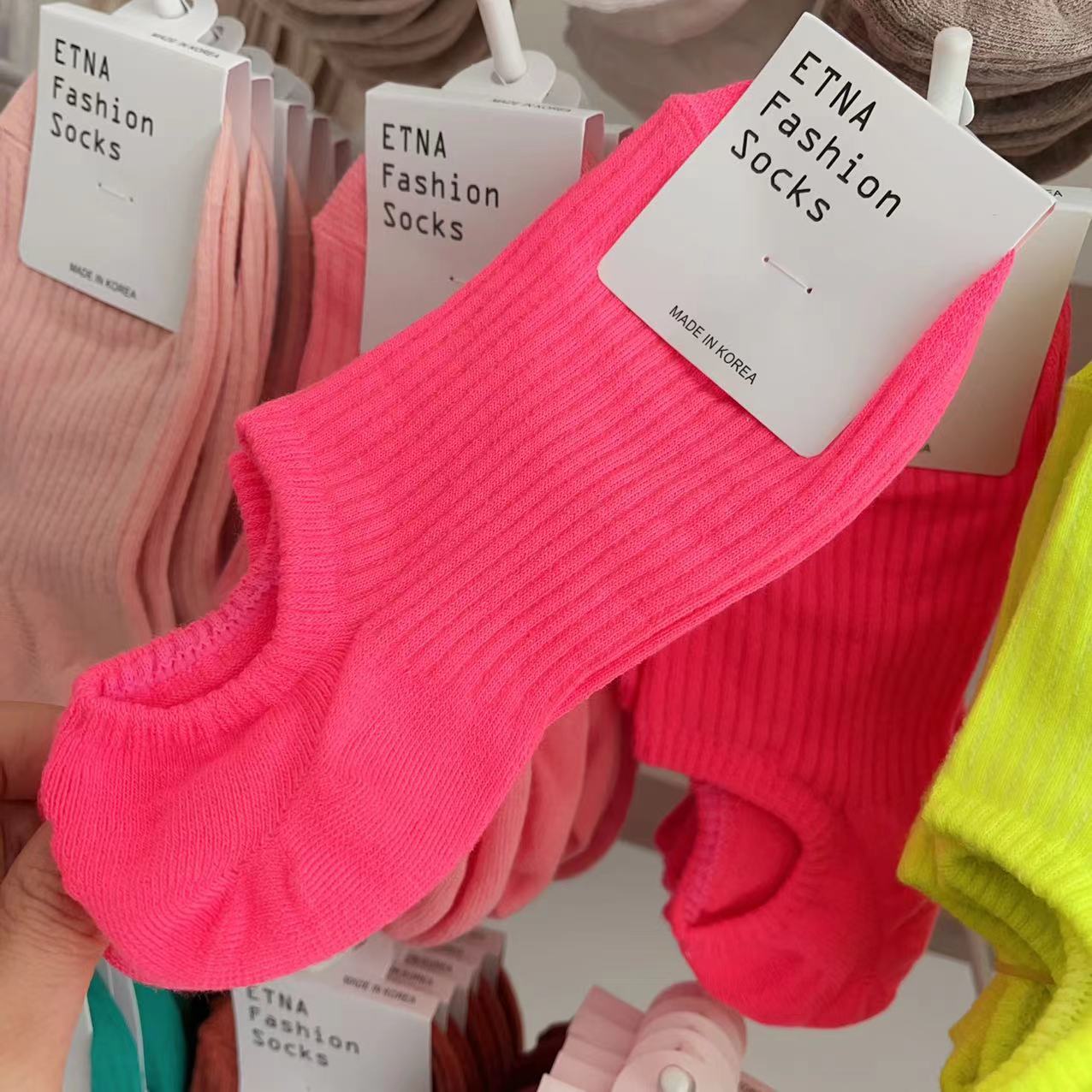 한국 수입 양말 봄과 여름 얇은 ETNA 캔디 컬러 단색 보트 양말 간단한 안티 가을 힐 보이지 않는 양말스토어 가기