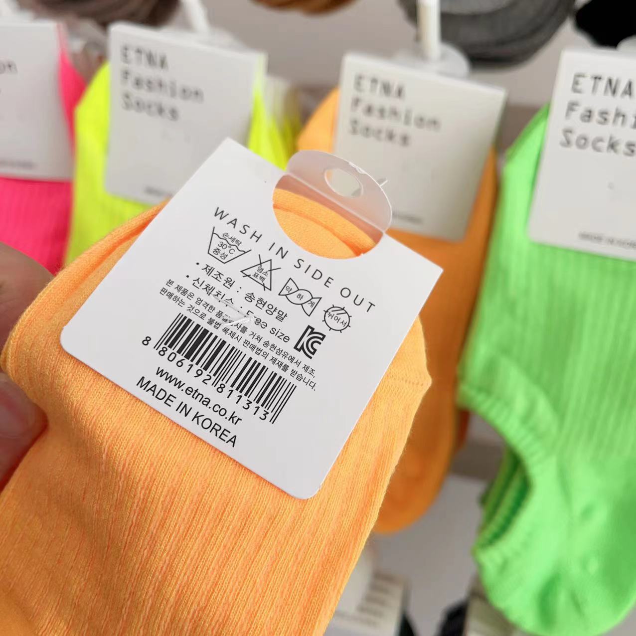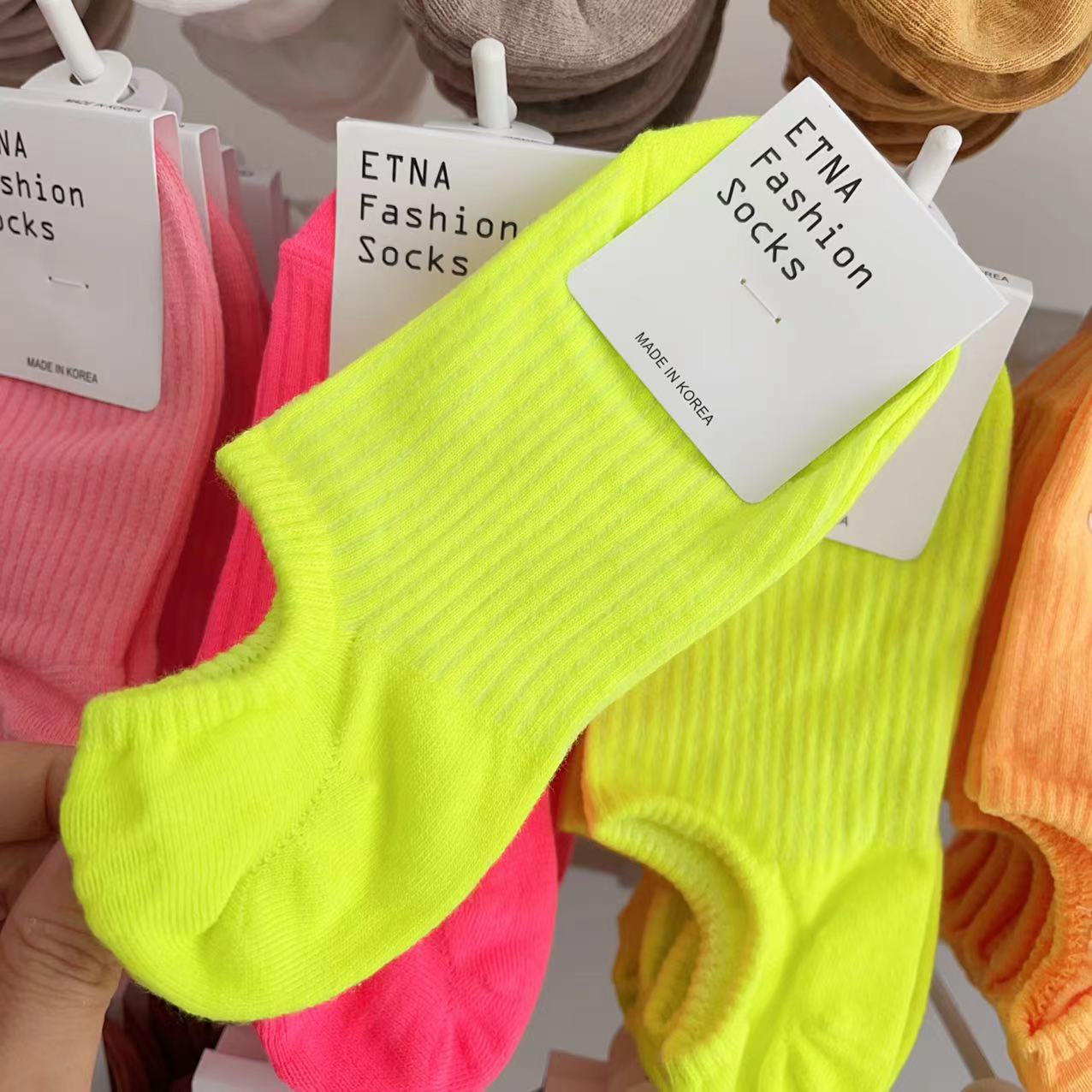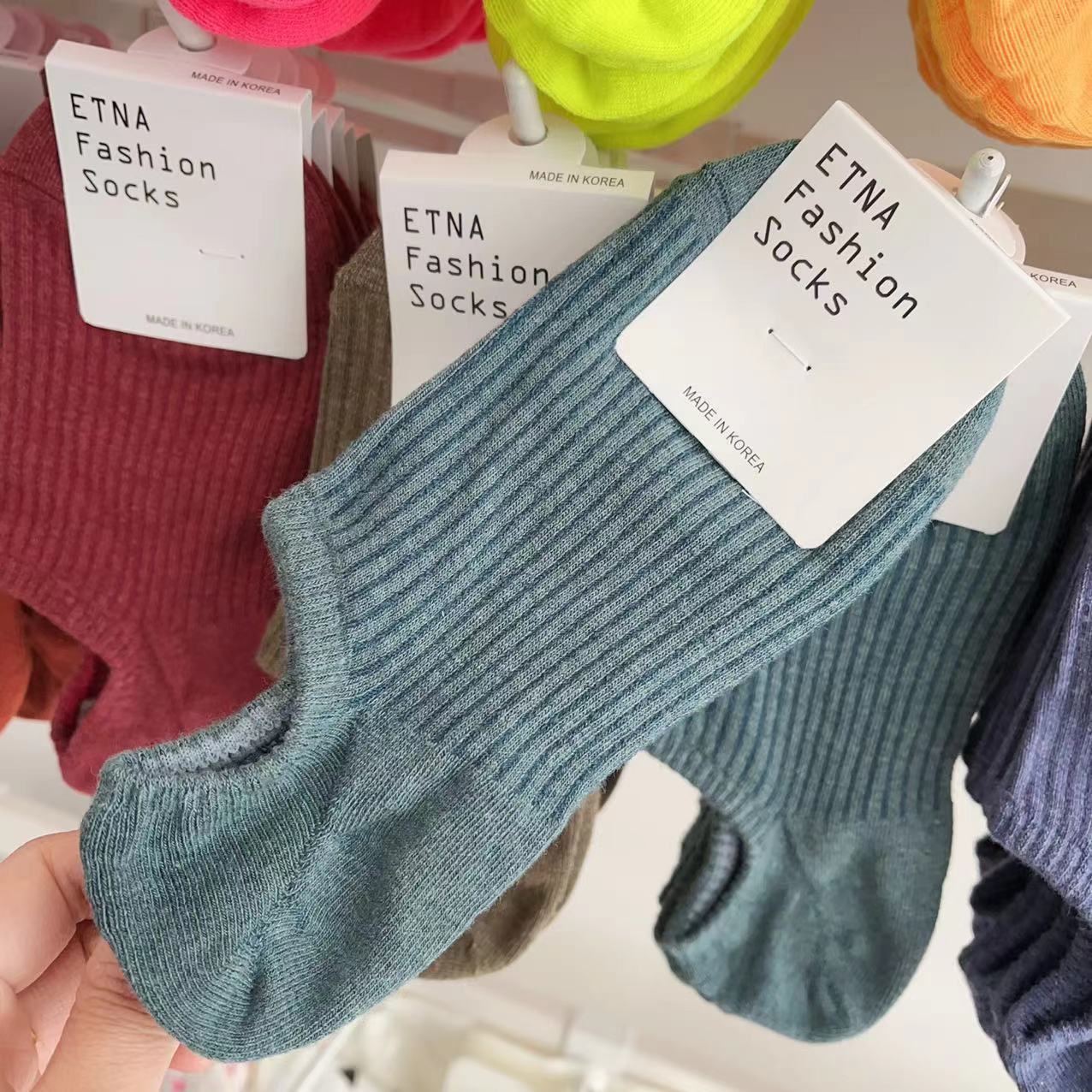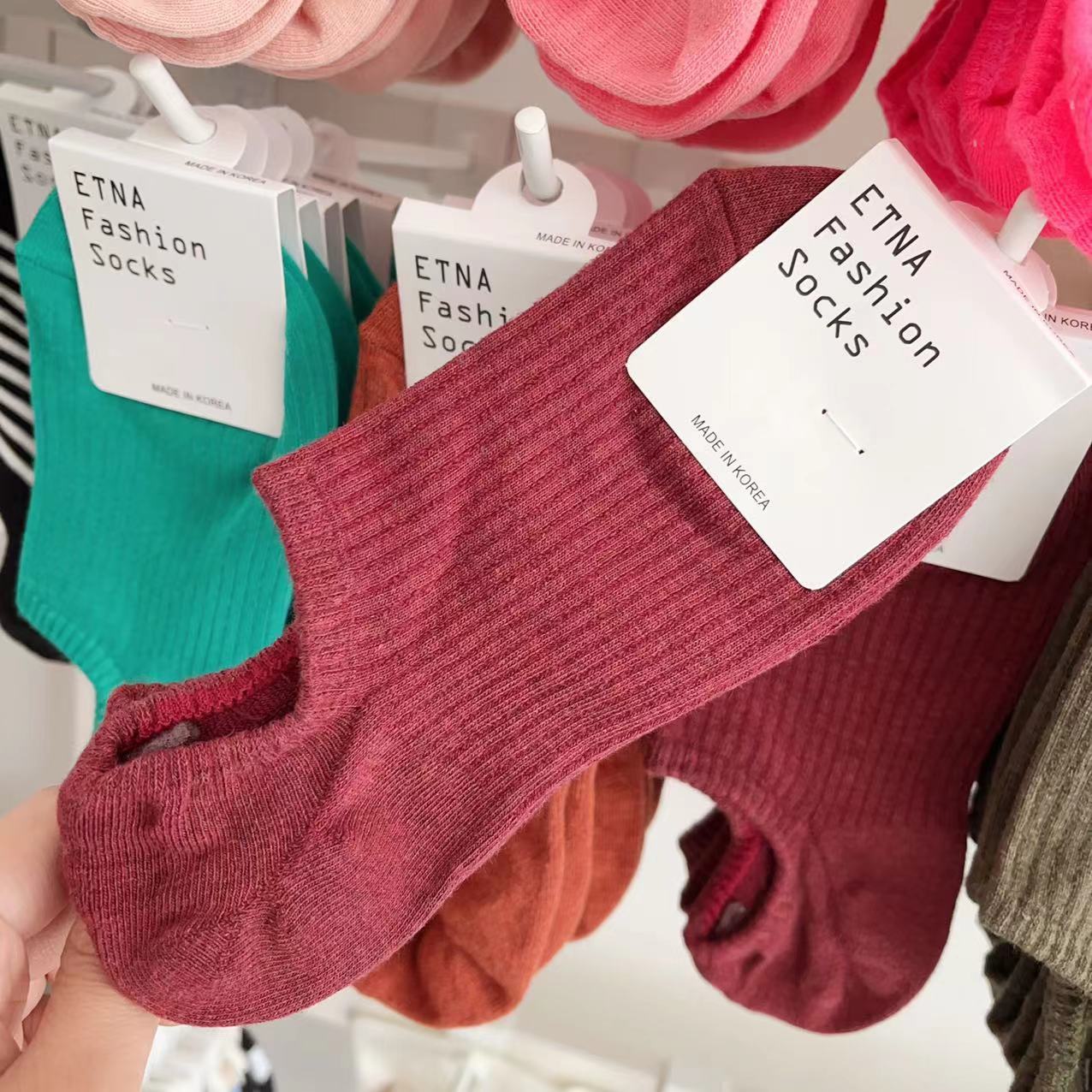한국 수입 양말 봄과 여름 얇은 ETNA 캔디 컬러 단색 보트 양말 간단한 안티 가을 힐 보이지 않는 양말스토어 가기