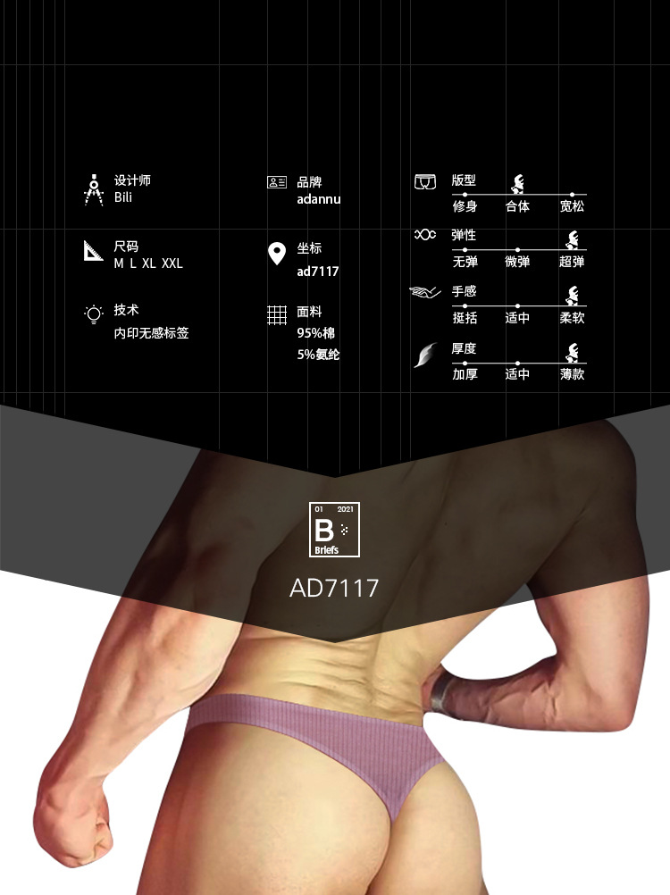 ADANNU 남성 낮은 허리 속옷 단색 섹시한 T 바지 섹시한 비키니 모달 삼각형 AD7117