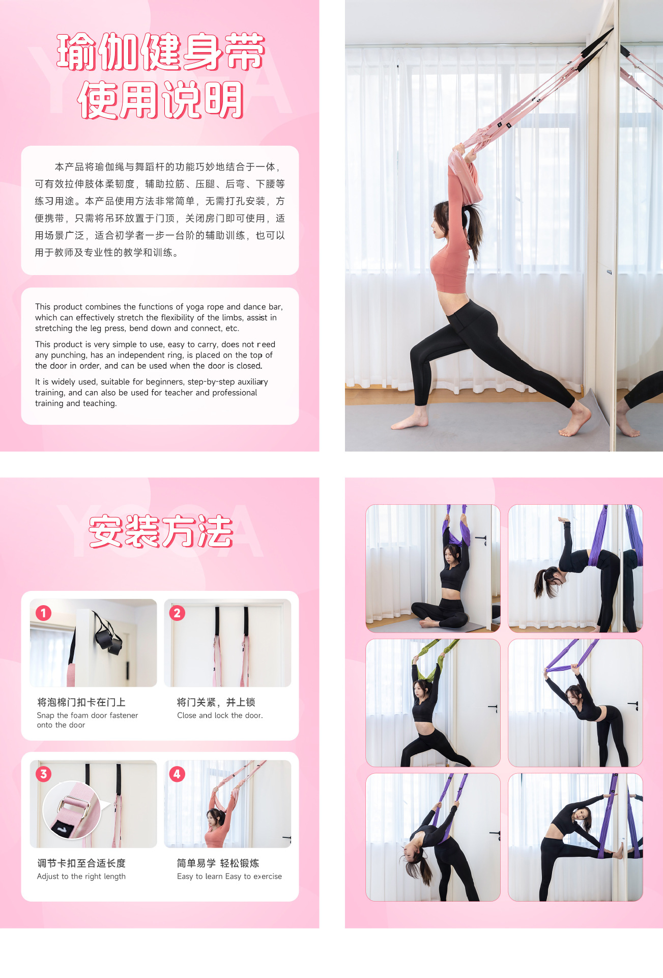 후진 요가 밴드, 에어리얼 요가 밴드, 도어에 걸어두는 반전 요가 밴드, 스트레칭 밴드, 요가 로프, 체형 교정 및 스트레칭