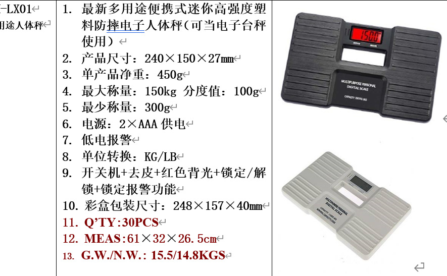 전자 저울 가정용 인체 저울 경량 플라스틱 익스프레스 저울 휴대용 체중계 150kg 체중계