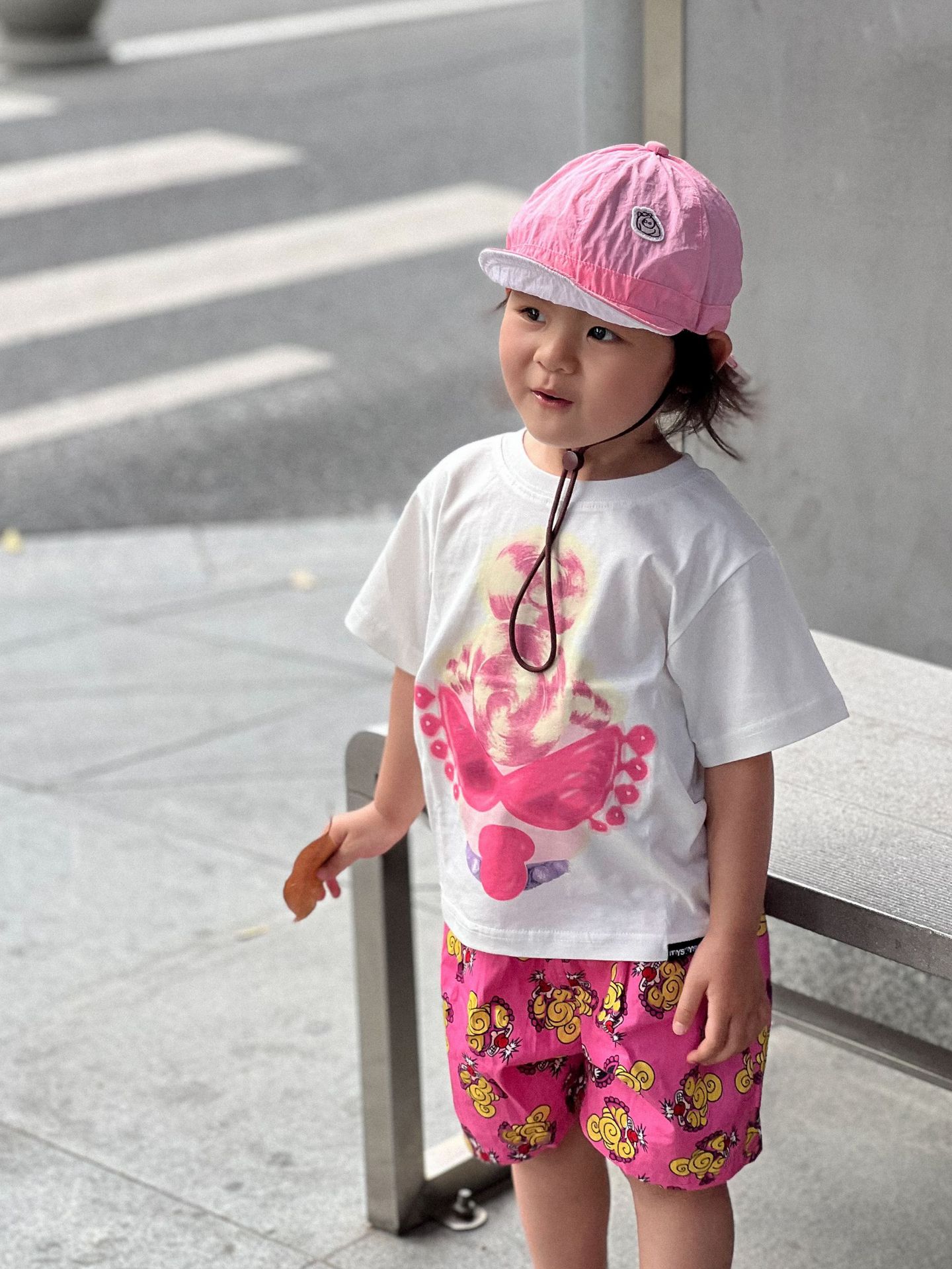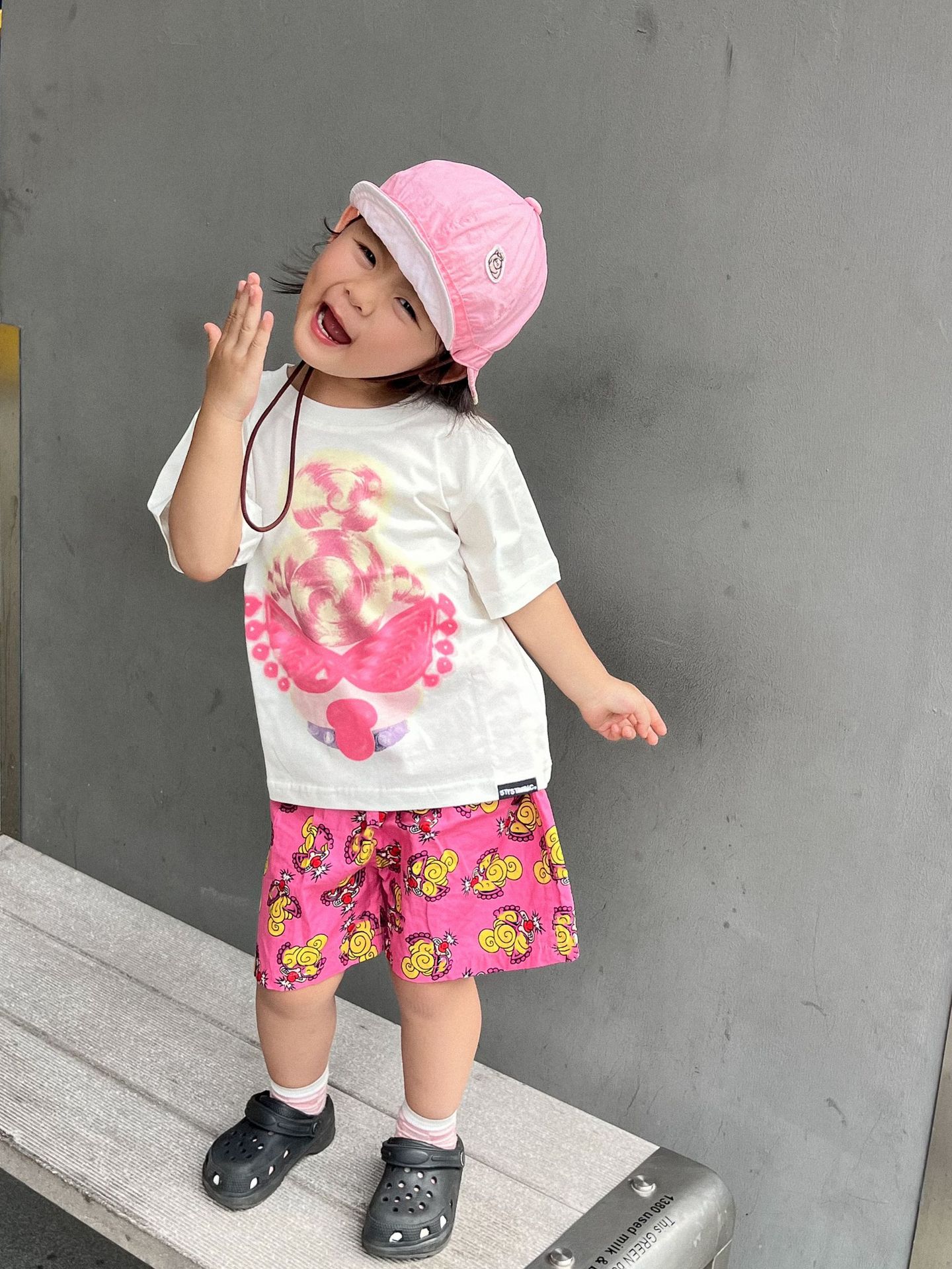 2024 새로운 블랙 슈퍼 패션 브랜드 젖꼭지 미니 전체 인쇄 빠른 건조 비치 반바지 젖꼭지 어린이 바지 2 색 재고스토어 가기
