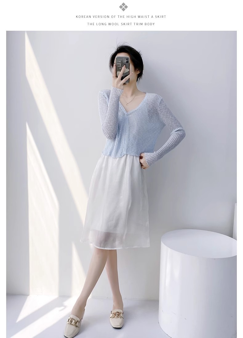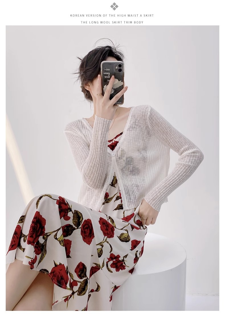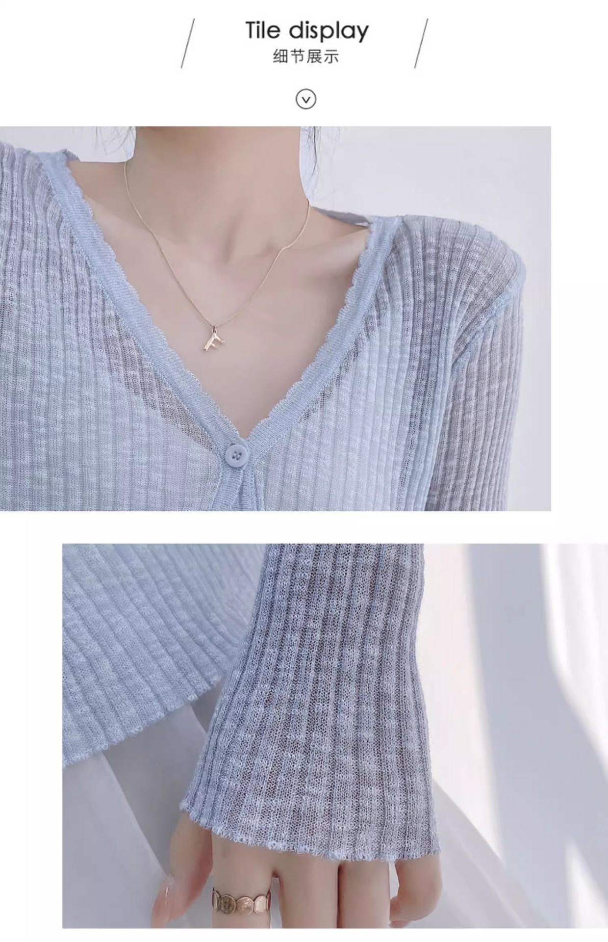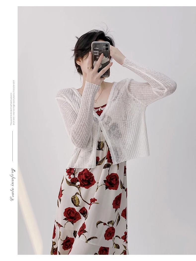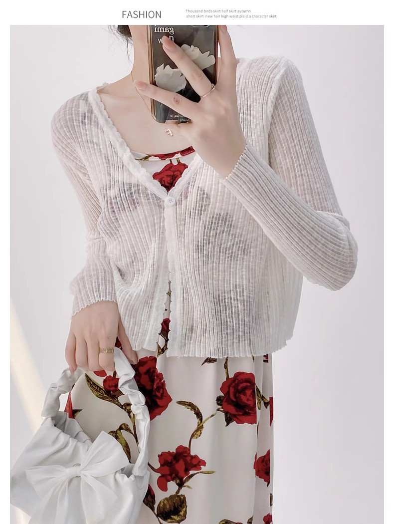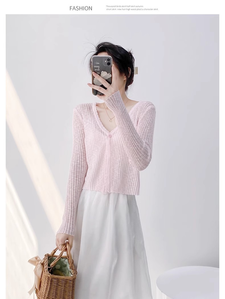 여름 V 넥 니트 카디건 여성의 얇은 부드러운 스타일 긴 소매 짧은 톱 목도리 외부 태양 보호 셔츠 블라우스 코트스토어 가기
