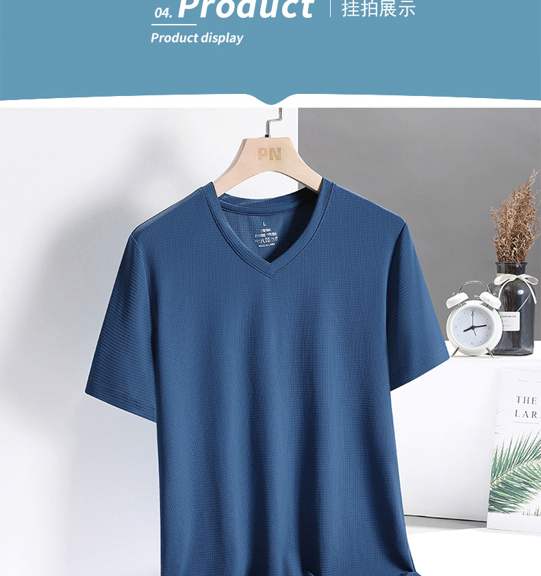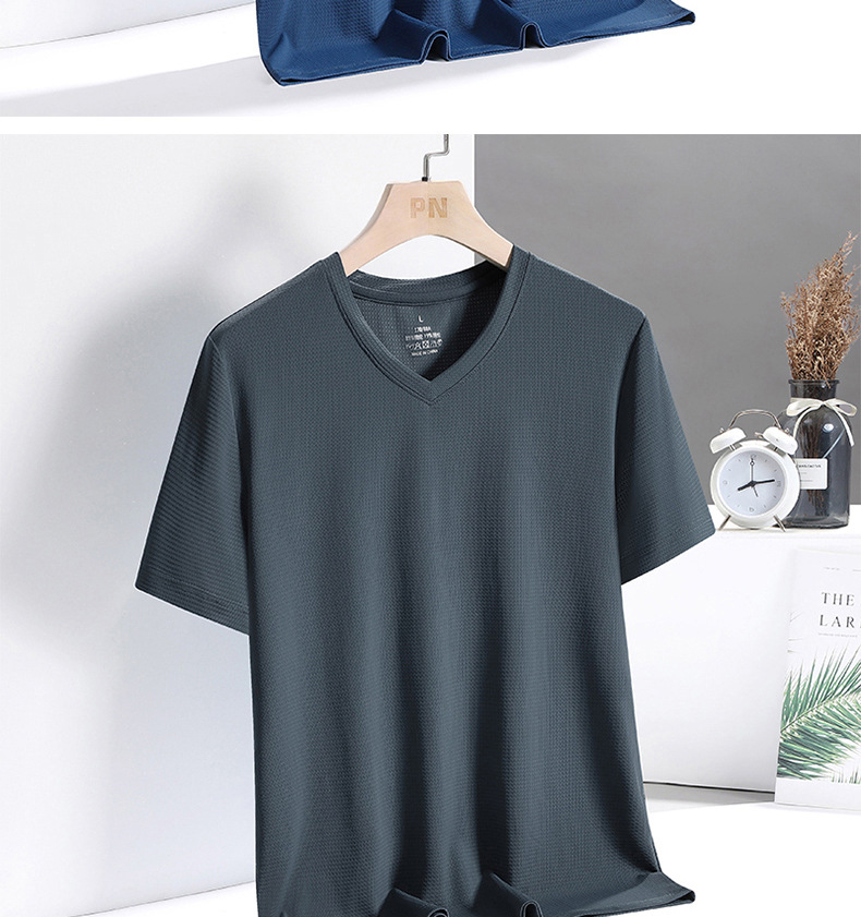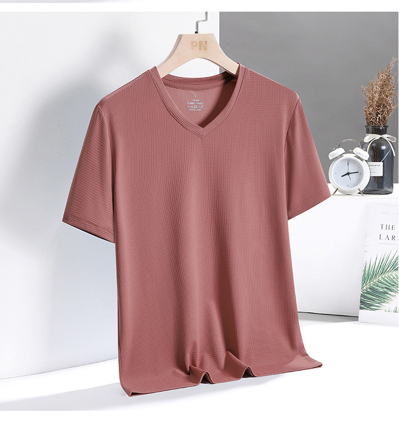 플러스 사이즈 V 넥 아이스 실크 반팔 티셔츠 남성 여름 얇은 유행 지방 느슨한 스포츠 치킨 칼라 반팔 셔츠스토어 가기