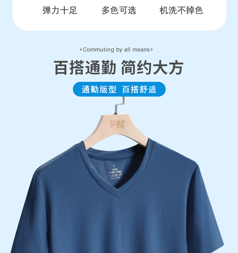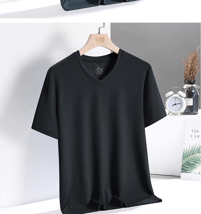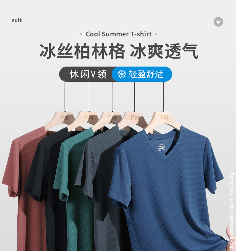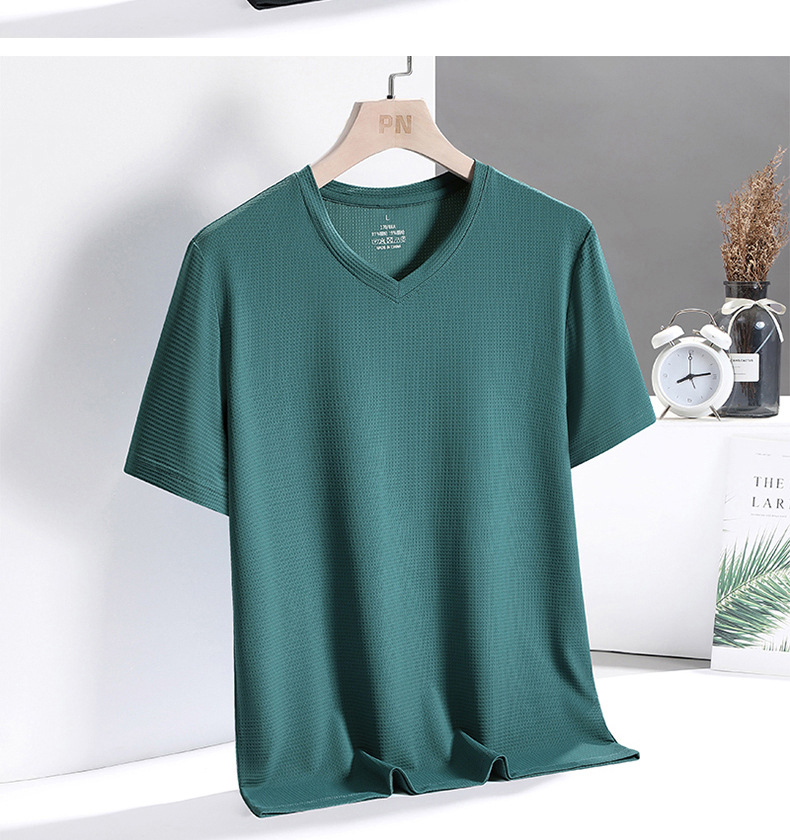 플러스 사이즈 V 넥 아이스 실크 반팔 티셔츠 남성 여름 얇은 유행 지방 느슨한 스포츠 치킨 칼라 반팔 셔츠