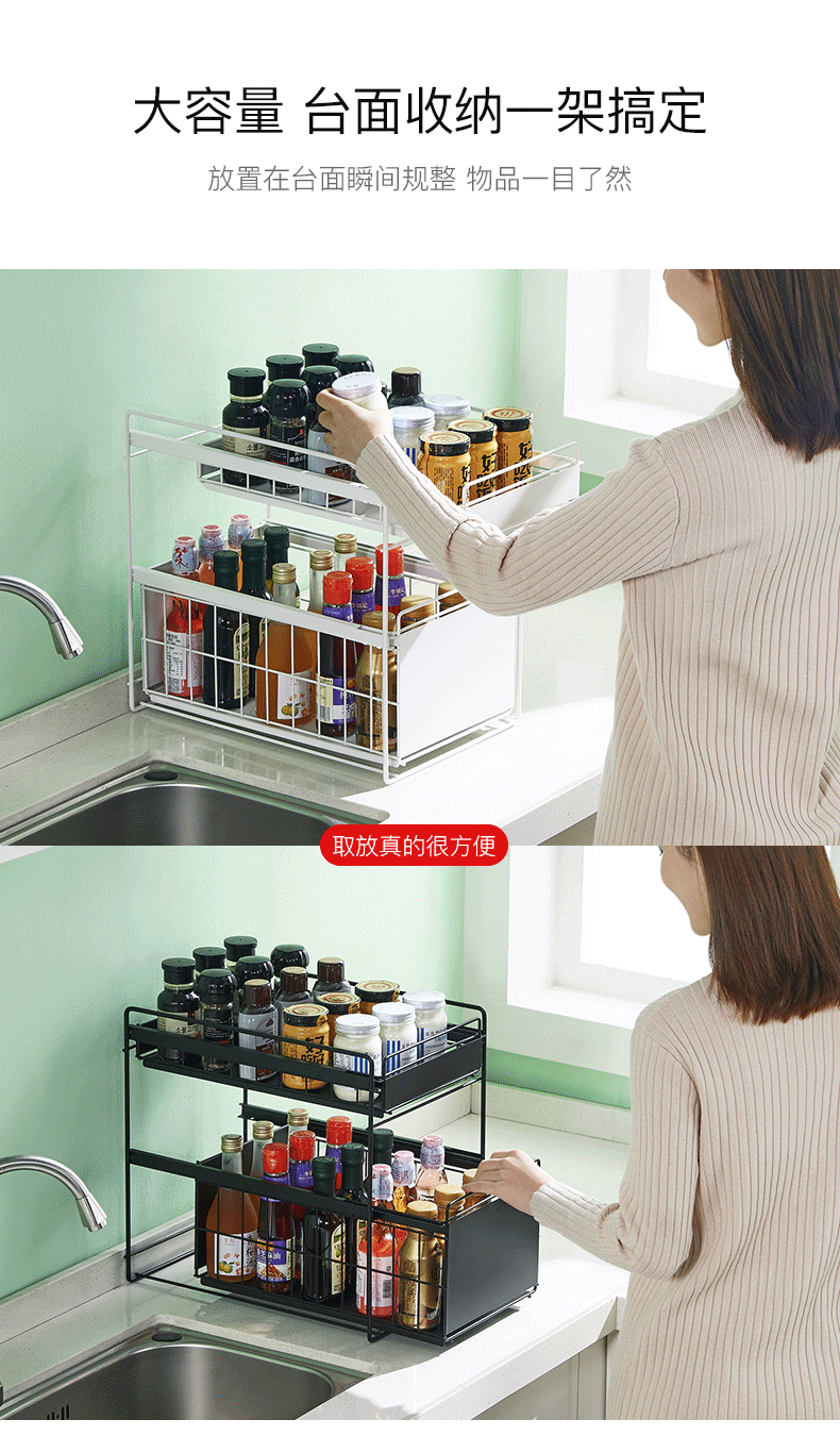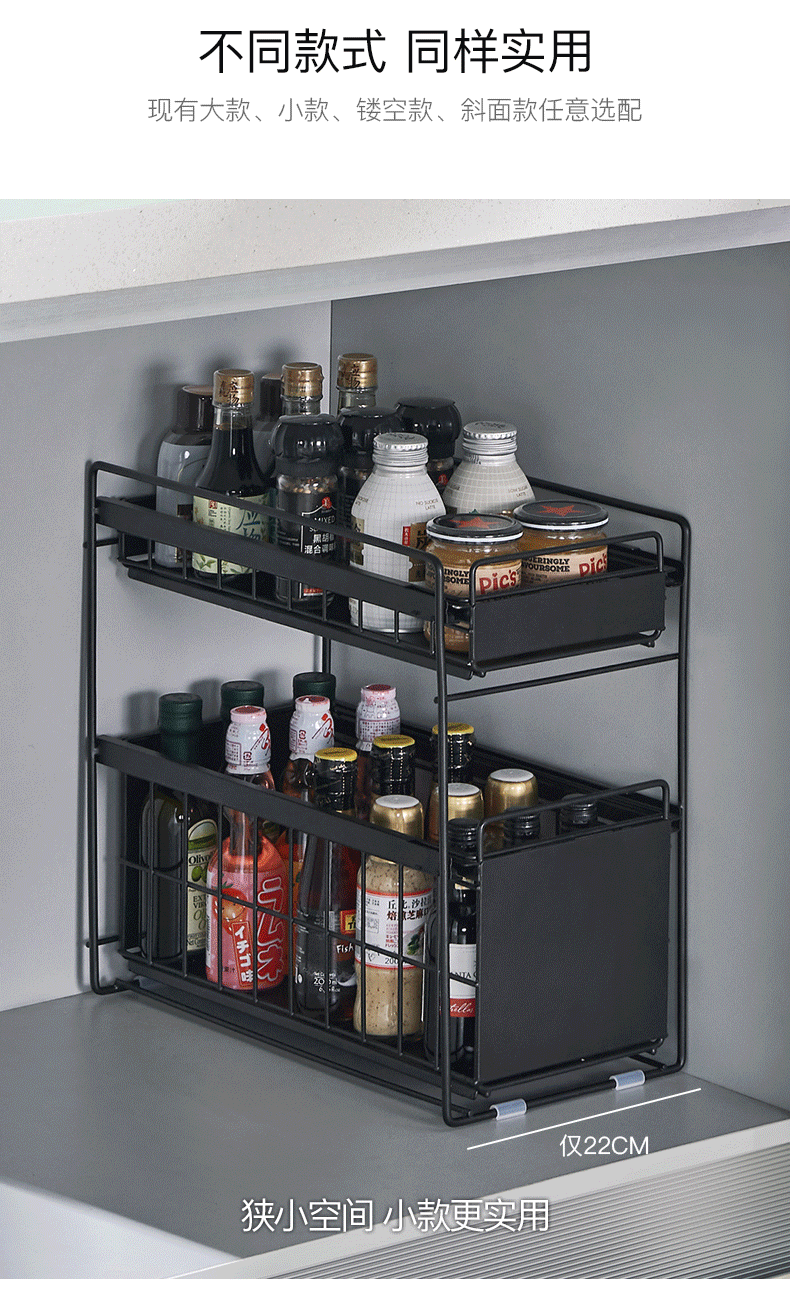 주방수납선반, 싱크대하부선반, 계층형수납선반, 조미료 및 화장품 다층수납 및 정리, 제조업체 맞춤형