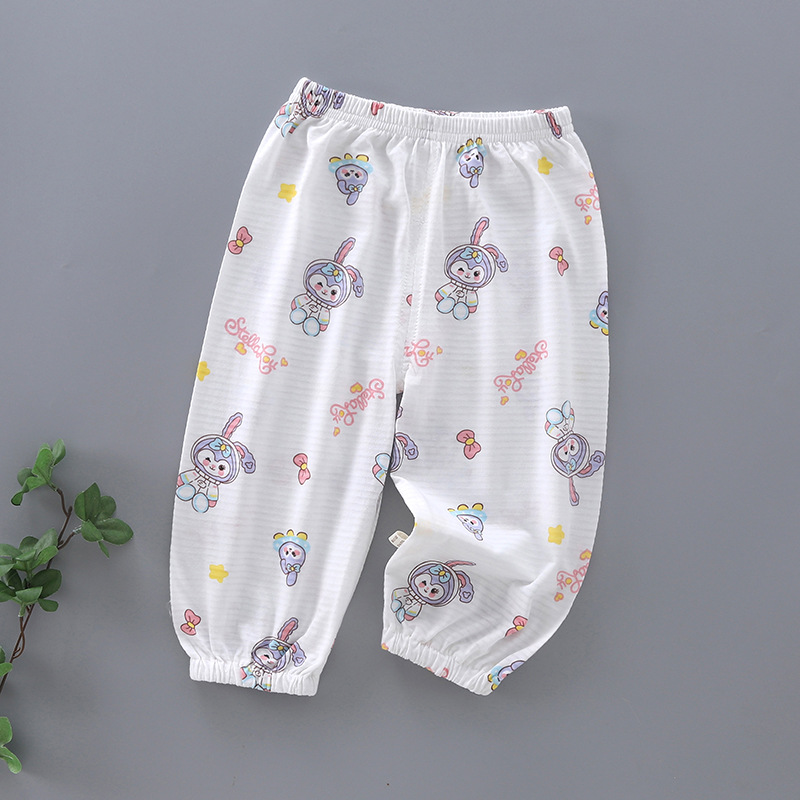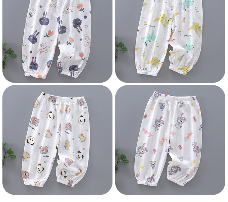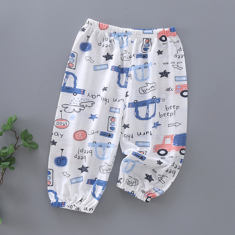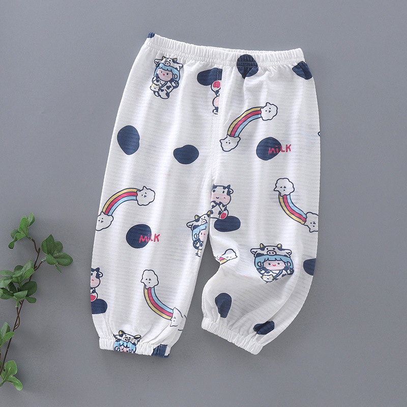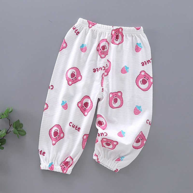 어린이 모기 방지 바지 소년 여름 얇은 긴 바지 순수한면 아기 여름 파자마 바지 소녀 여름 블루머