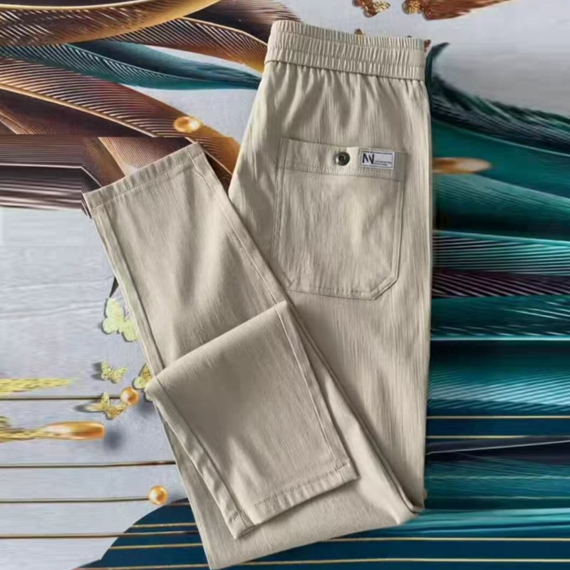 봄과 여름 새로운 순수 컬러 캐주얼 바지 남자의 간단한 하이 엔드 탄성 허리 클린 버전 스키니 바지 느슨한 통기성 하렘 바지