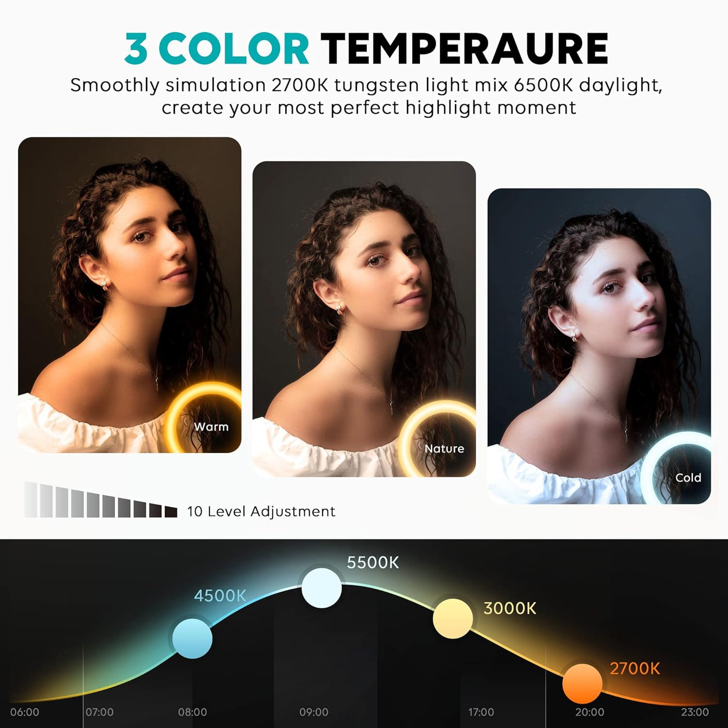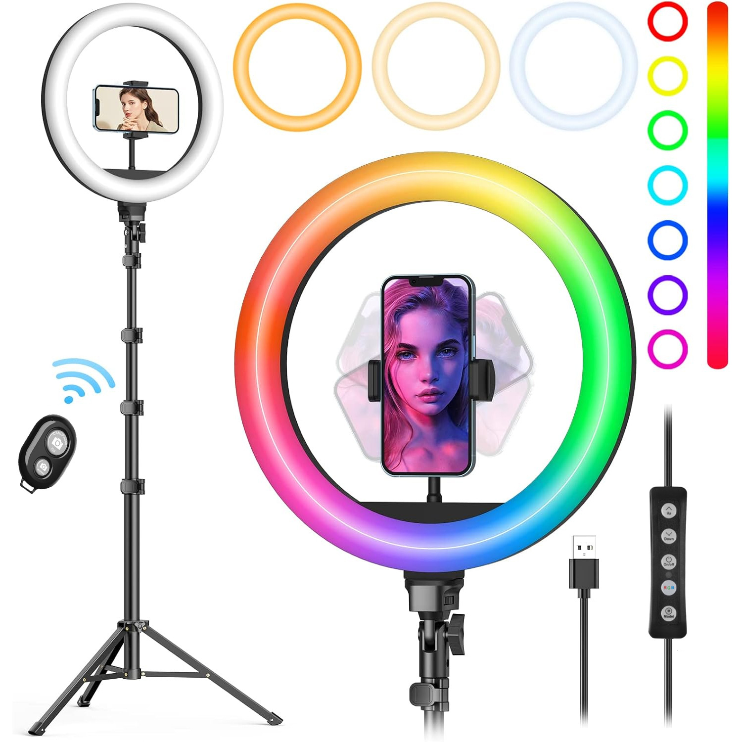 • 휴대용 1.6 m 브래킷 + 10 인치 RGB 조명 + 원격 제어