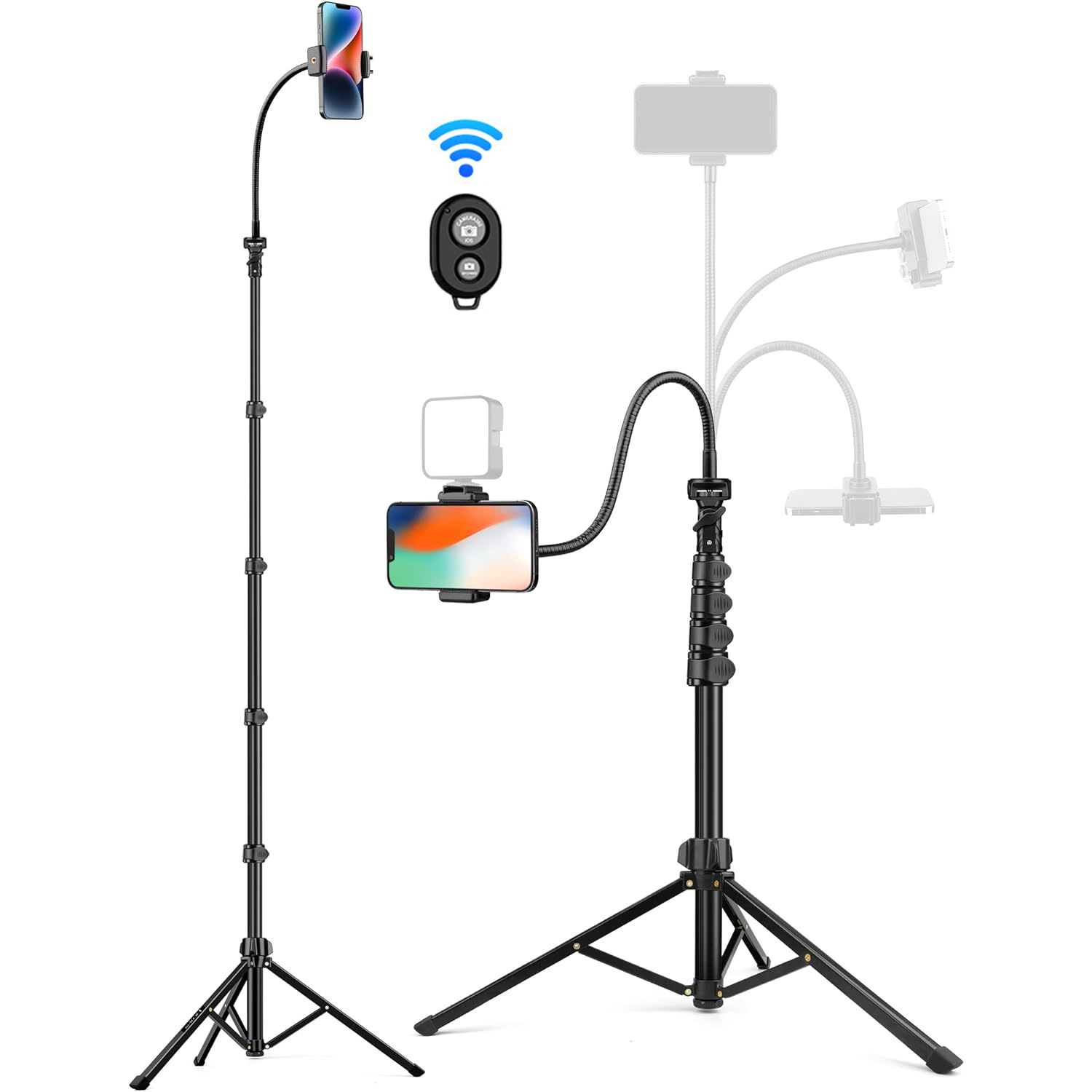 • 휴대용 1.6 m 브래킷 + 호스 휴대 전화 클립 + 원격 제어