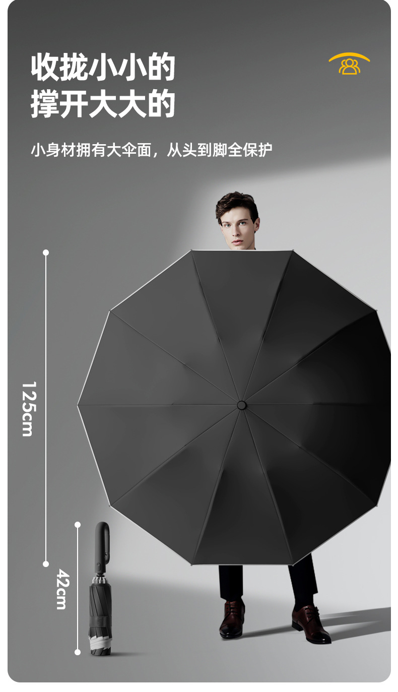 • 반전 자동 링 버클 우산-돌 블랙 (직경 125)