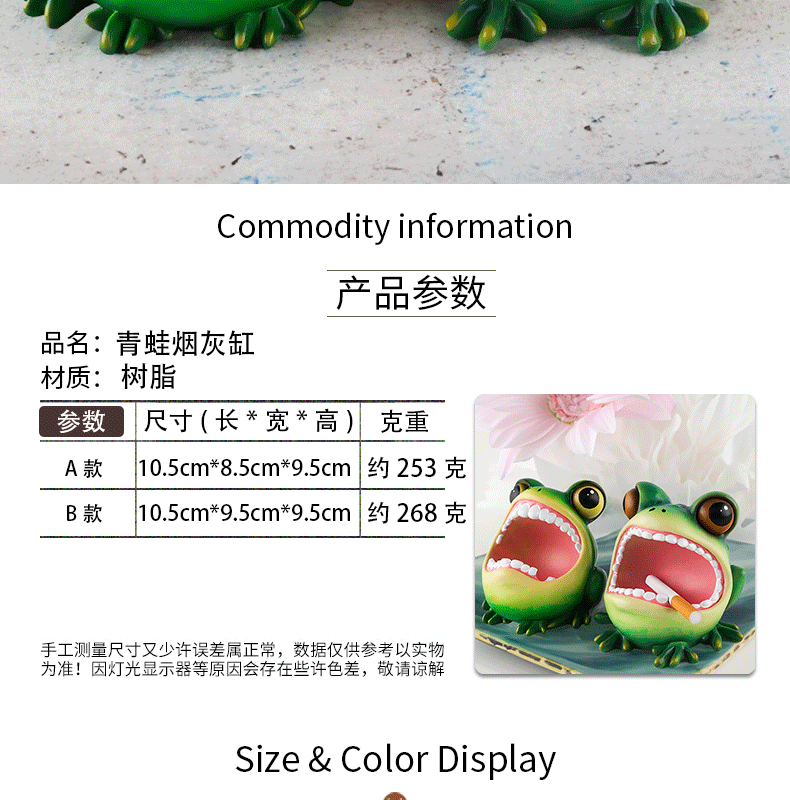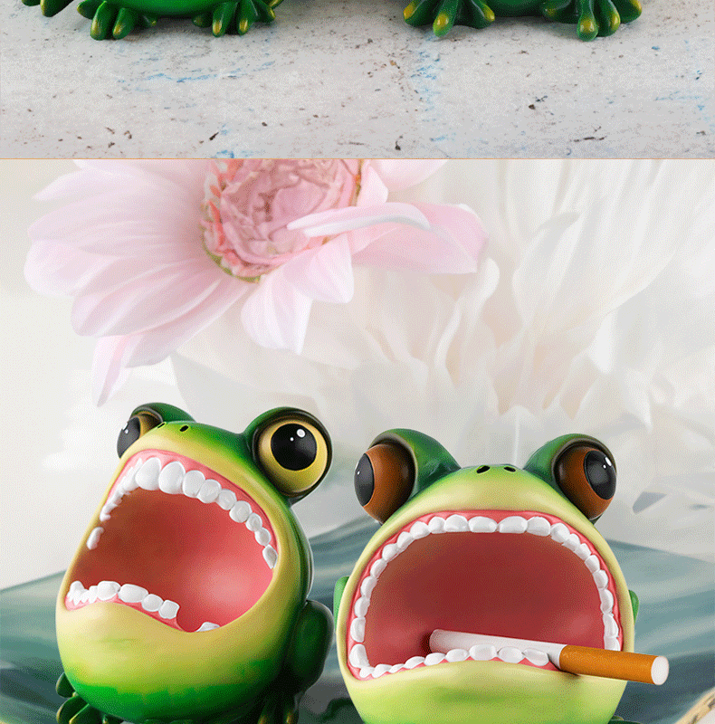 새로운 귀여운 만화 개구리 수지 재떨이 장식품 가정 거실 사무실 책상 장식 선물 창의적