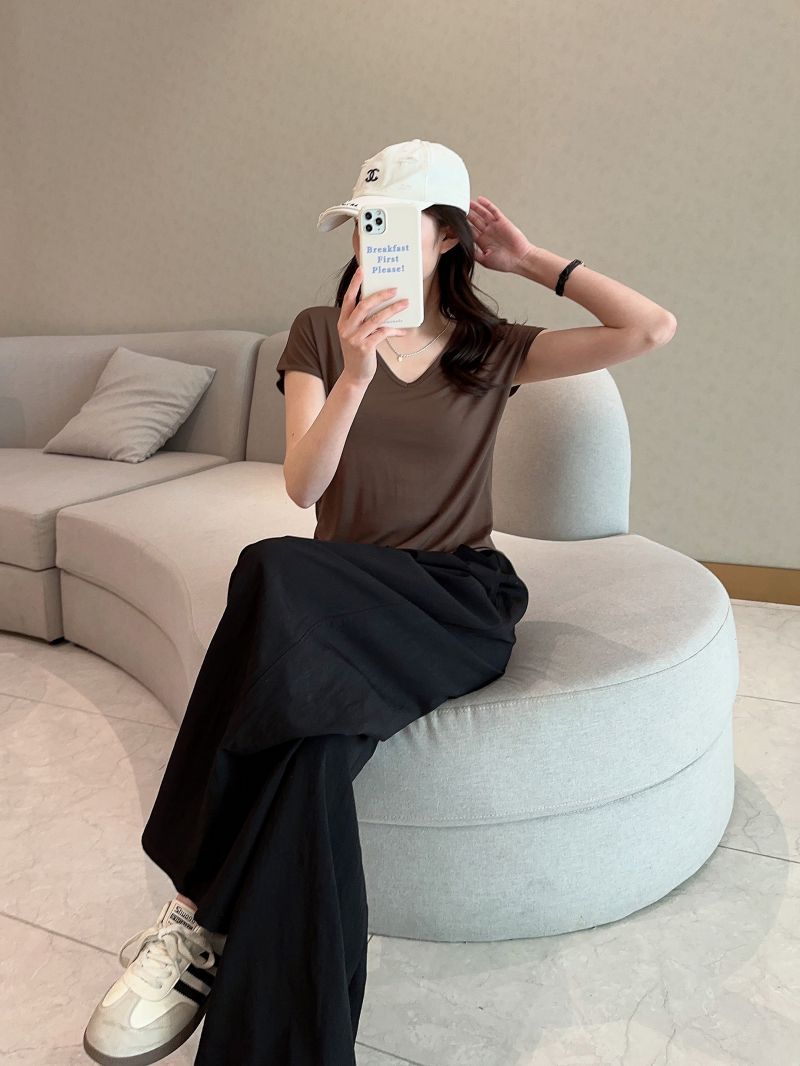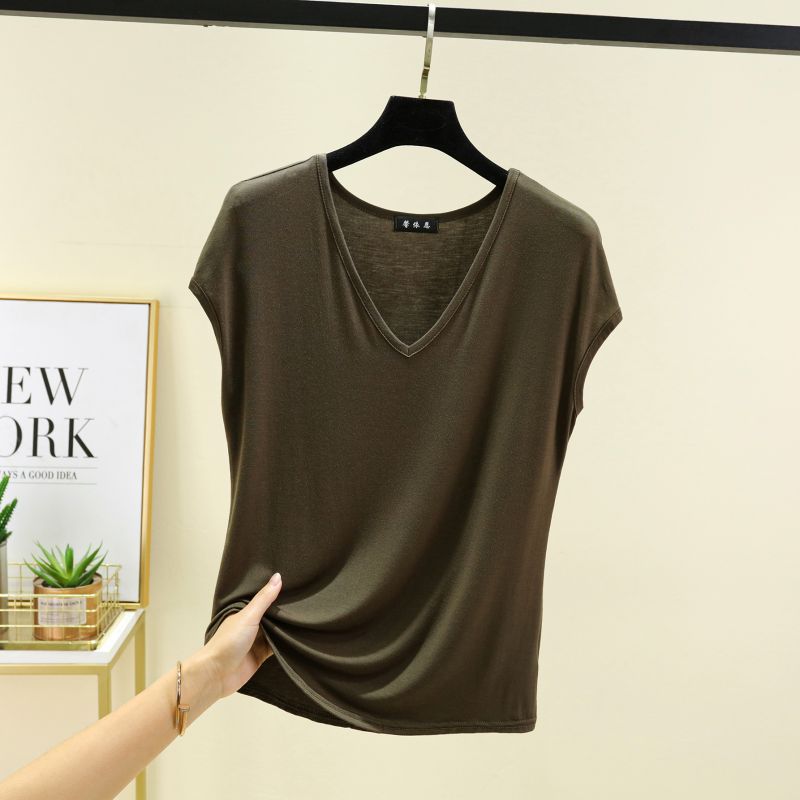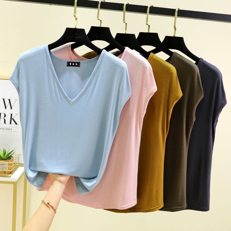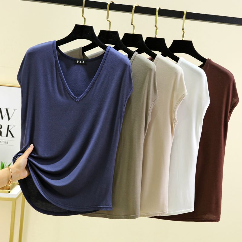 민소매 티셔츠 여성용 여름 셔츠 한국 스타일 여성의 새로운 느슨한 슬리밍 바지 셔츠 서양식 올 매치 V 넥 탑 패션스토어 가기