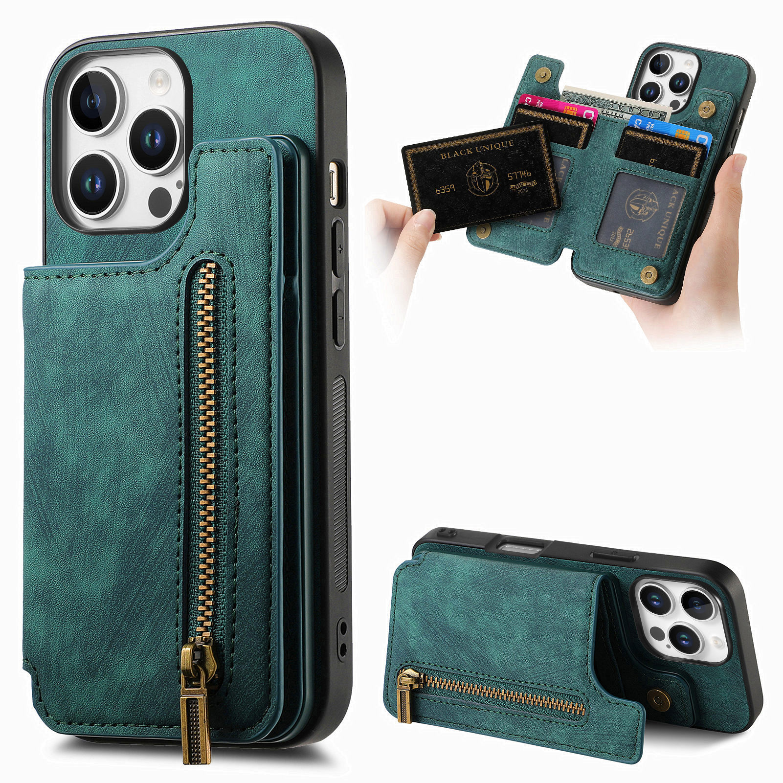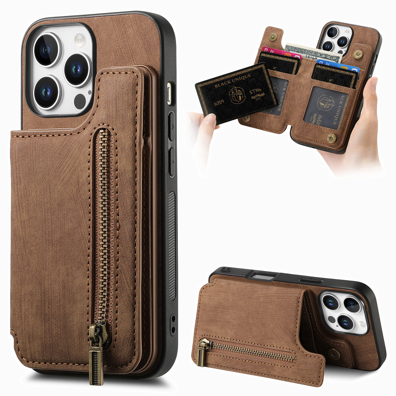 애플 17프로 휴대폰 케이스에 적합, 레트로 스타일 좌우 플립 카드 홀더, 아이폰17 지퍼 카드 수납, 낙하 방지 가죽 케이스스토어 가기