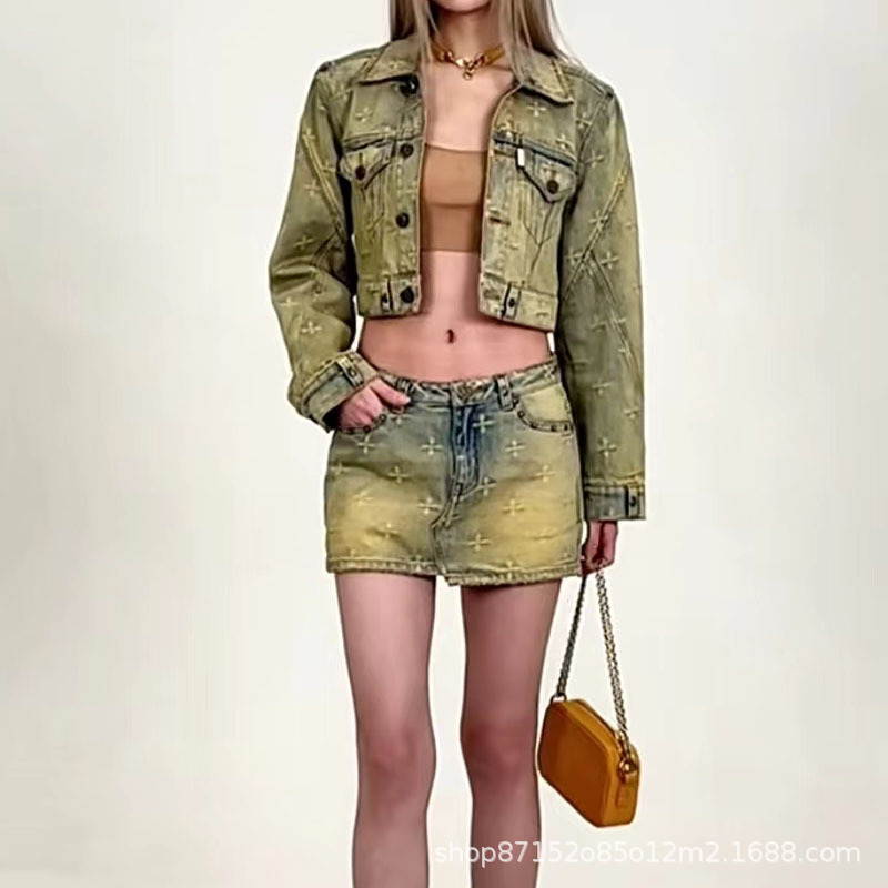 SMK R 신전 정원 데님 재킷 레트로 숏 재킷 24 신상 여성용