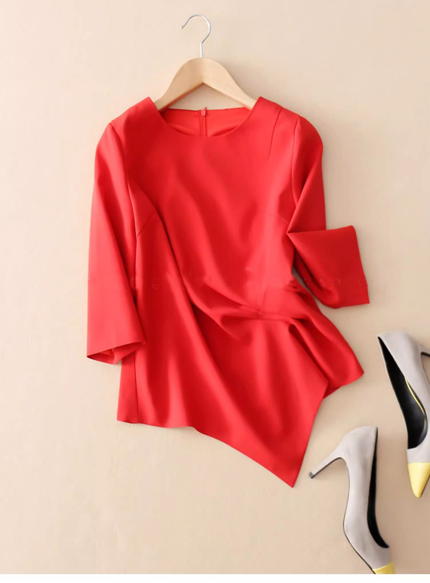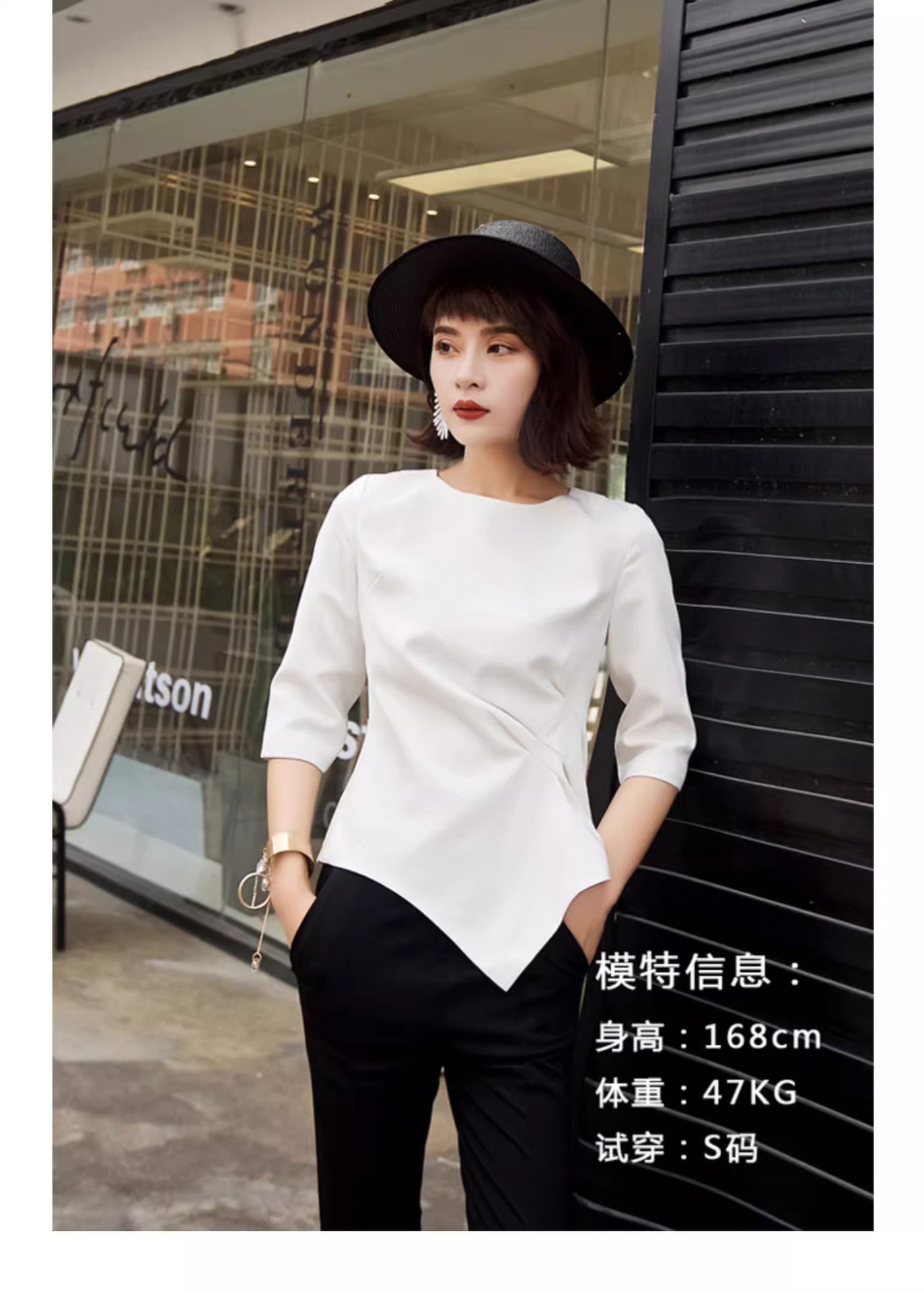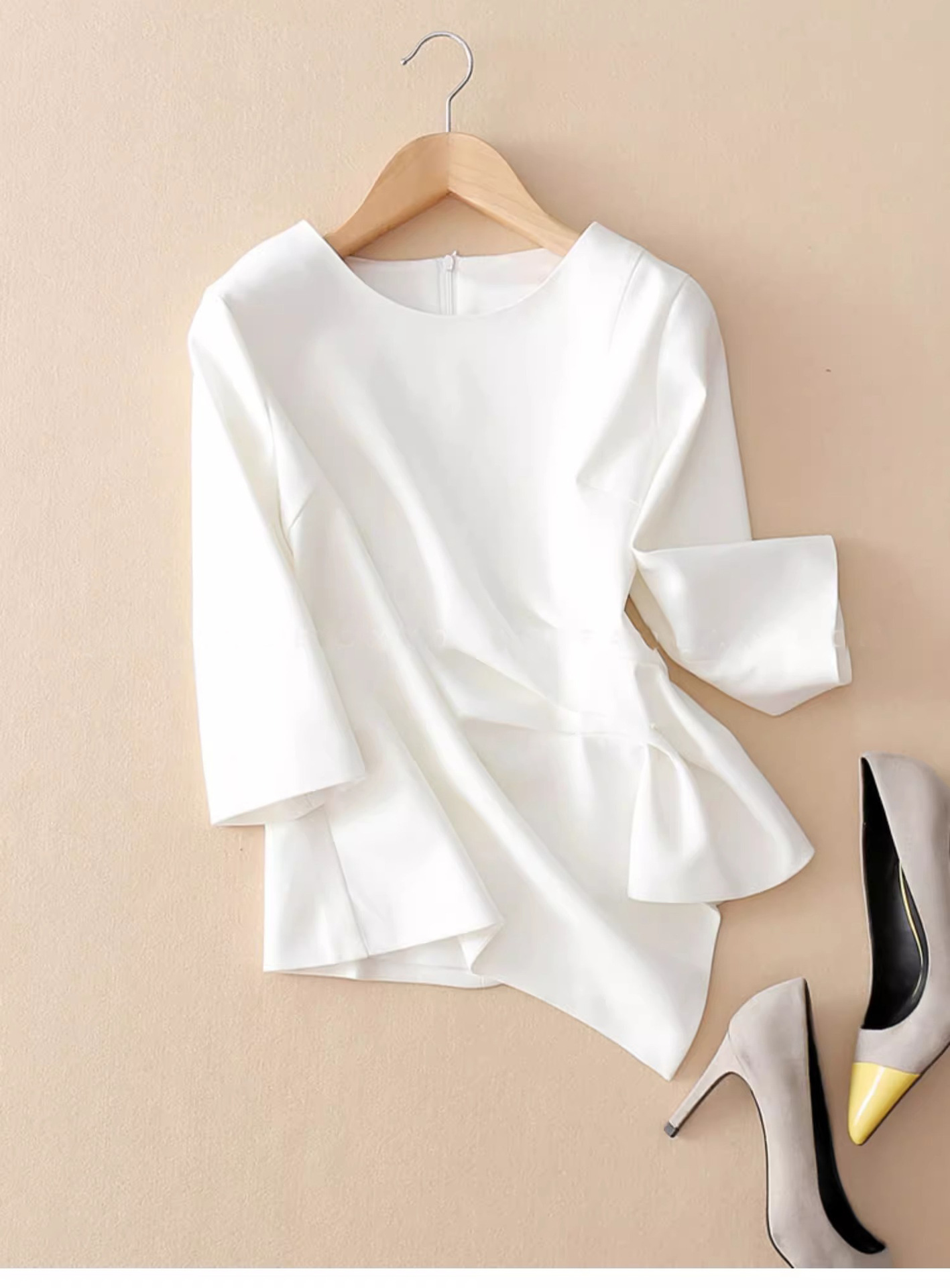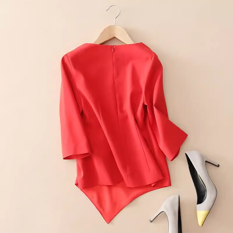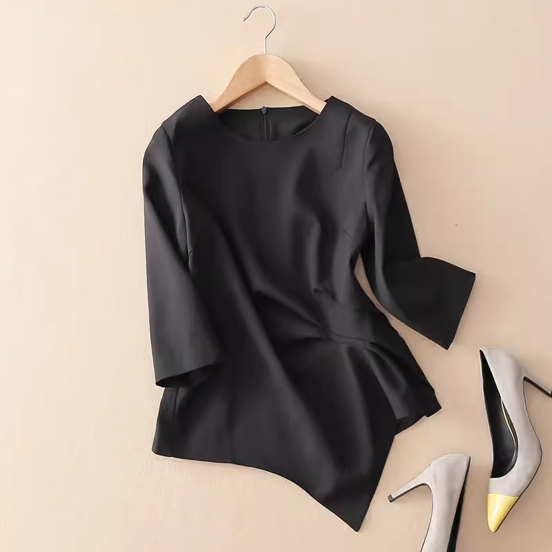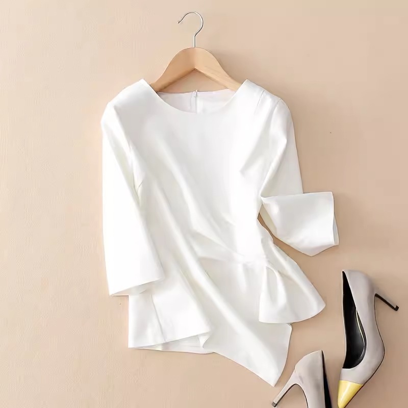스팟 2024 봄 여름 신상 여성 7부 소매 쉬폰 셔츠 여성 슬림 불규칙 다용도 허리 탑 트렌디스토어 가기
