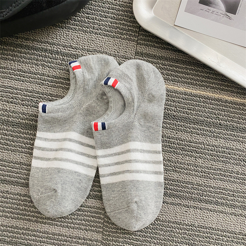 TB 트렌디 한 양말 유럽과 미국 스타일의 클래식 스트라이프 로우 컷 양말 보트 양말 여름 얇은 프레피 스타일 올 매치 남성과 여성 보이지 않는 양말