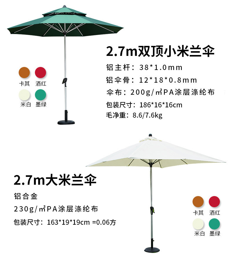 • 2.7 m 더블탑 소형 밀라노 기둥 우산 [베이스 제외]