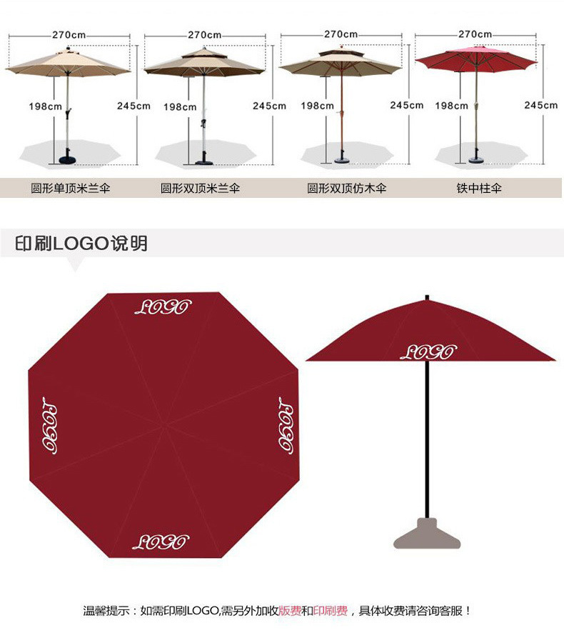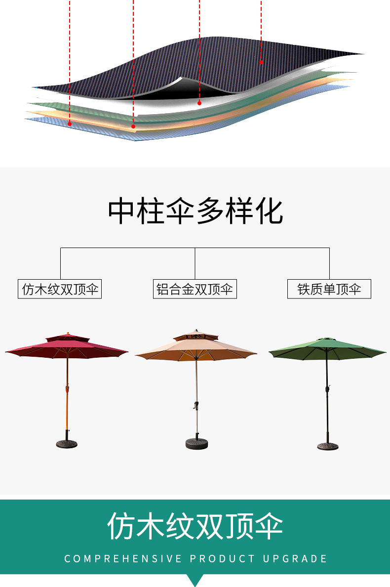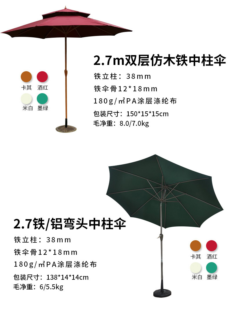 • 2.7 m 철 모조 나무 더블 탑 중간 기둥 우산 [베이스 제외]
