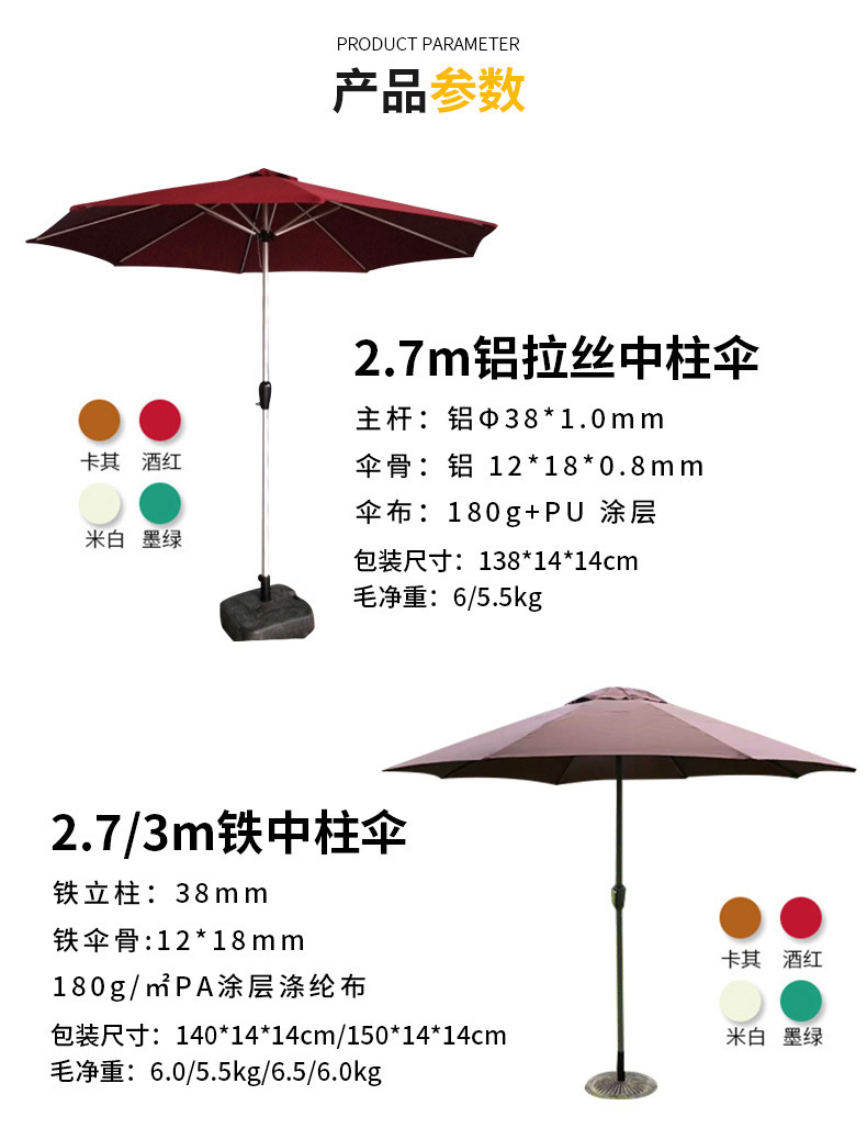 • 2.7 m 아이언 스티어링 센터 필러 우산 [베이스 없음]
