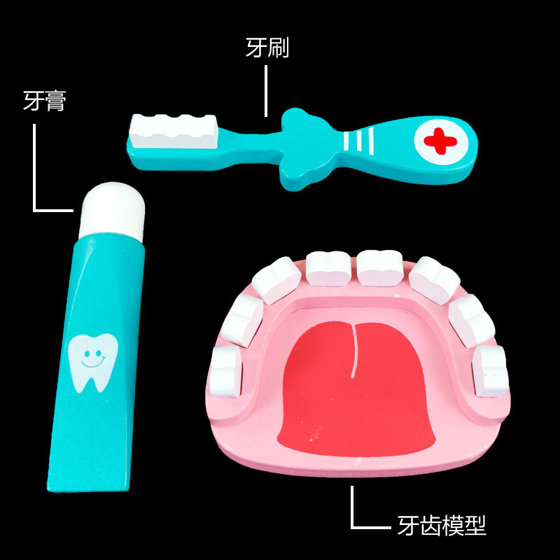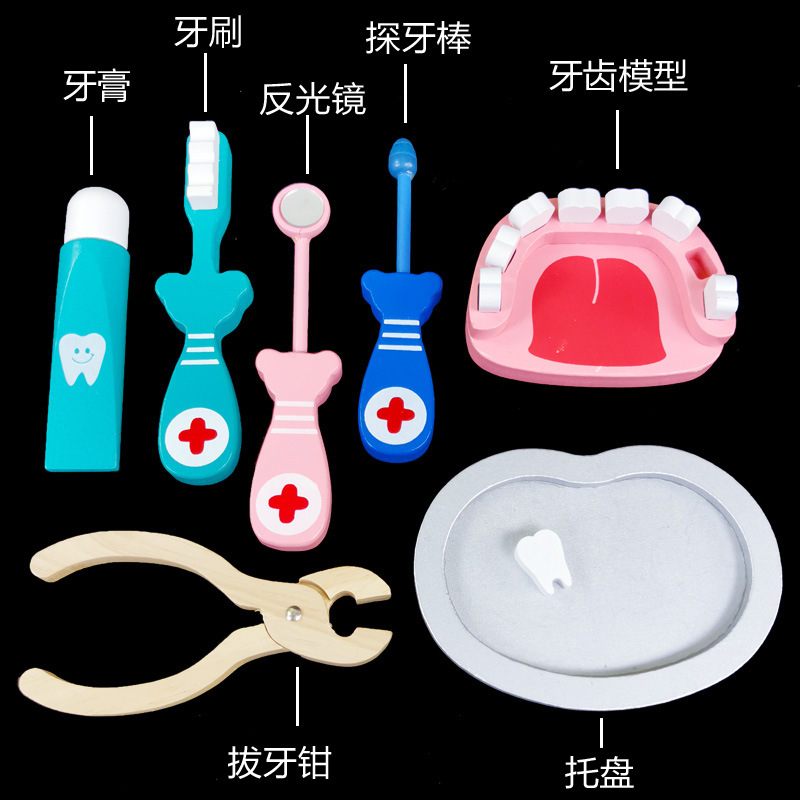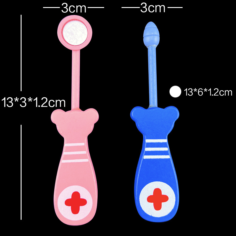 나무 어린이 의사 간호사 주사 도구 세트 치과 역할 놀이 약 상자 아기 놀이 집 장난감스토어 가기