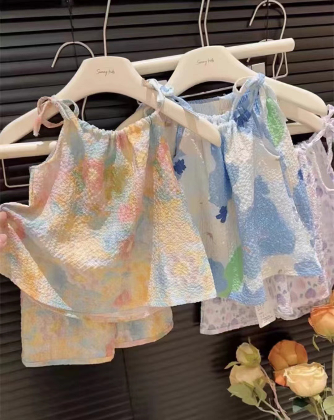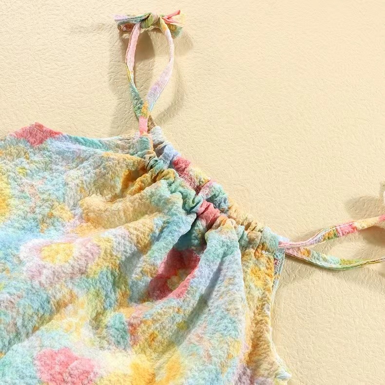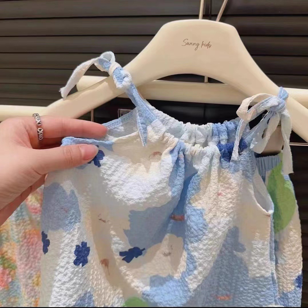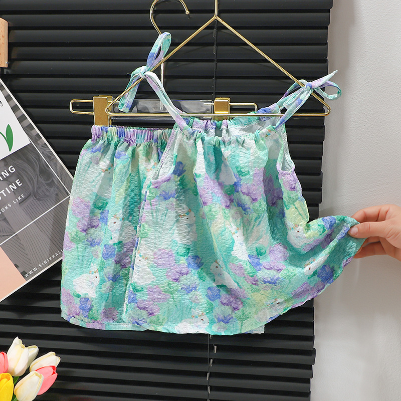 여름 유화 스타일의 새로운 슬링 세트 소녀 서스펜더 스커트 바지 투피스 세트 인터넷 유명인 아기 소녀의 서양식 조끼 스커트스토어 가기