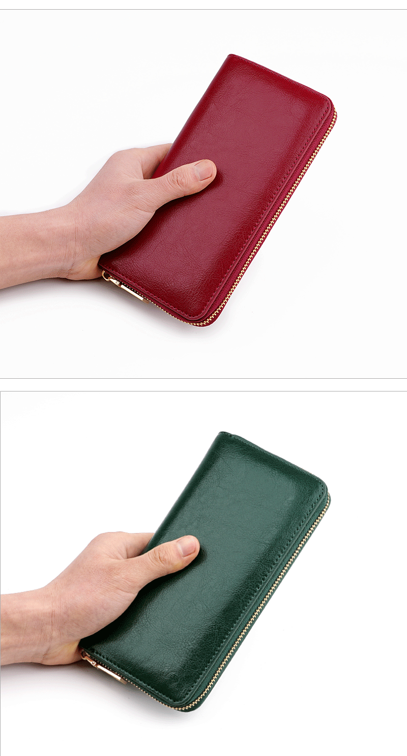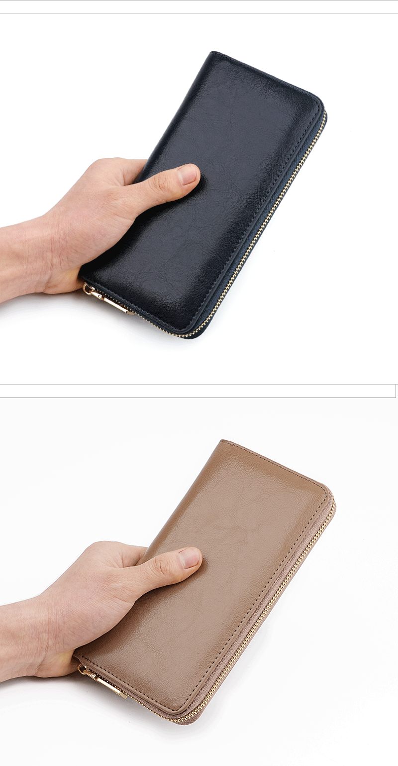 일본 아마존 레티 안 새로운 여성 가죽 긴 지갑 오일 왁스 소 가죽 남성 클러치 긴 포춘 천스토어 가기