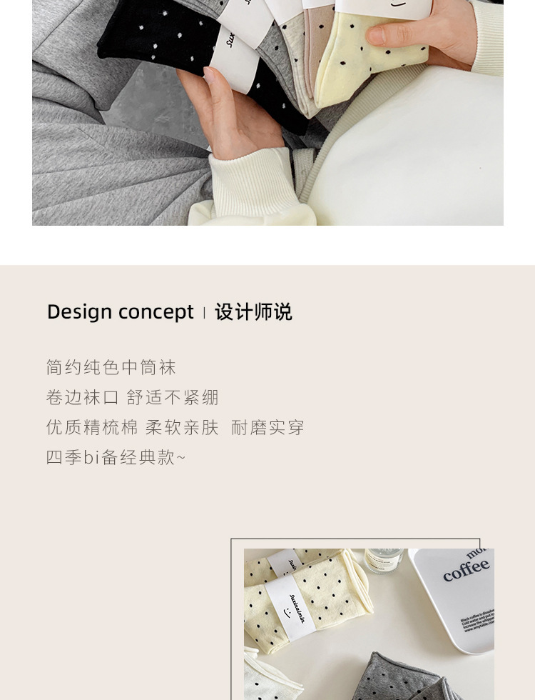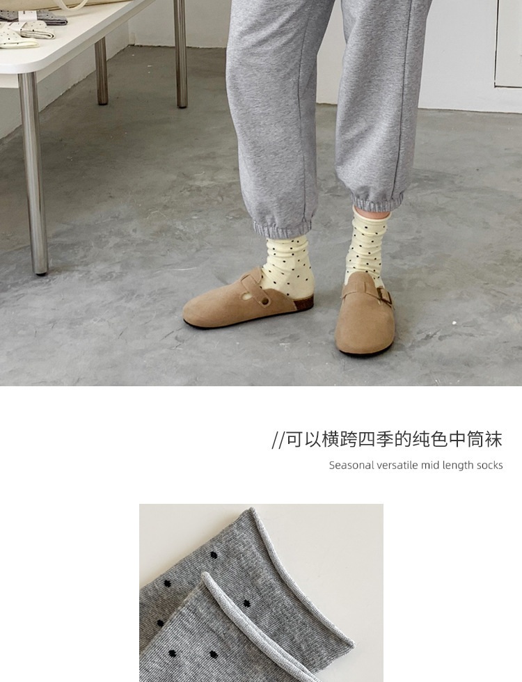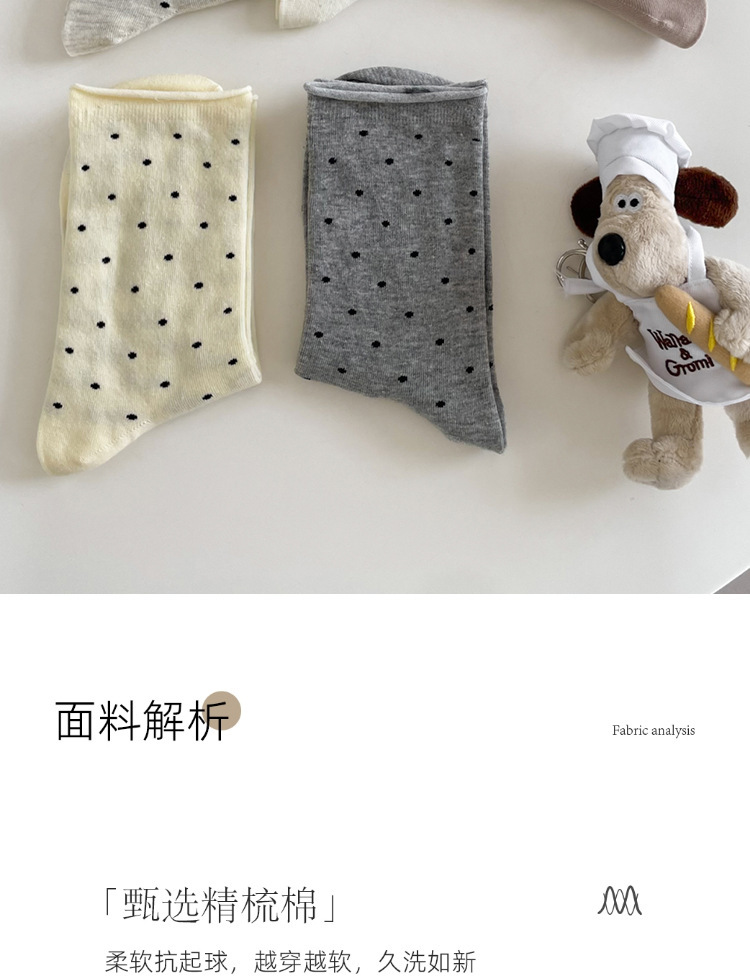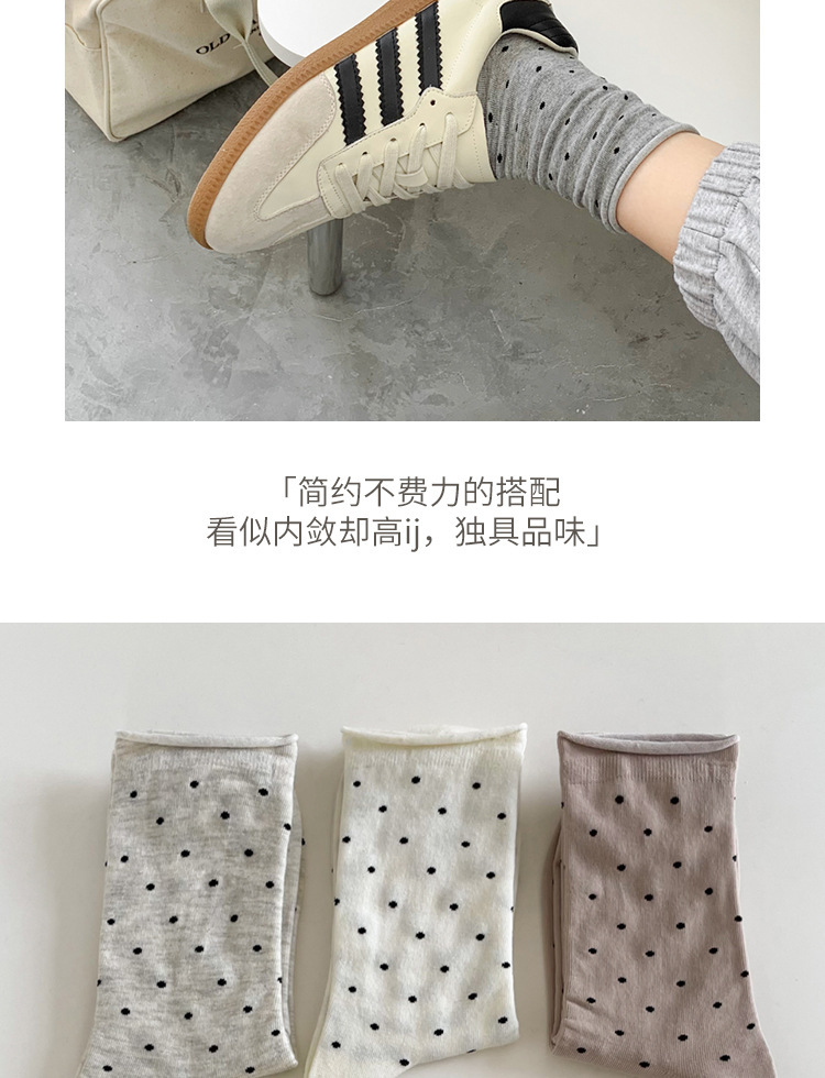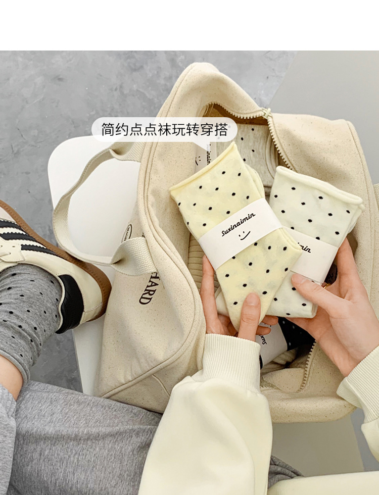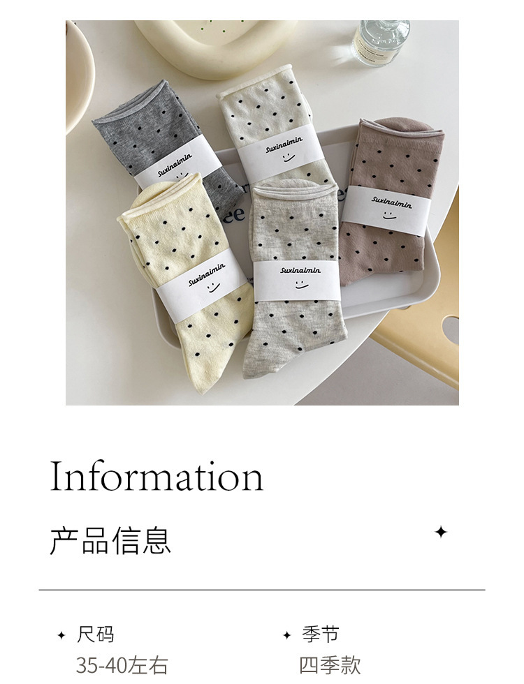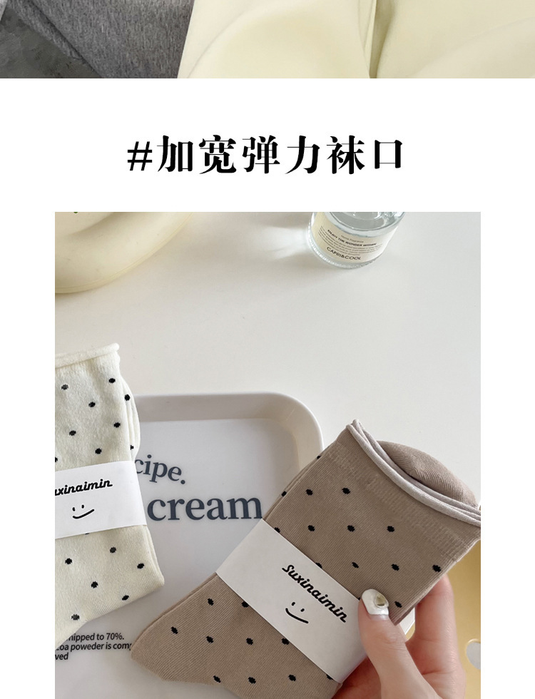양말 여성의 봄과 여름 땀 흡수성 유행 크림 스타일 컬 도트 미드 양말 예술적 문 양말 트렌드스토어 가기