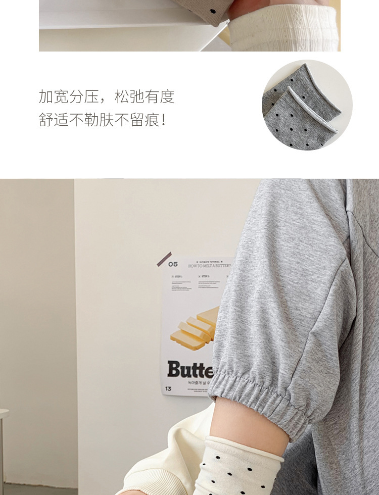 양말 여성의 봄과 여름 땀 흡수성 유행 크림 스타일 컬 도트 미드 양말 예술적 문 양말 트렌드