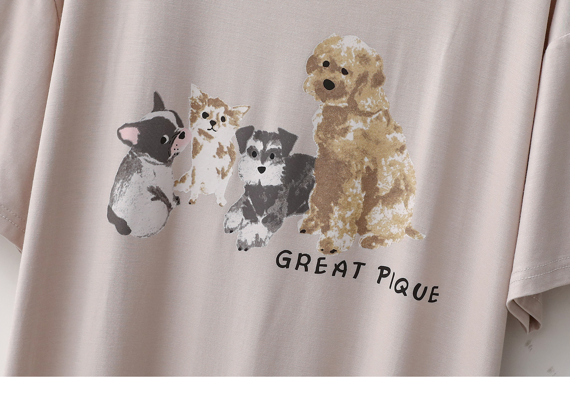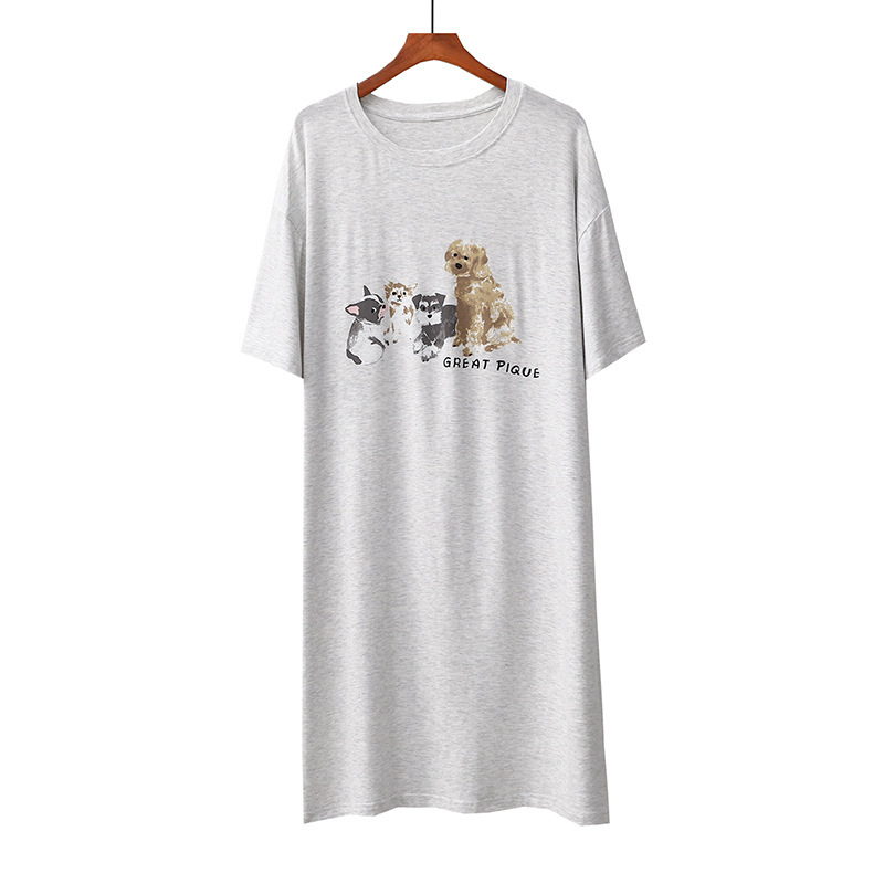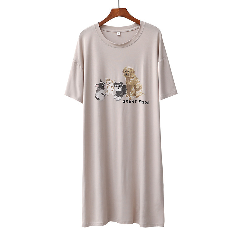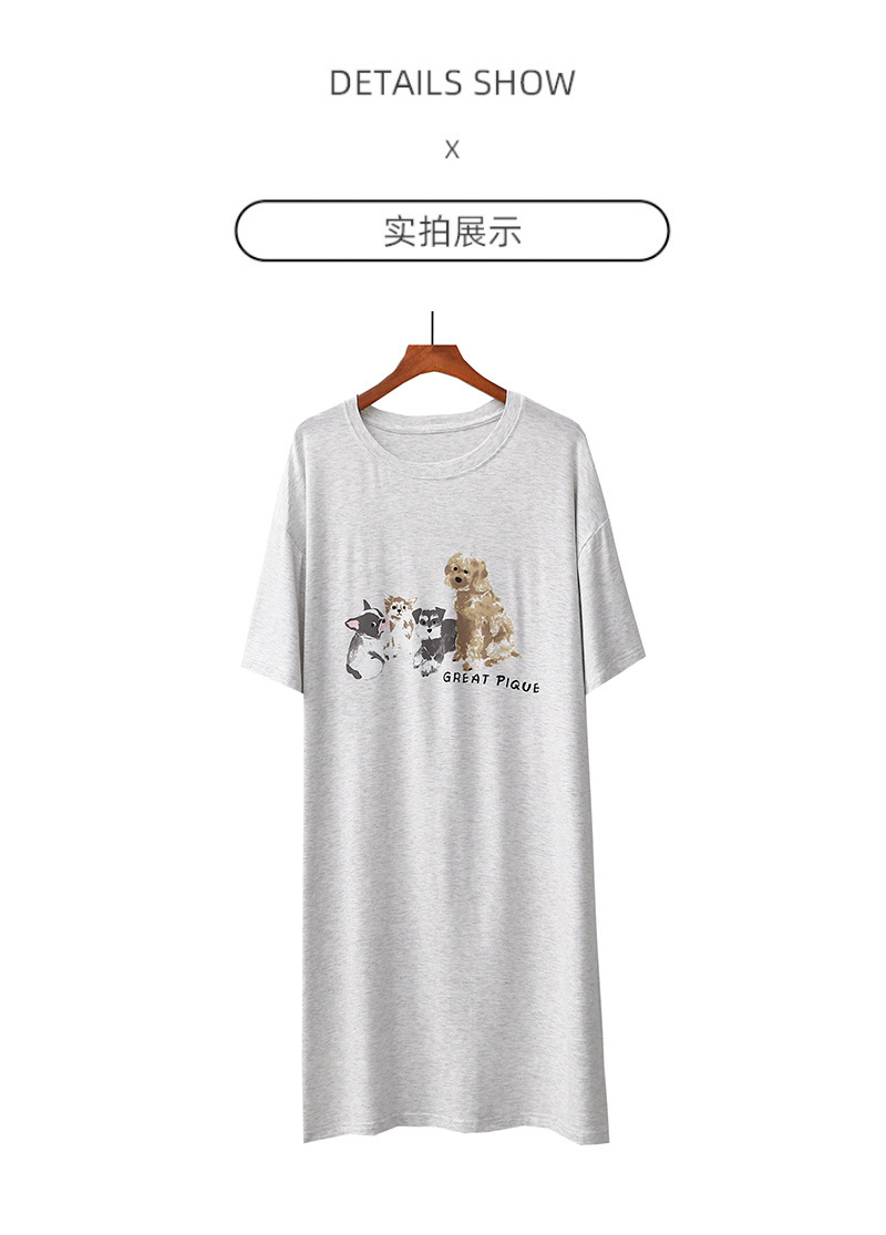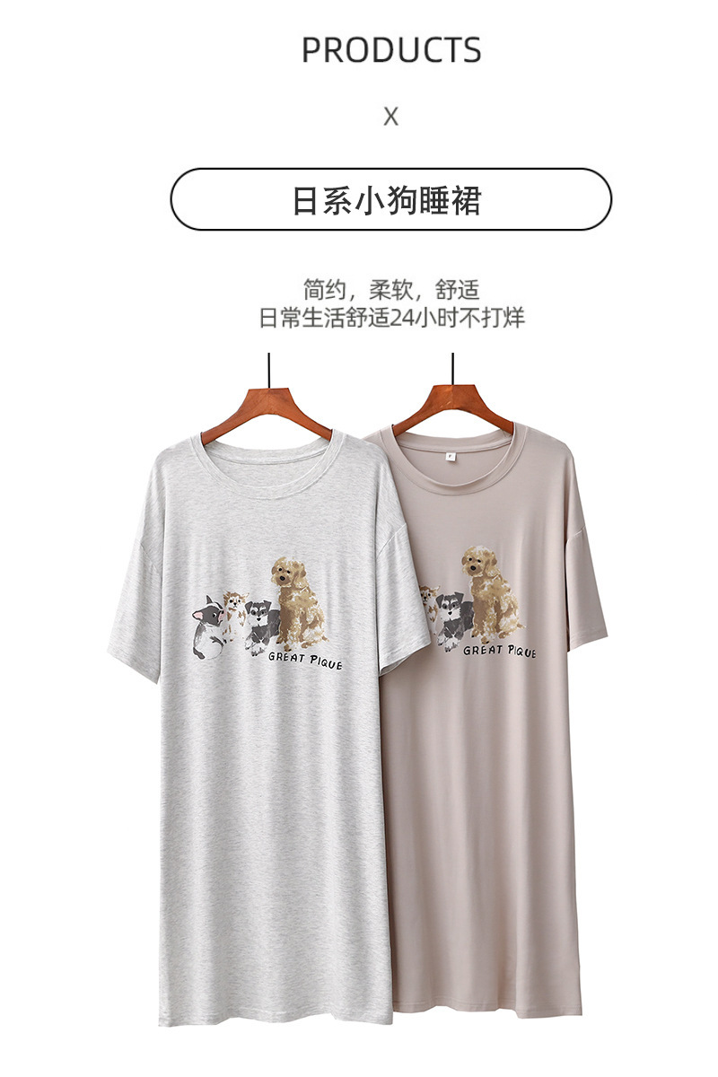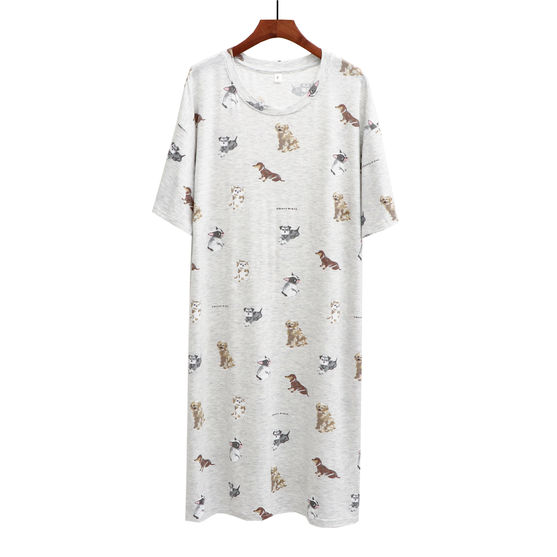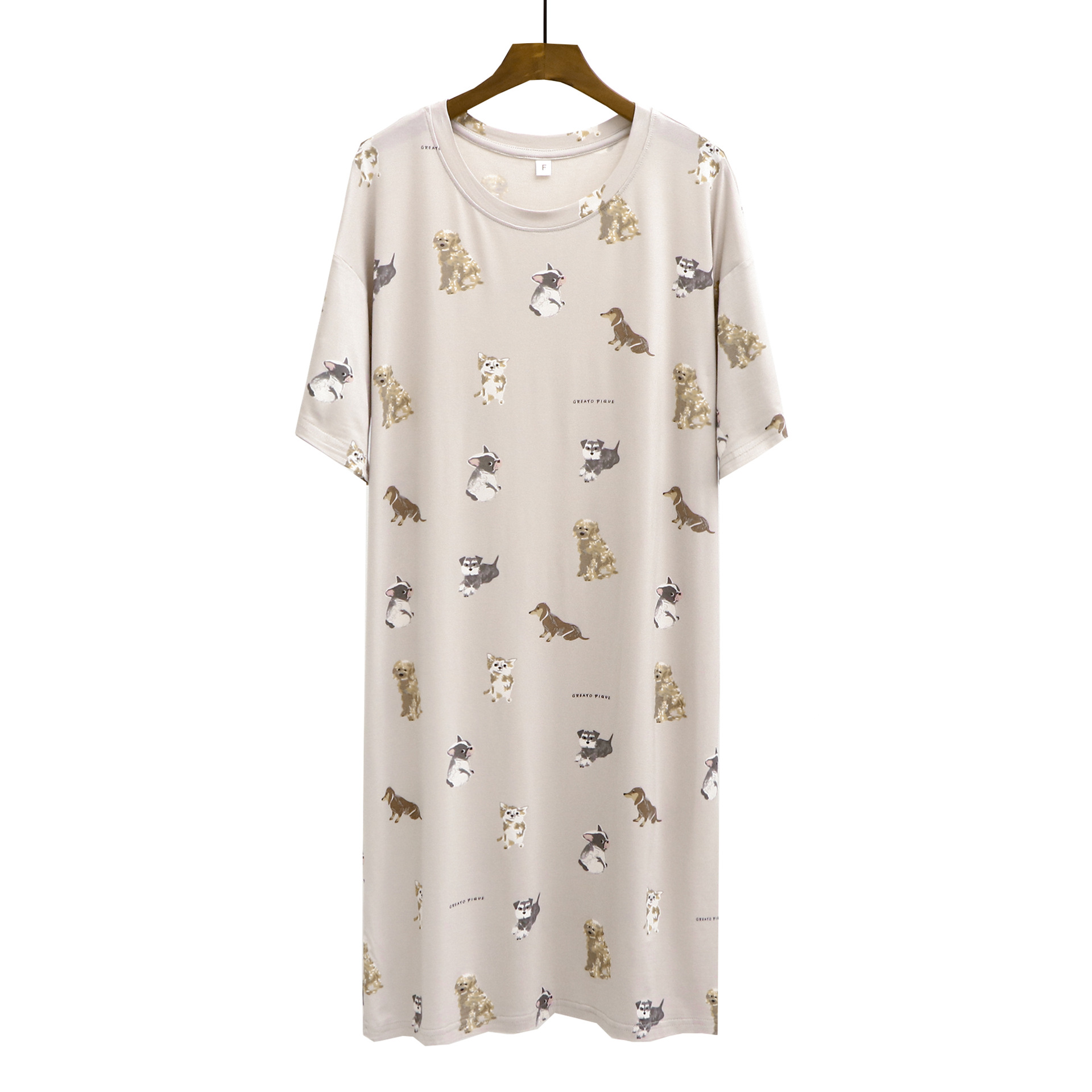 2024 새로운 강아지 인쇄 만화 모달 Nightdress 여성 여름 짧은 소매 얇은 캐주얼 라운드 넥 잠옷