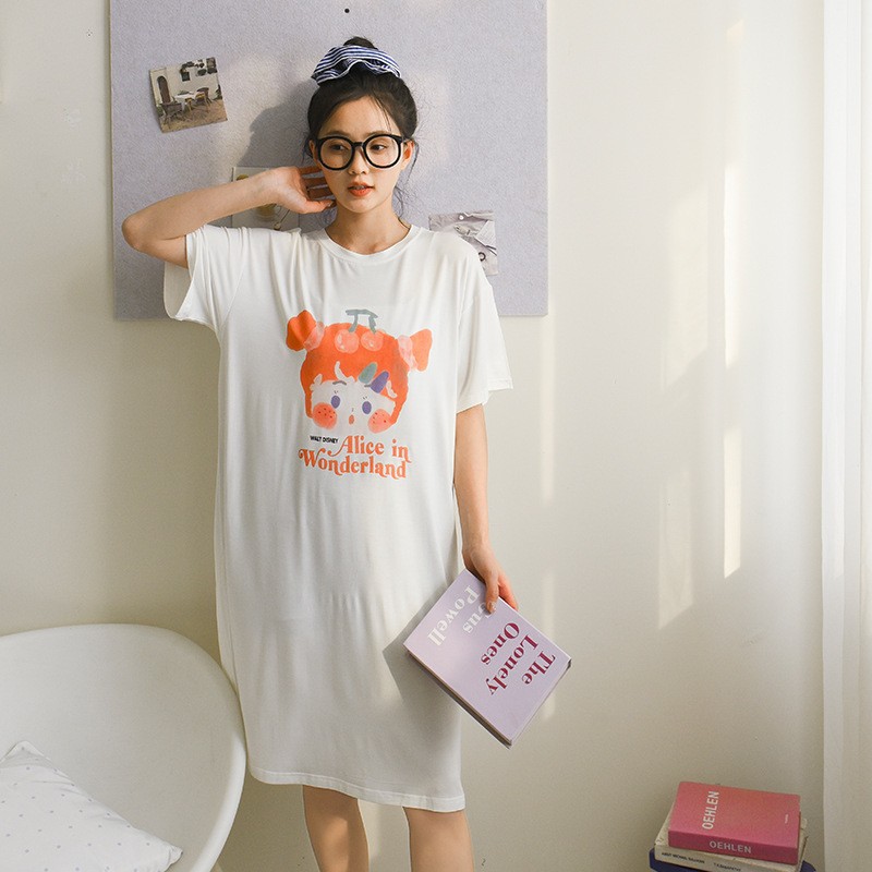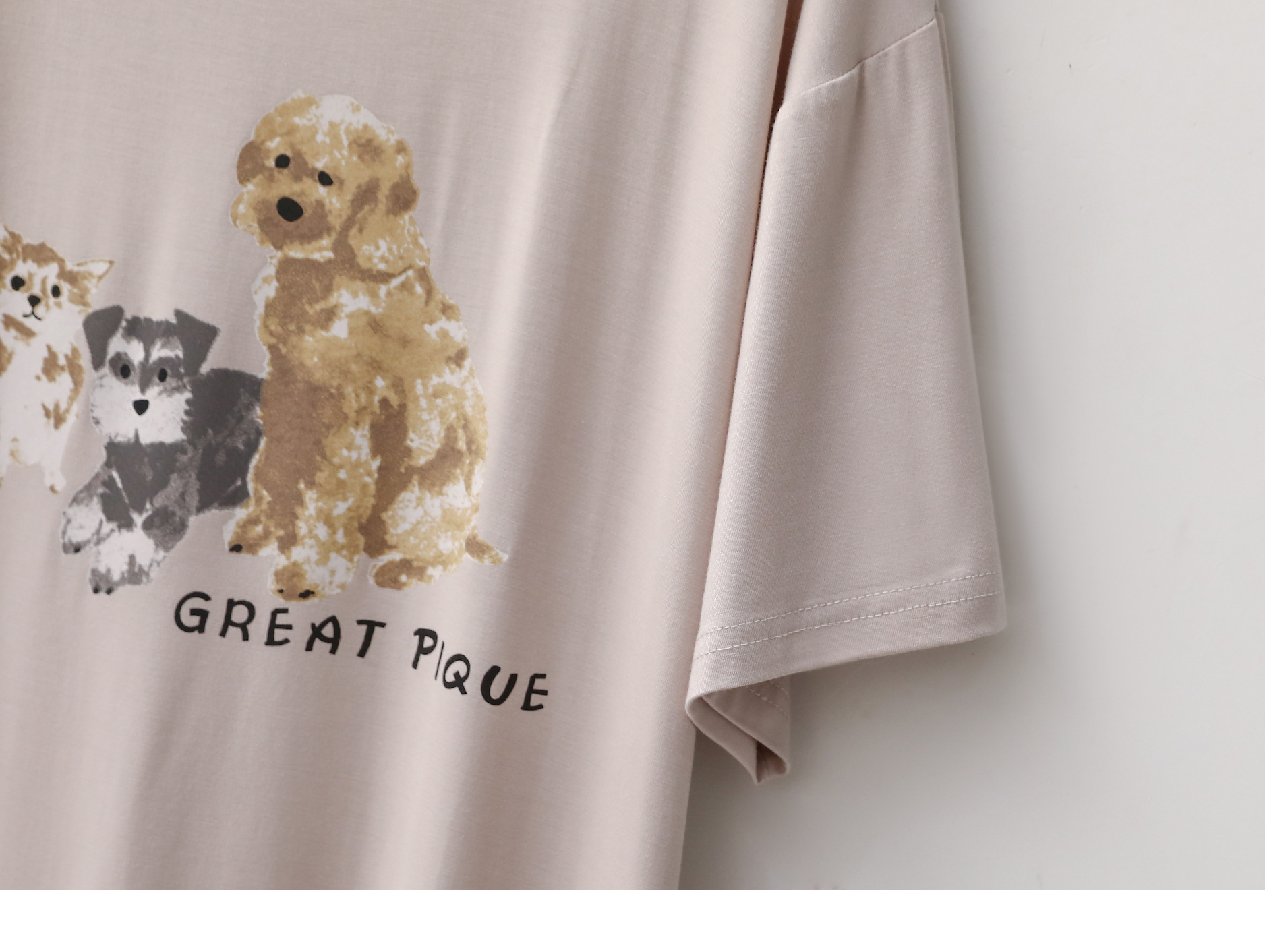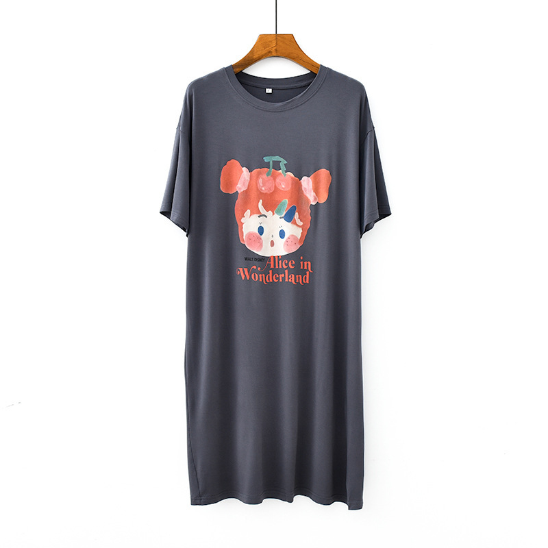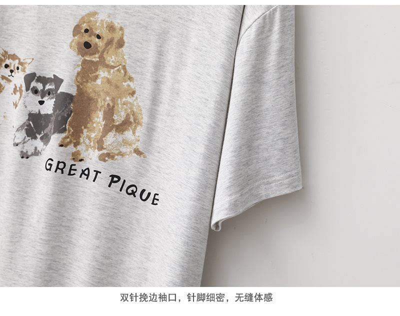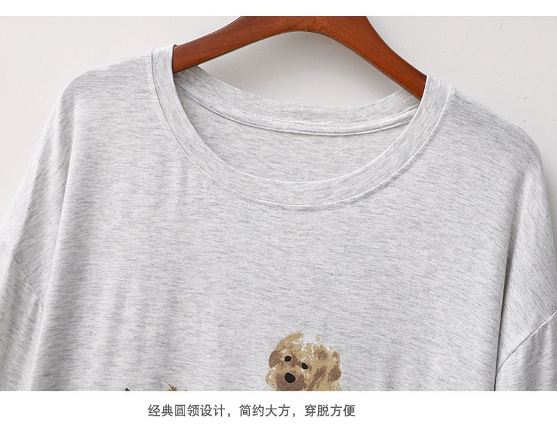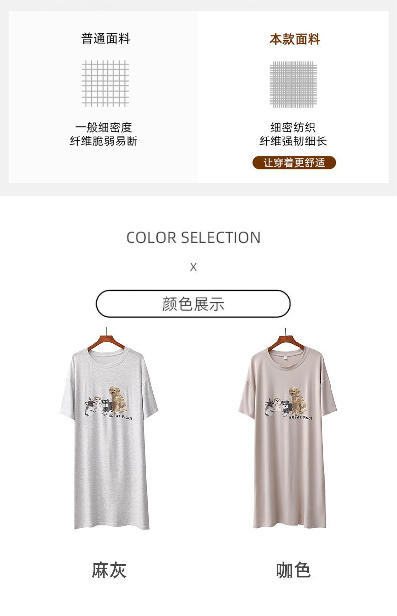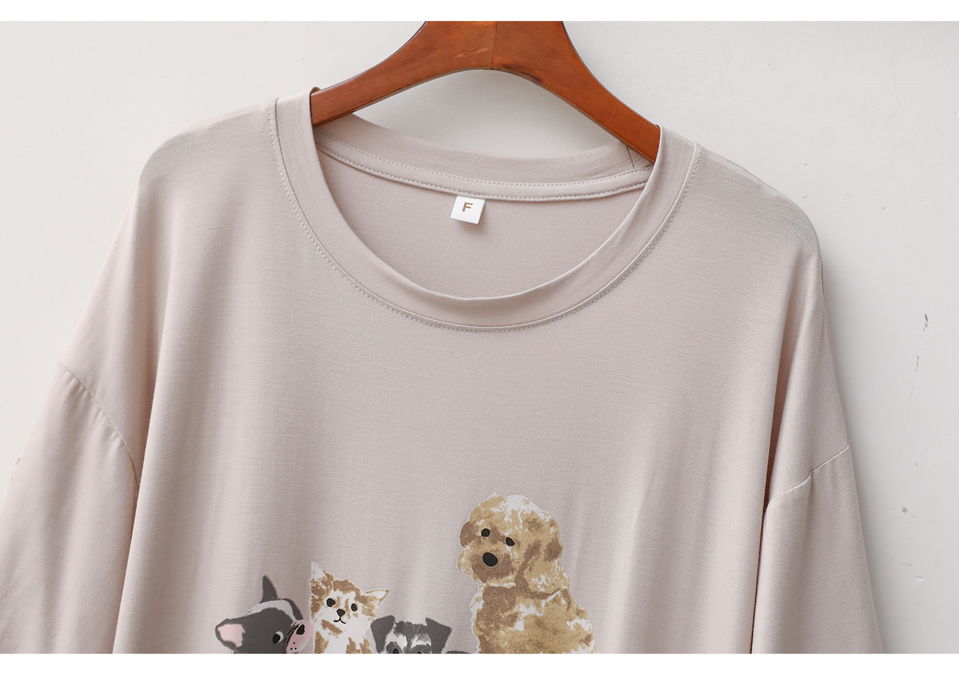 2024 새로운 강아지 인쇄 만화 모달 Nightdress 여성 여름 짧은 소매 얇은 캐주얼 라운드 넥 잠옷