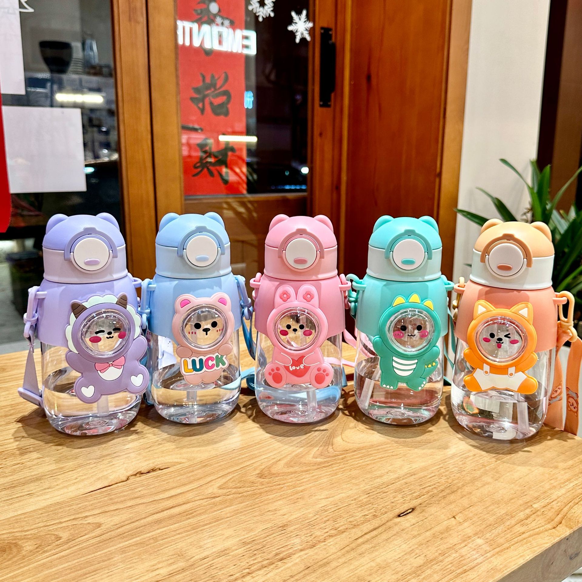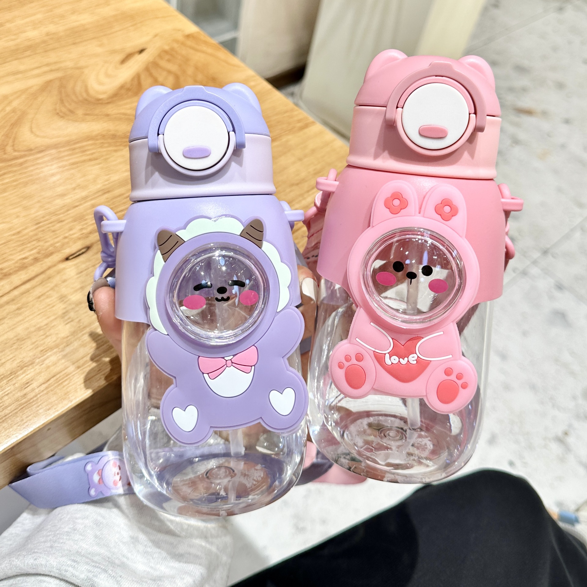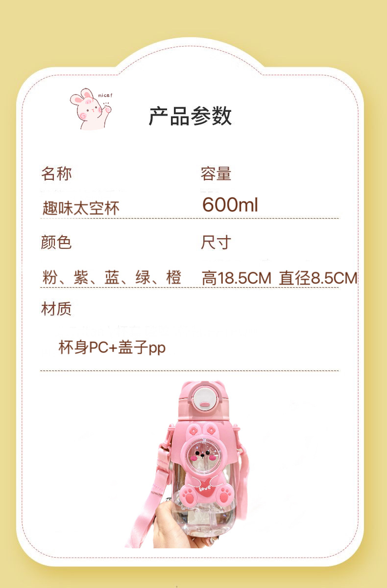 여름 어린이 플라스틱 밀짚 물 컵 새로운 귀여운 높은 모습의 남성과 여성 초등학생 만화 컵 휴대용 드롭 방지스토어 가기