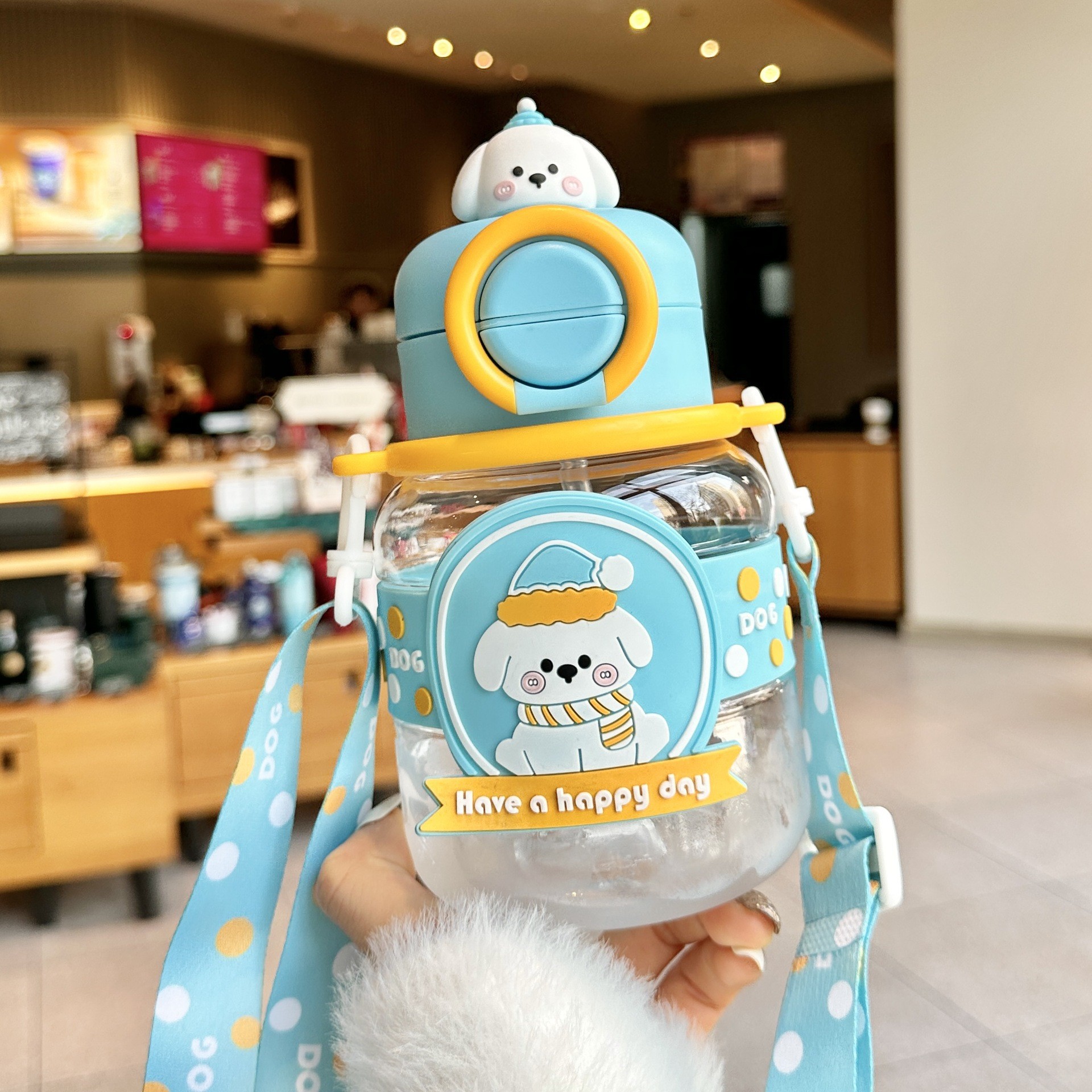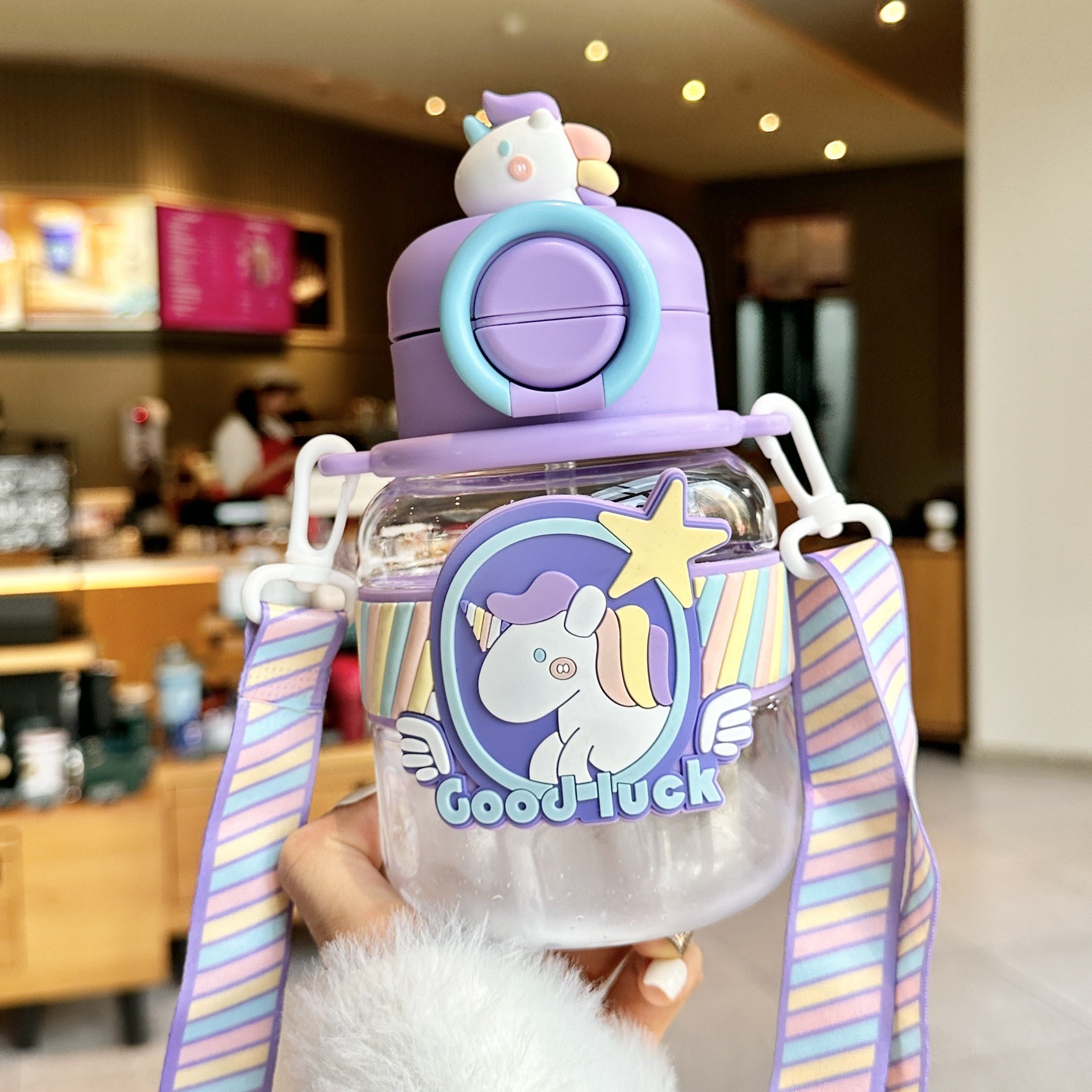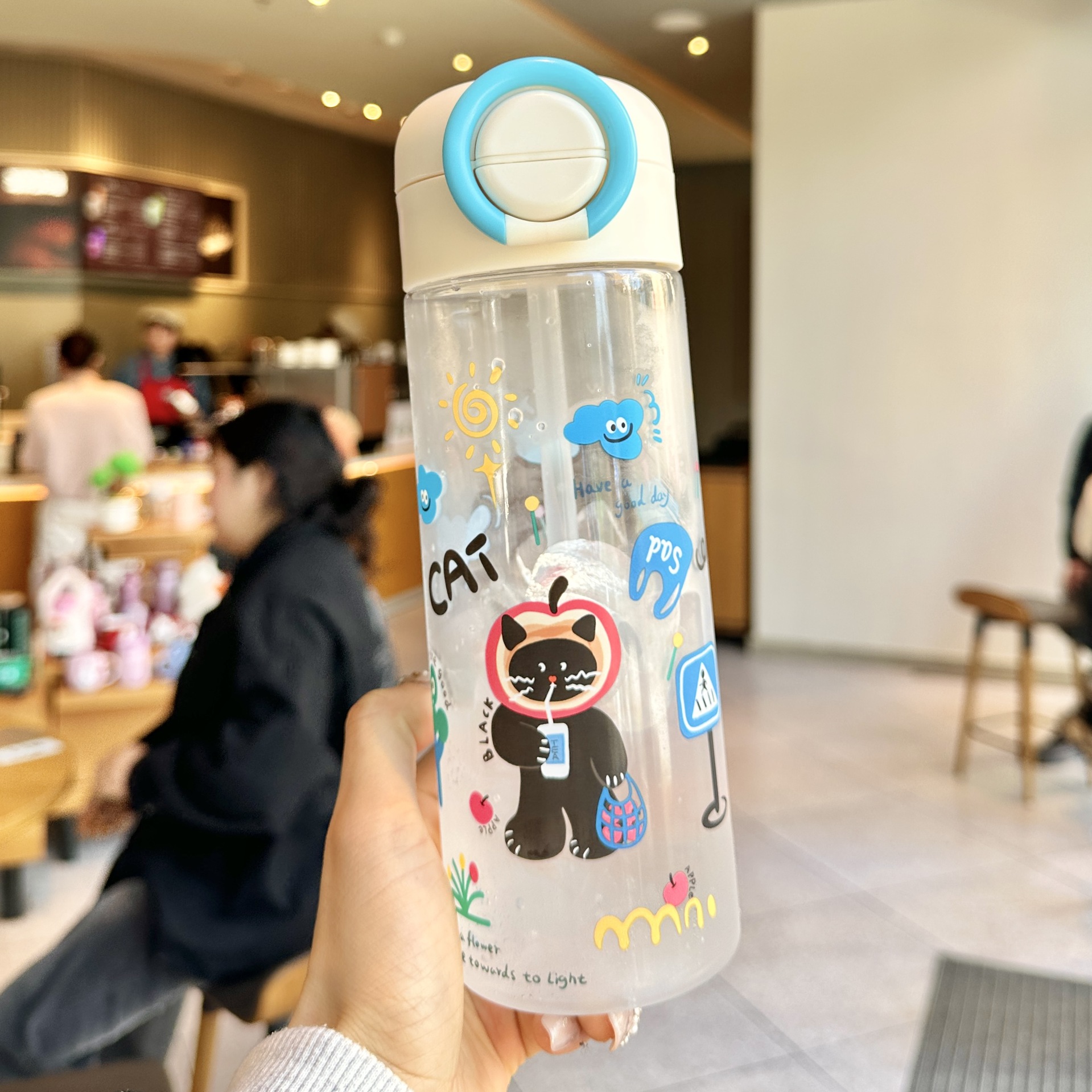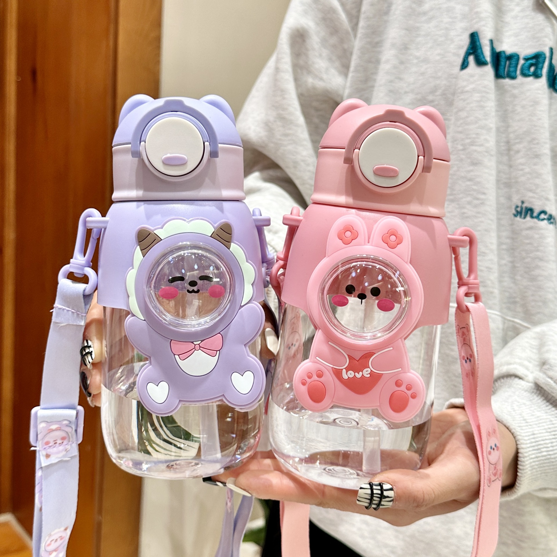 여름 어린이 플라스틱 밀짚 물 컵 새로운 귀여운 높은 모습의 남성과 여성 초등학생 만화 컵 휴대용 드롭 방지