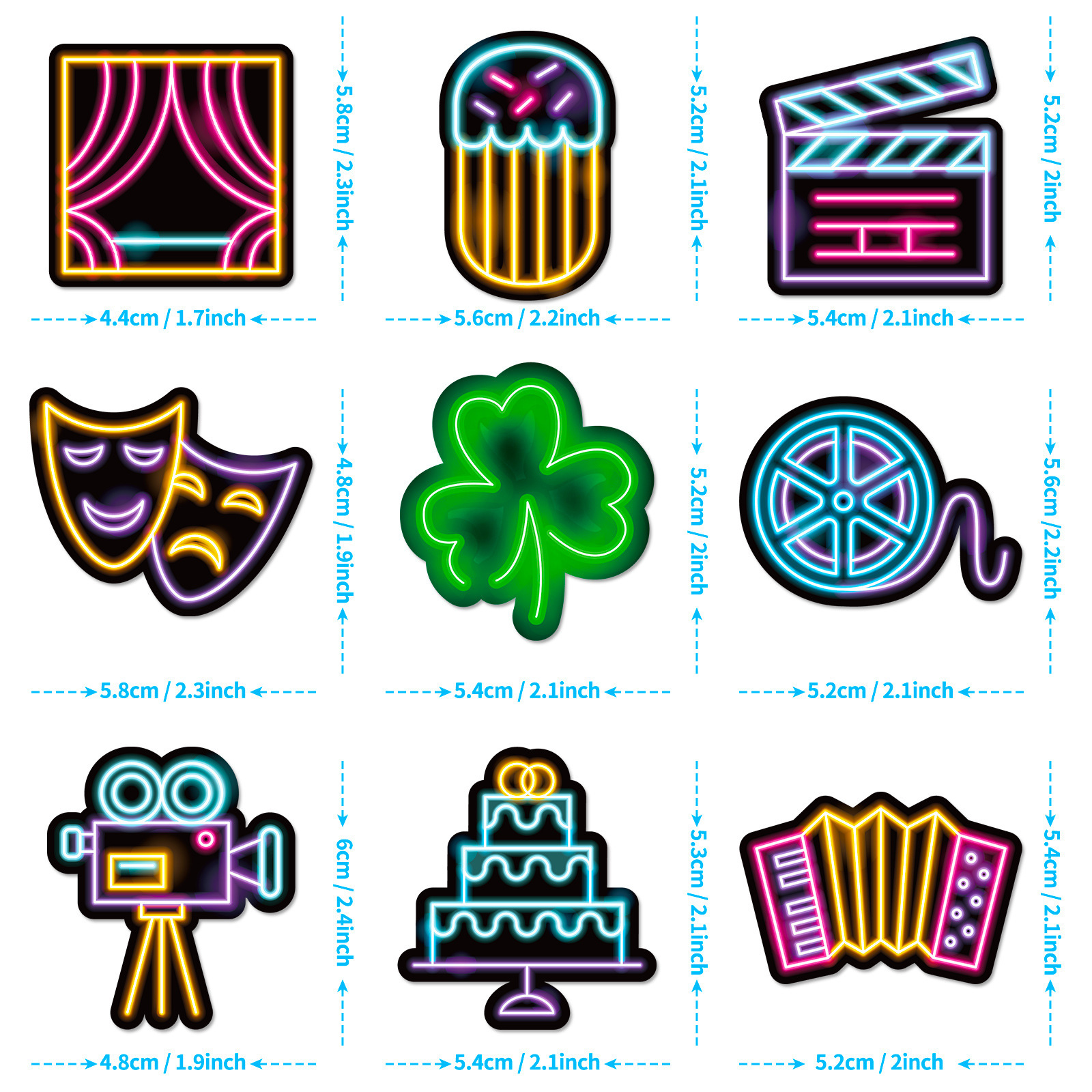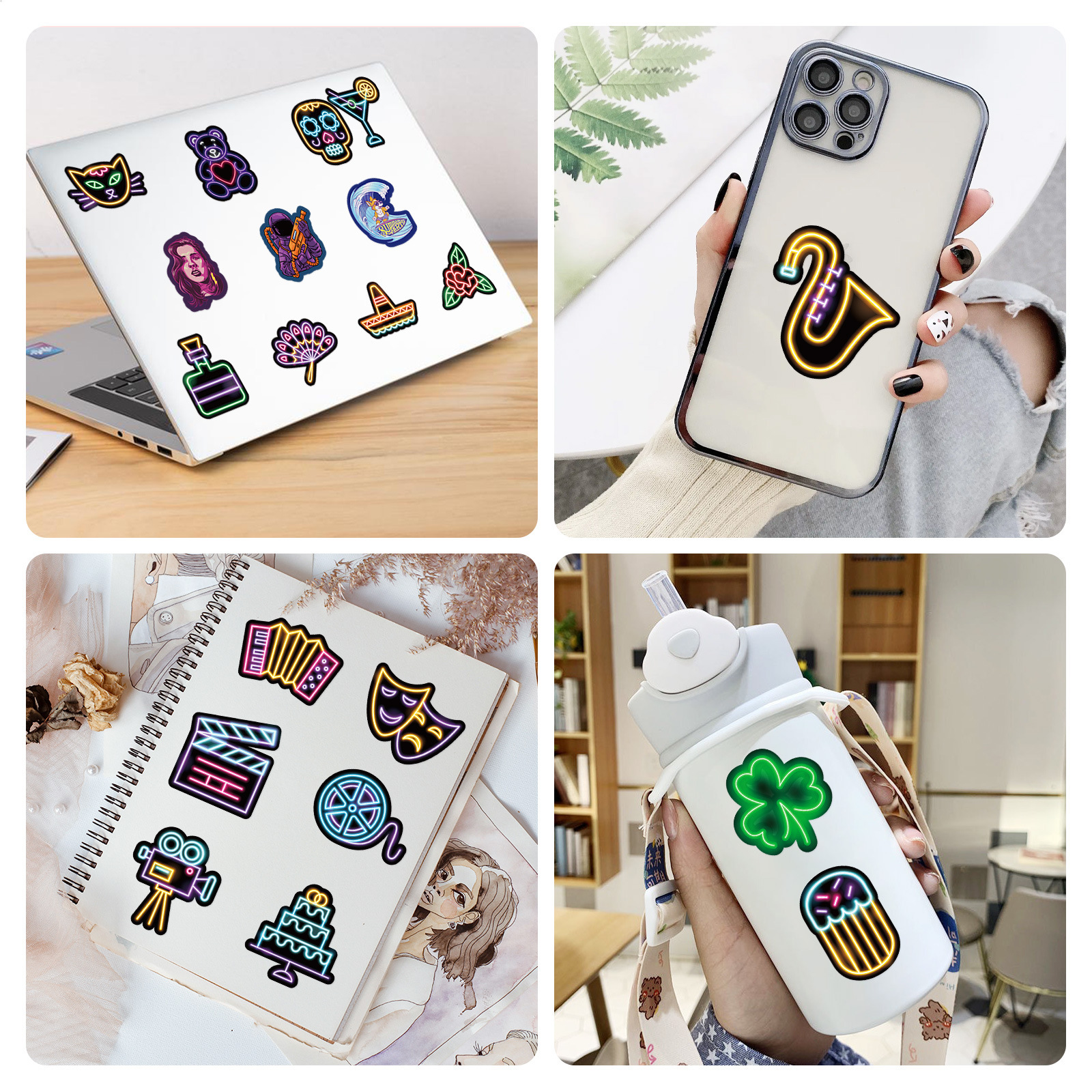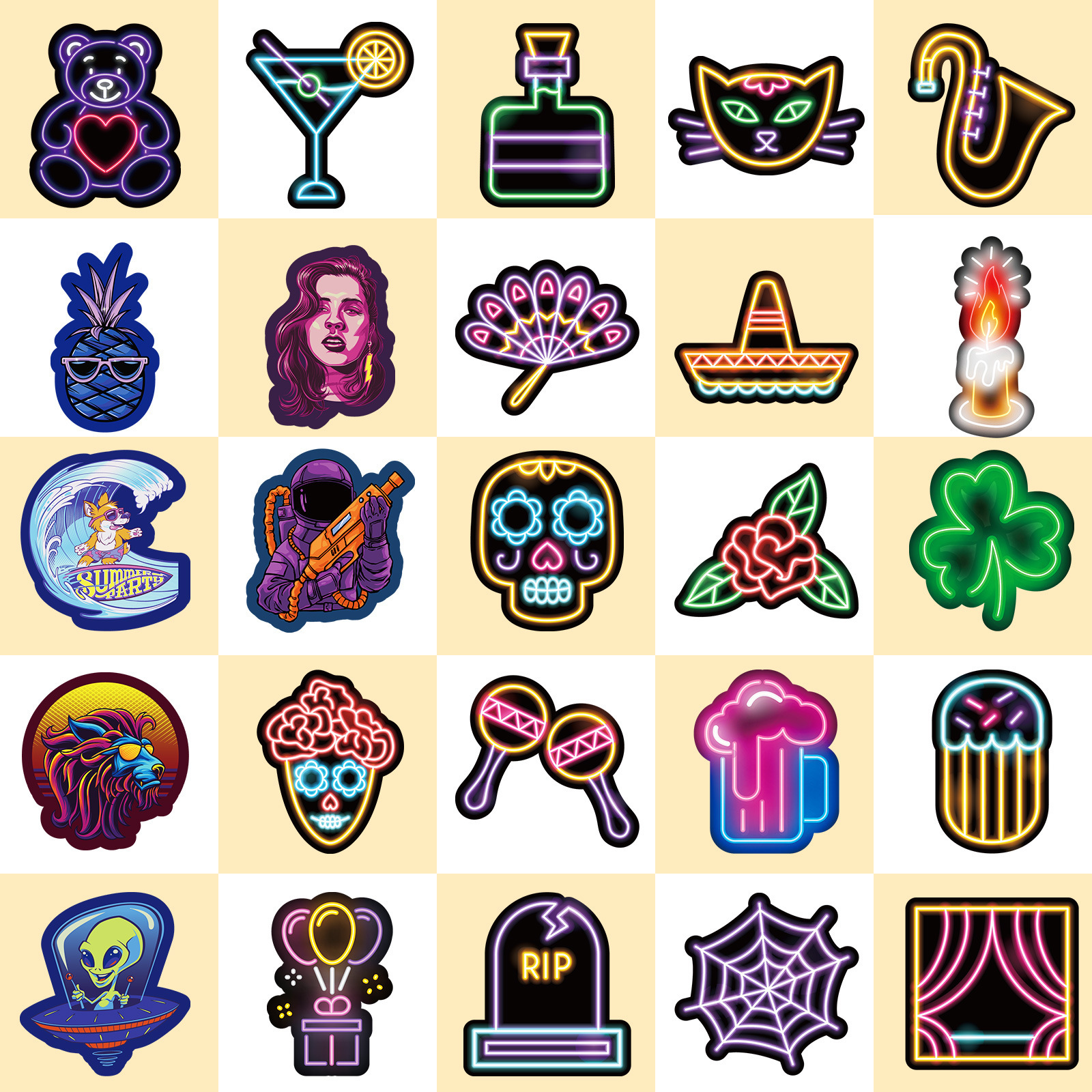 50 크로스 보더 나이트 네온 스티커 개인화 된 만화 노트북 스케이트 보드 형광 크리스마스 네온 스티커스토어 가기