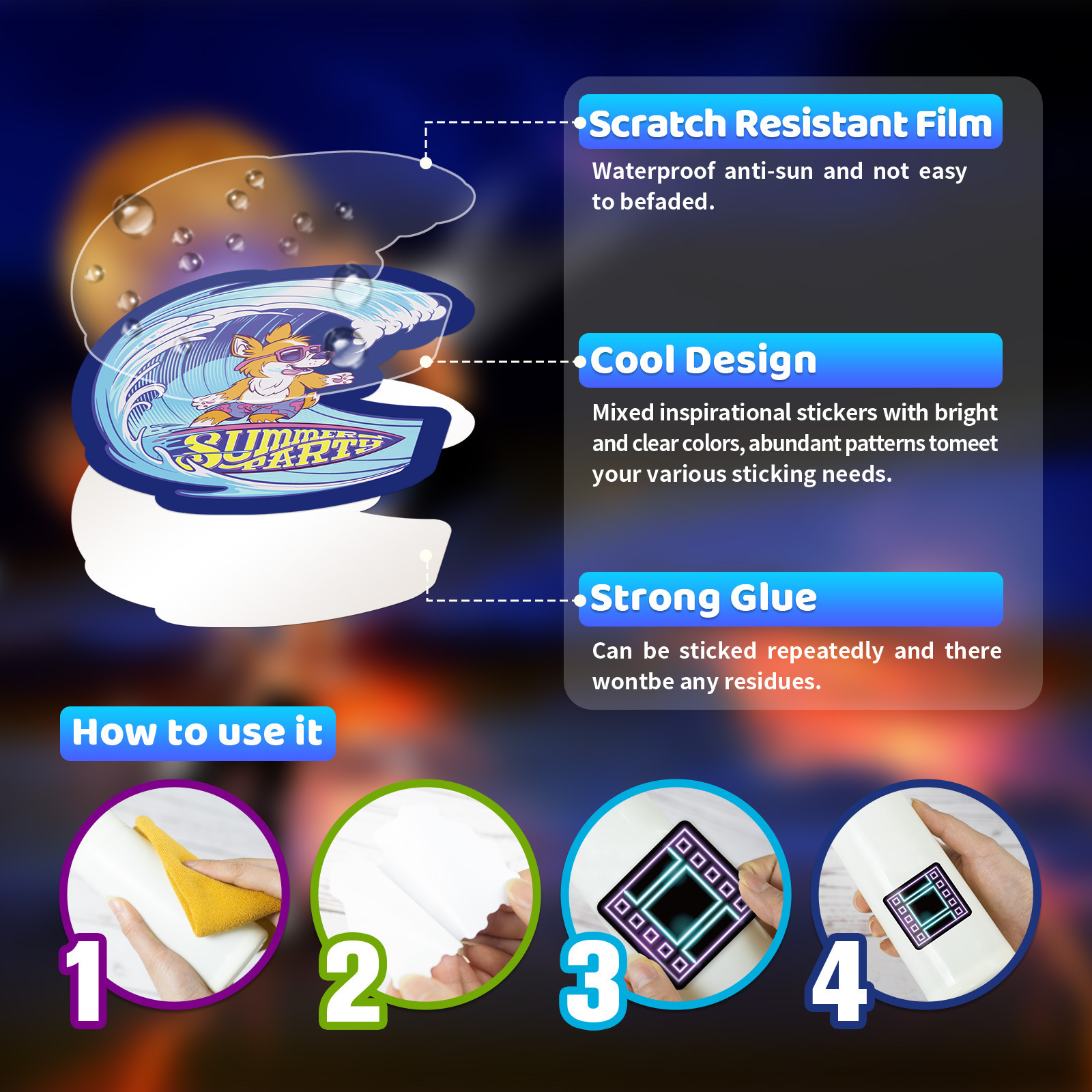 50 크로스 보더 나이트 네온 스티커 개인화 된 만화 노트북 스케이트 보드 형광 크리스마스 네온 스티커