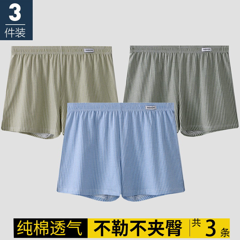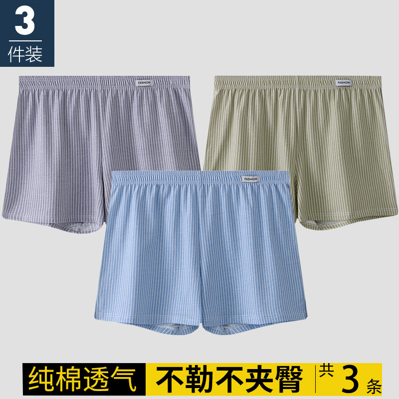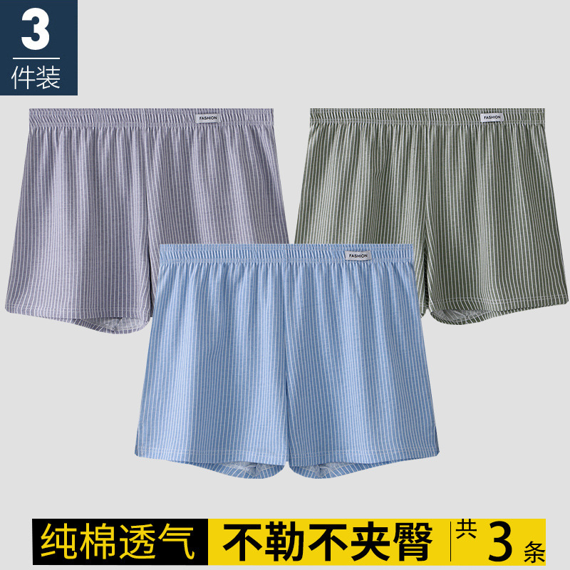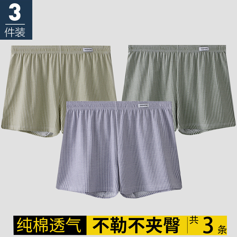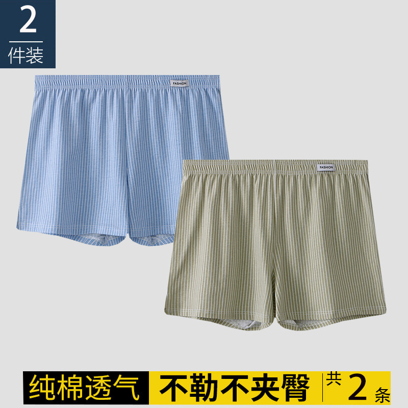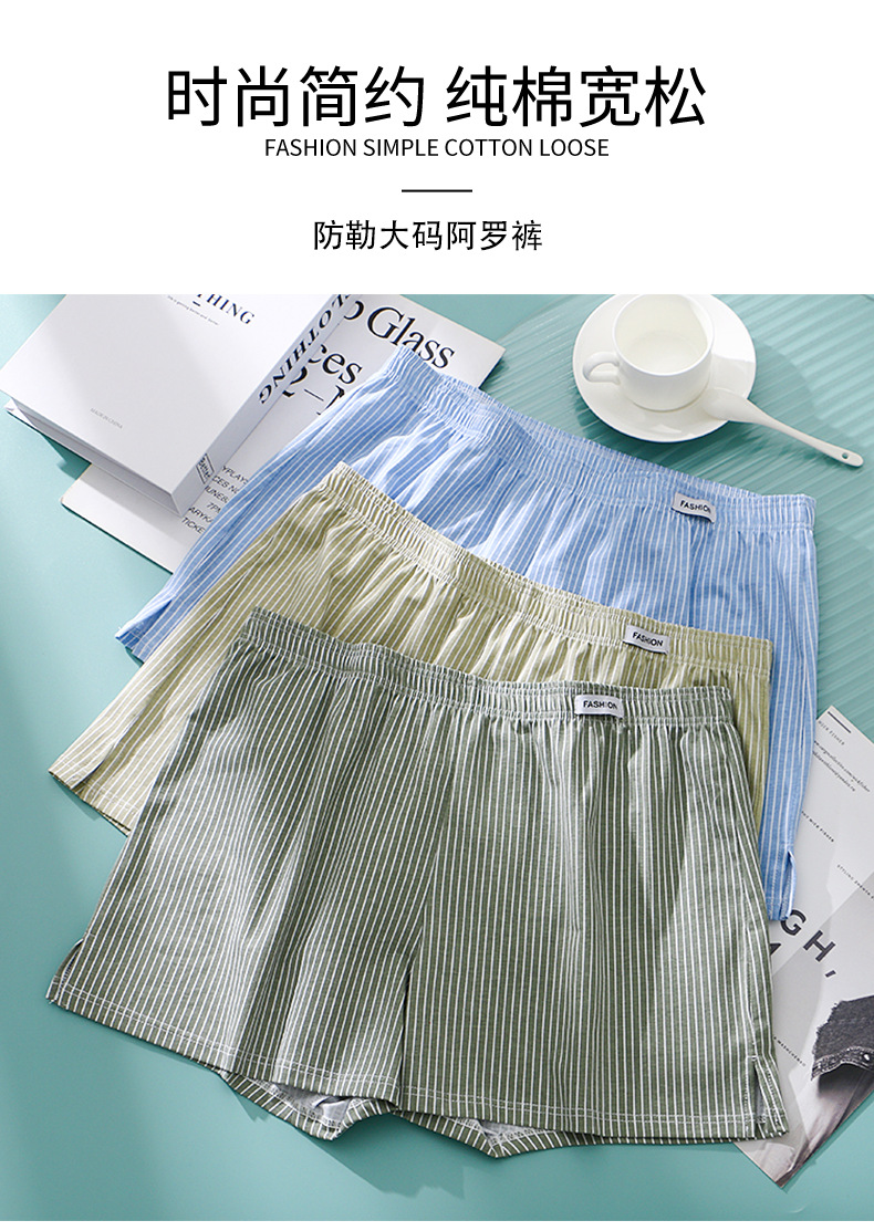 남성용 속옷 아로 팬츠 신상 남성용 순면 통기성 루즈핏 사각 청소년 스트라이프 홈웨어 반바지스토어 가기