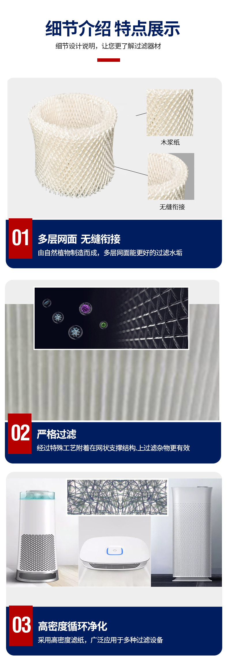 항균, 곰팡이 방지, 무안개 가습기 필터재, 고양이 및 강아지 털 필터, 무안개 가습기 필터