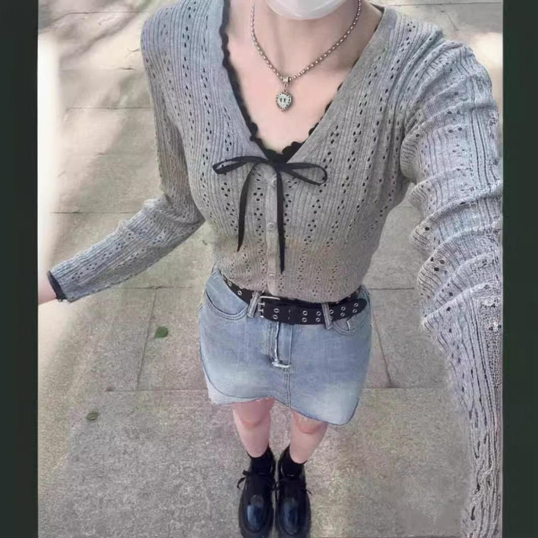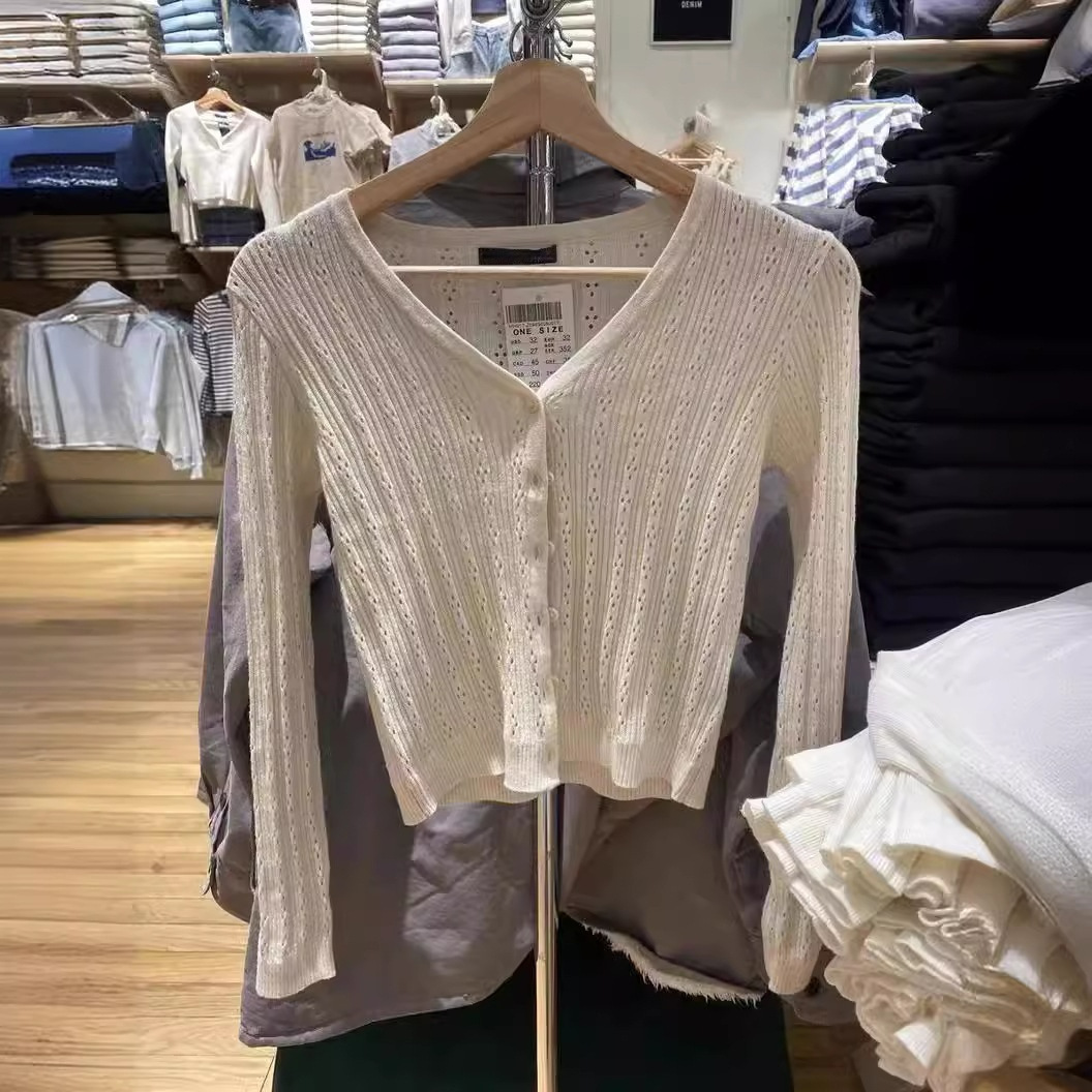 BM 스타일 송 주어 같은 스타일의 중공 아이스 실크 니트 카디건 bm 얇은 버튼 코트 에어컨 셔츠 목도리 태양 보호 의류