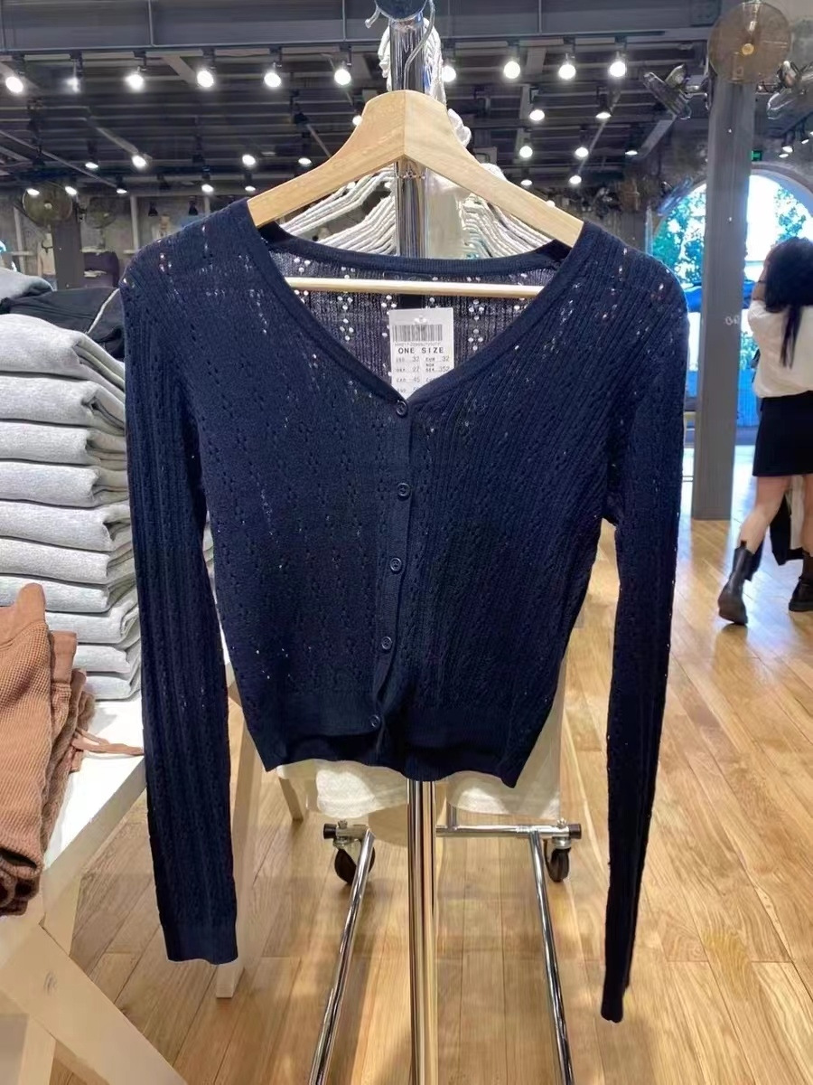 BM 스타일 송 주어 같은 스타일의 중공 아이스 실크 니트 카디건 bm 얇은 버튼 코트 에어컨 셔츠 목도리 태양 보호 의류스토어 가기