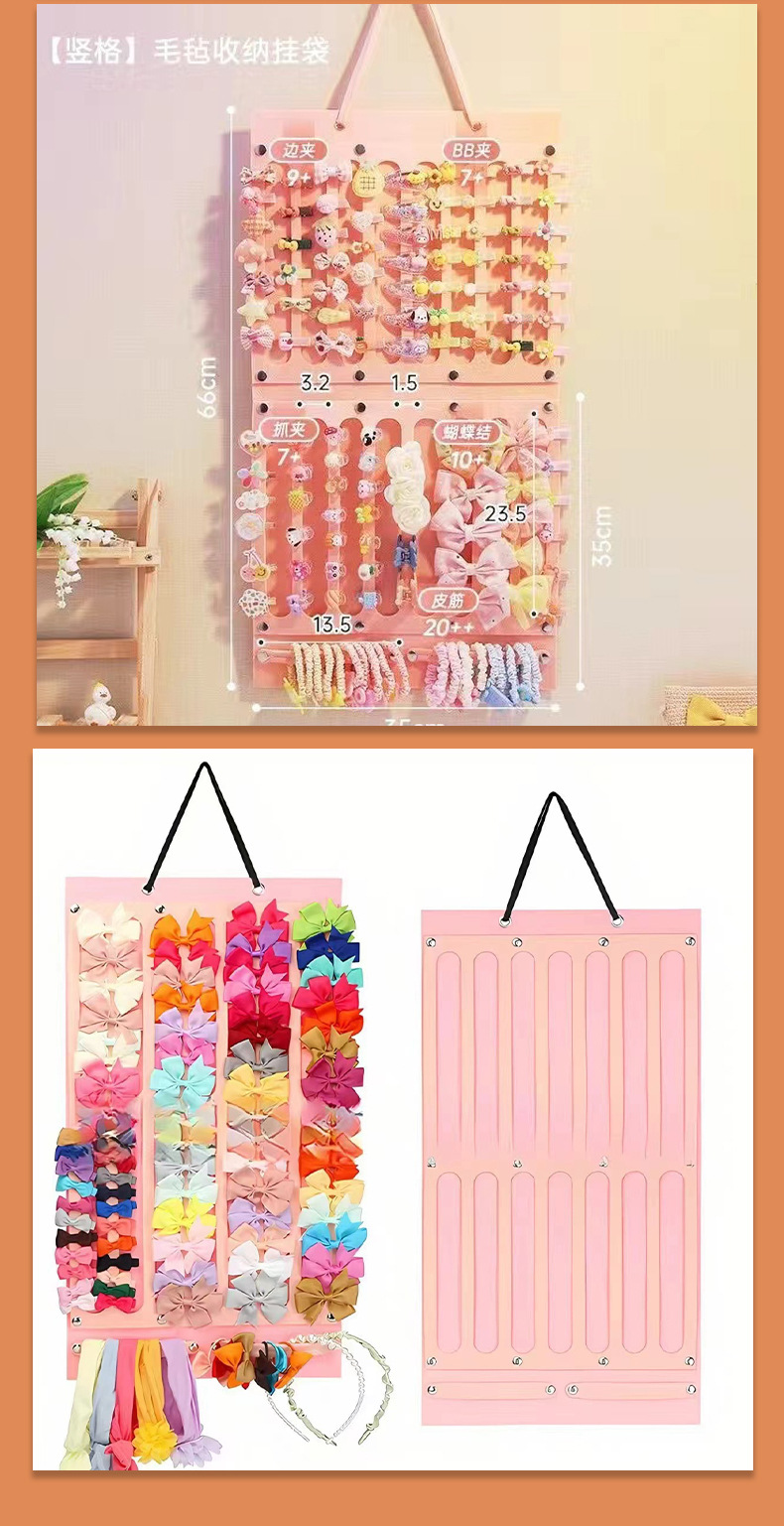도매 헤어 액세서리 수납 벽걸이 여자아이 머리띠, 헤어핀, 머리끈, 아기 액세서리 진열대 펠트 걸이 가방