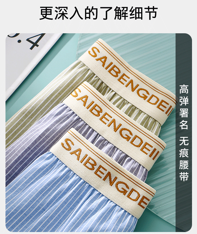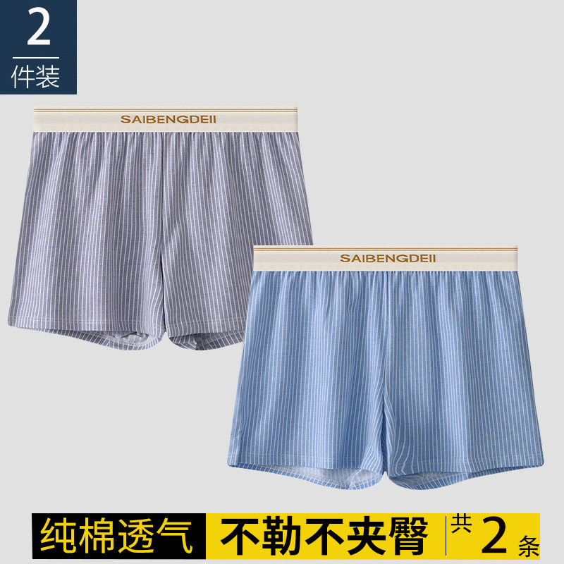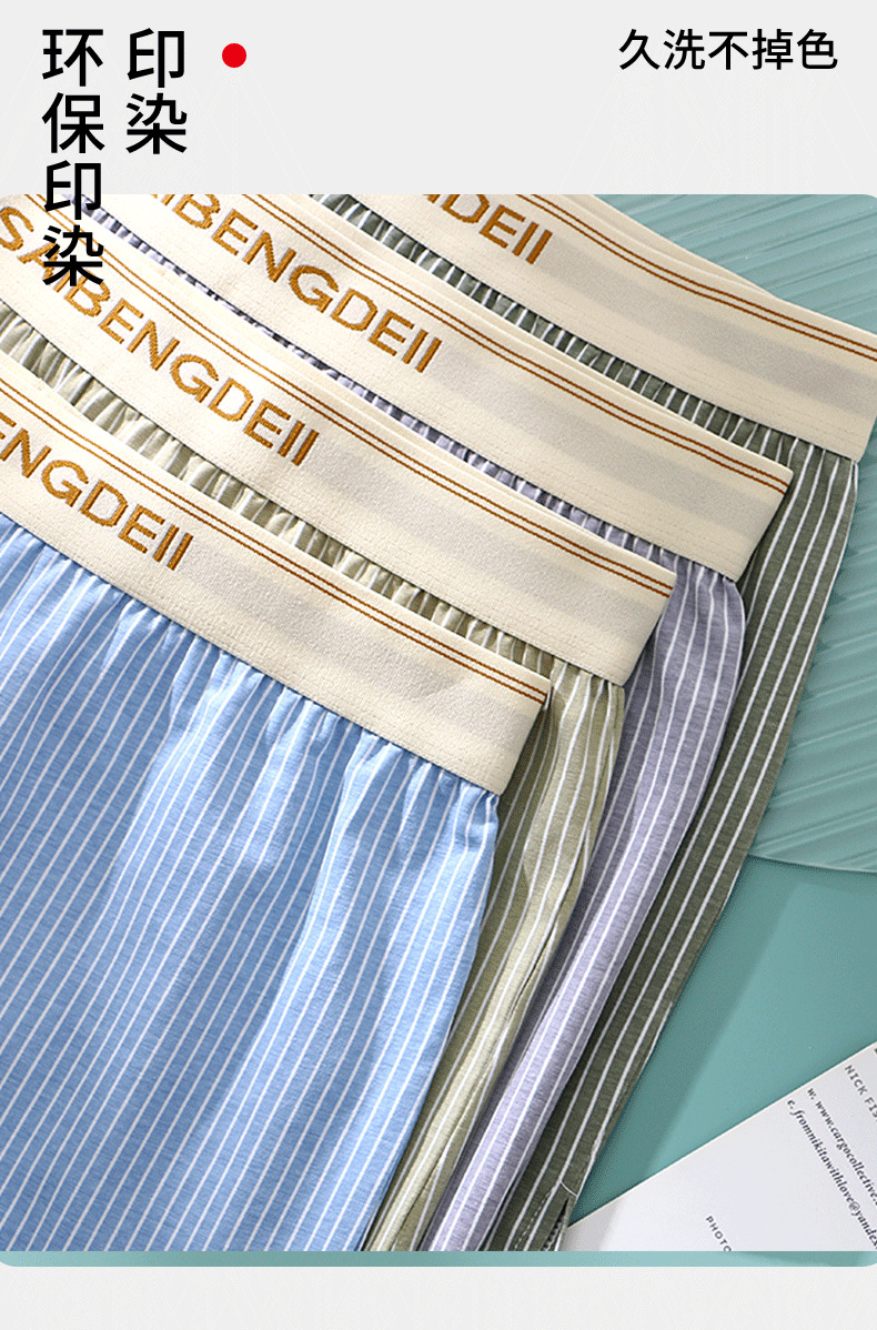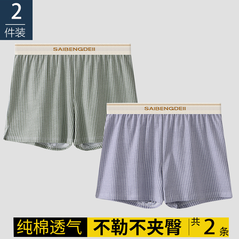 新款男士阿罗裤男款纯棉透气宽松四角内裤头青年条纹平角短裤衩