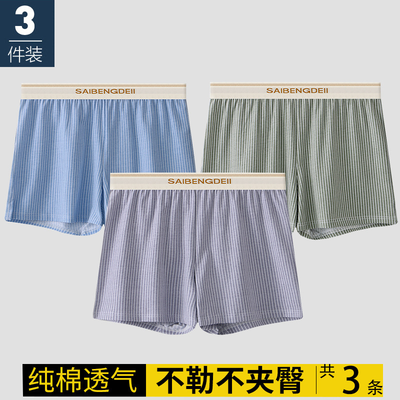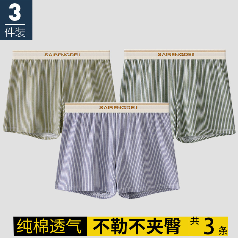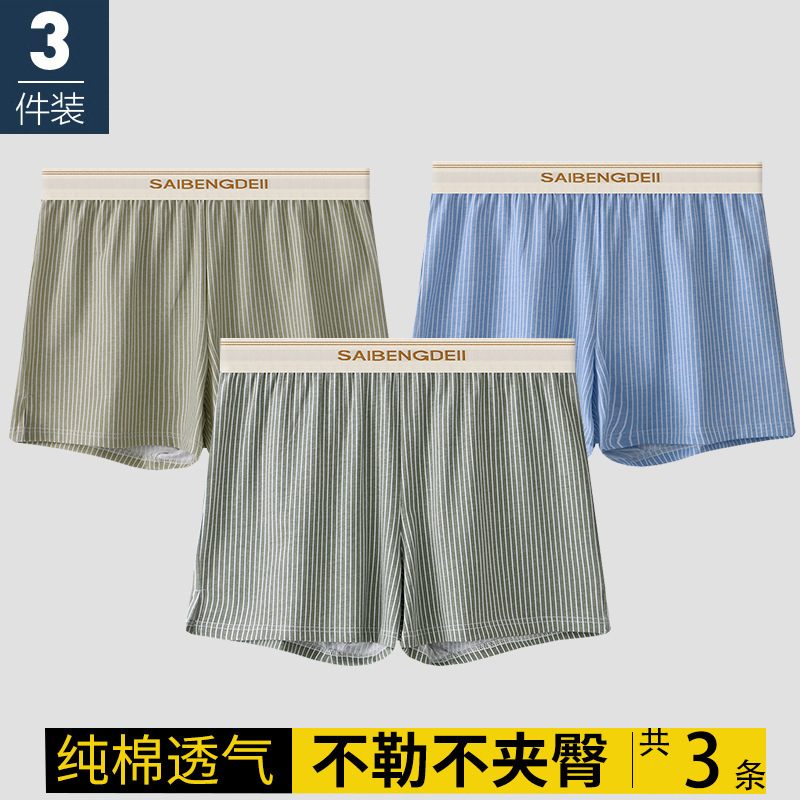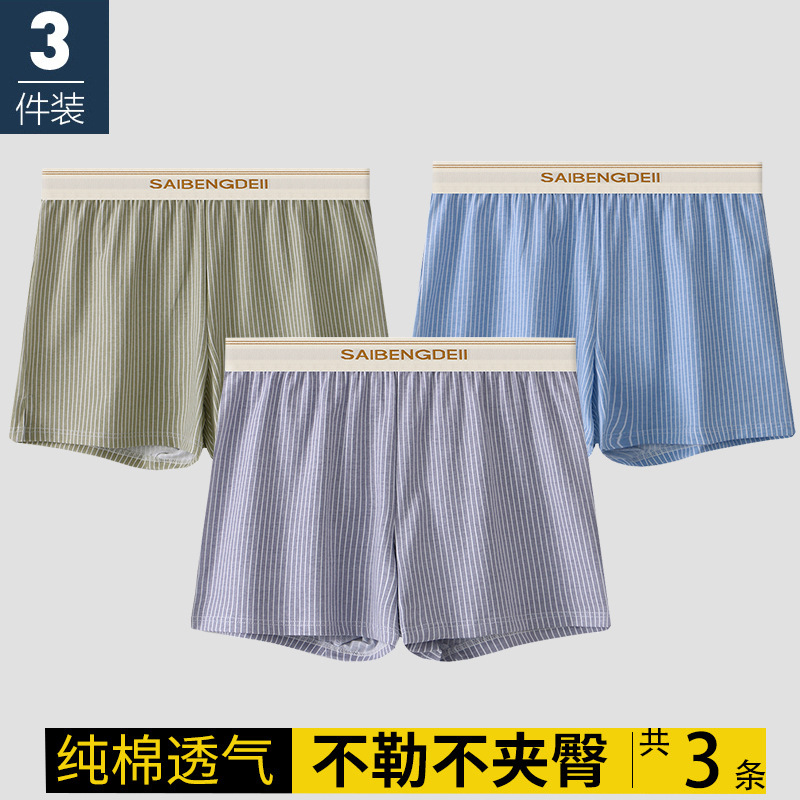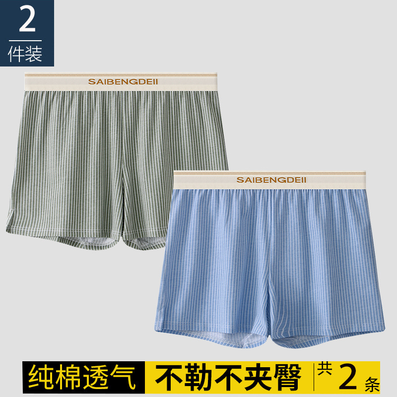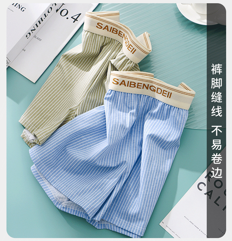 条纹内裤男士纯棉透气宽松阿罗裤男生大码运动四角休闲短裤头潮流