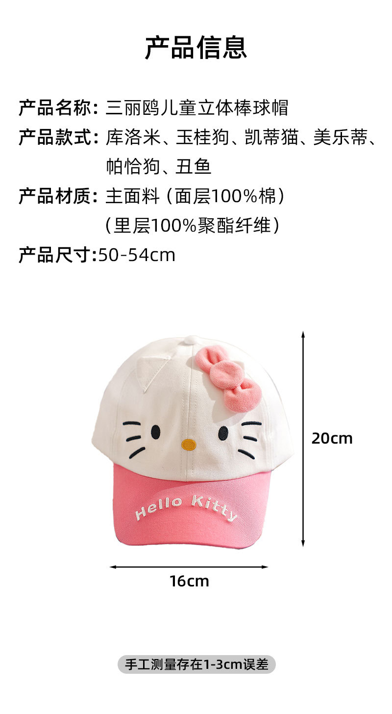 산리오 정품 어린이 3 차원 야구 모자 야외 스포츠 태양 보호 태양 그늘 다목적 캐주얼 귀여운 만화 귀여운 귀여운스토어 가기
