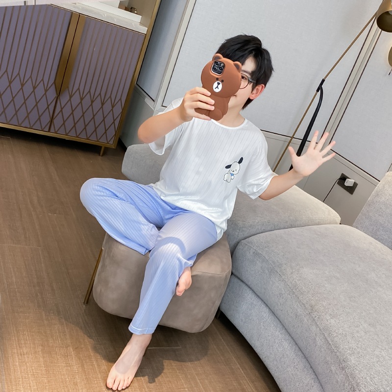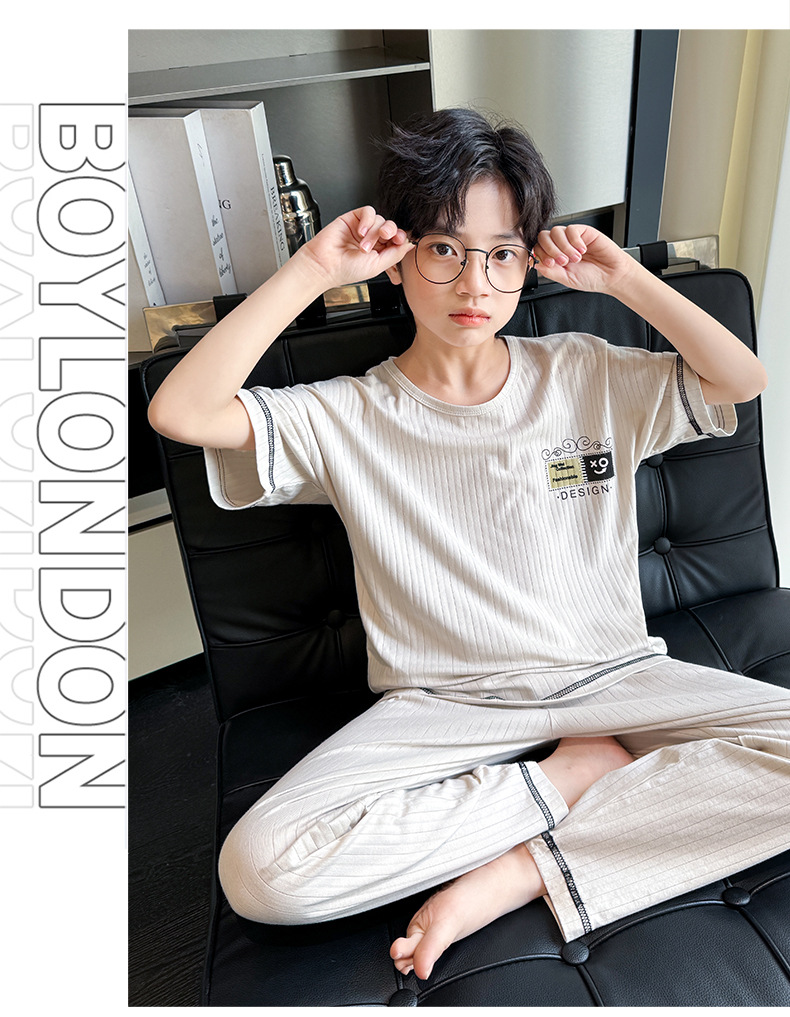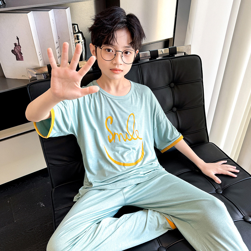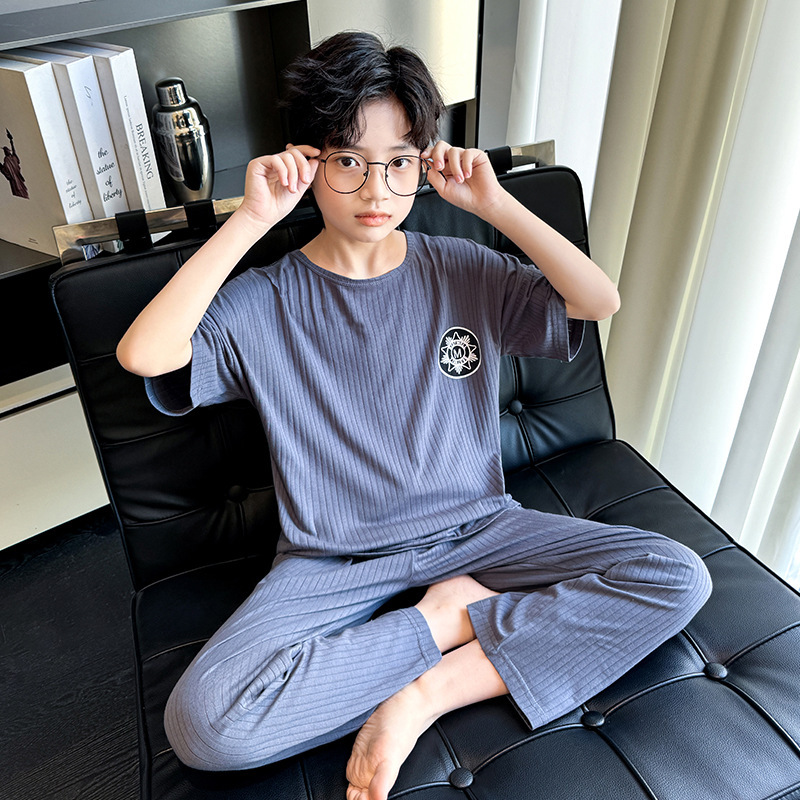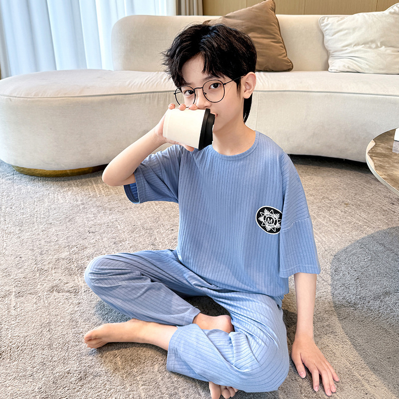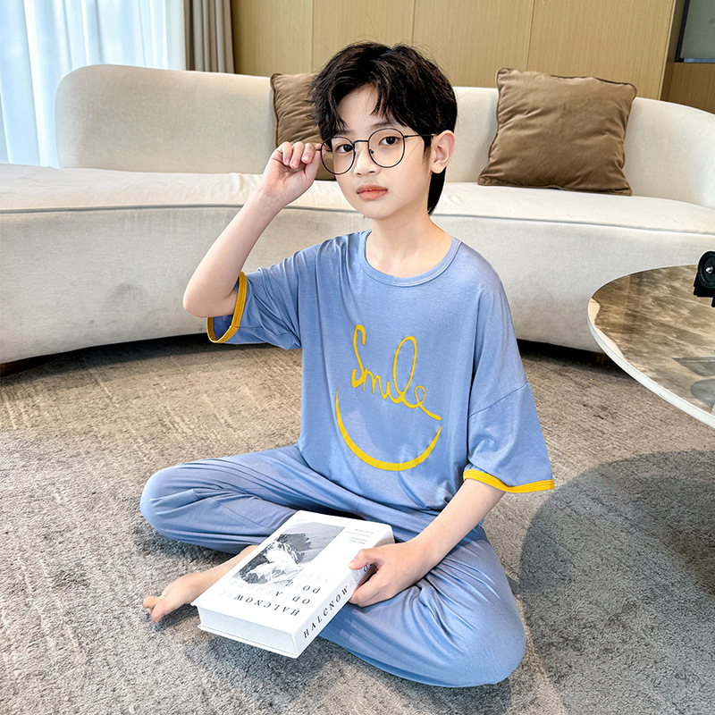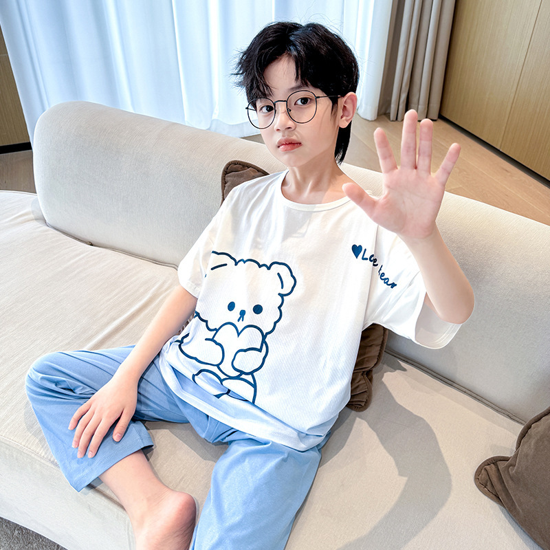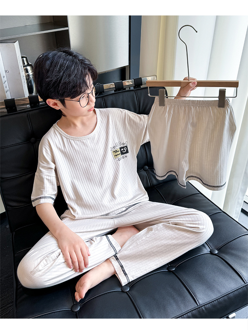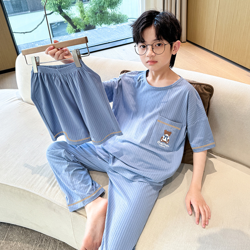 중대형 아동 남아 캐주얼 홈웨어 세트 A급 아동용 모달 잠옷 3종 세트 2025년 여름 신상품스토어 가기