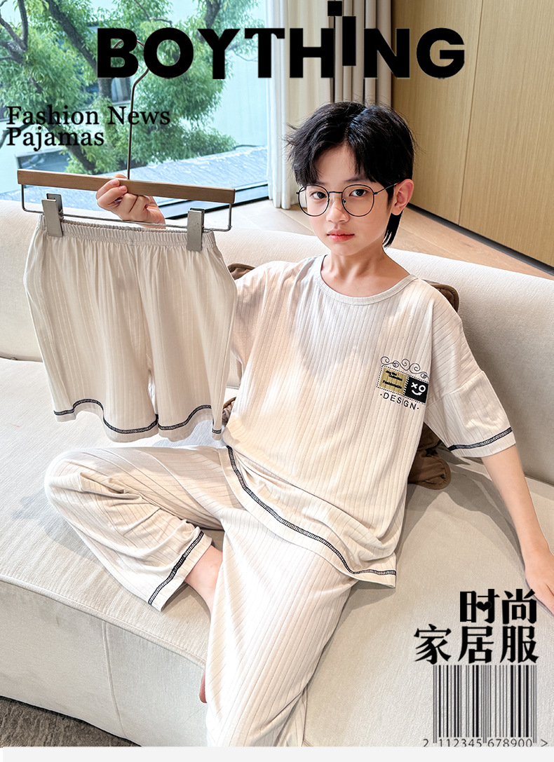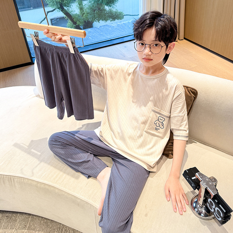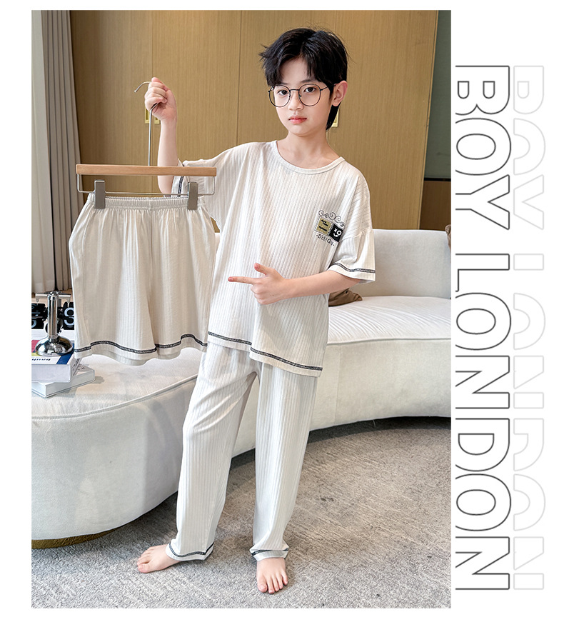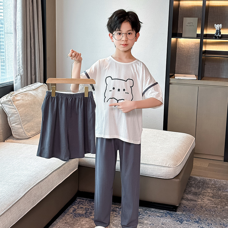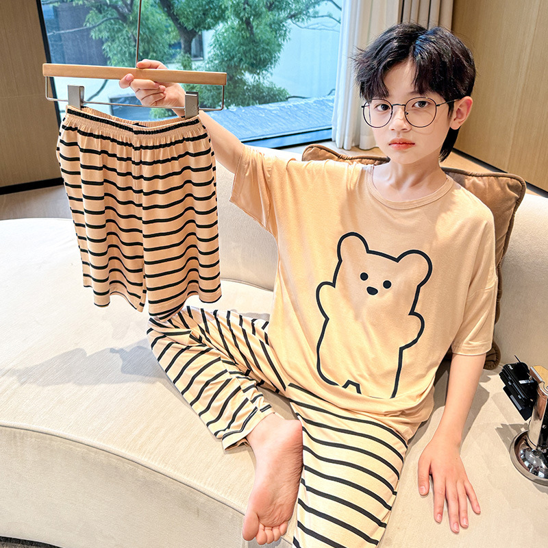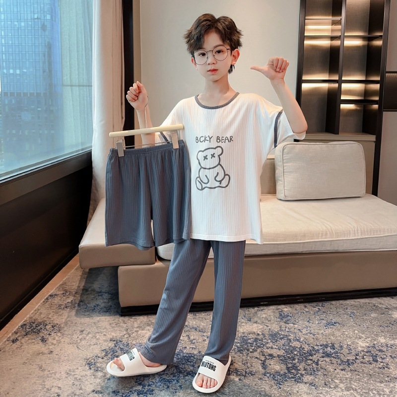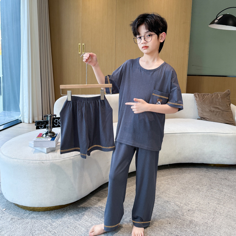 중대형 아동 남아 캐주얼 홈웨어 세트 A급 아동용 모달 잠옷 3종 세트 2025년 여름 신상품