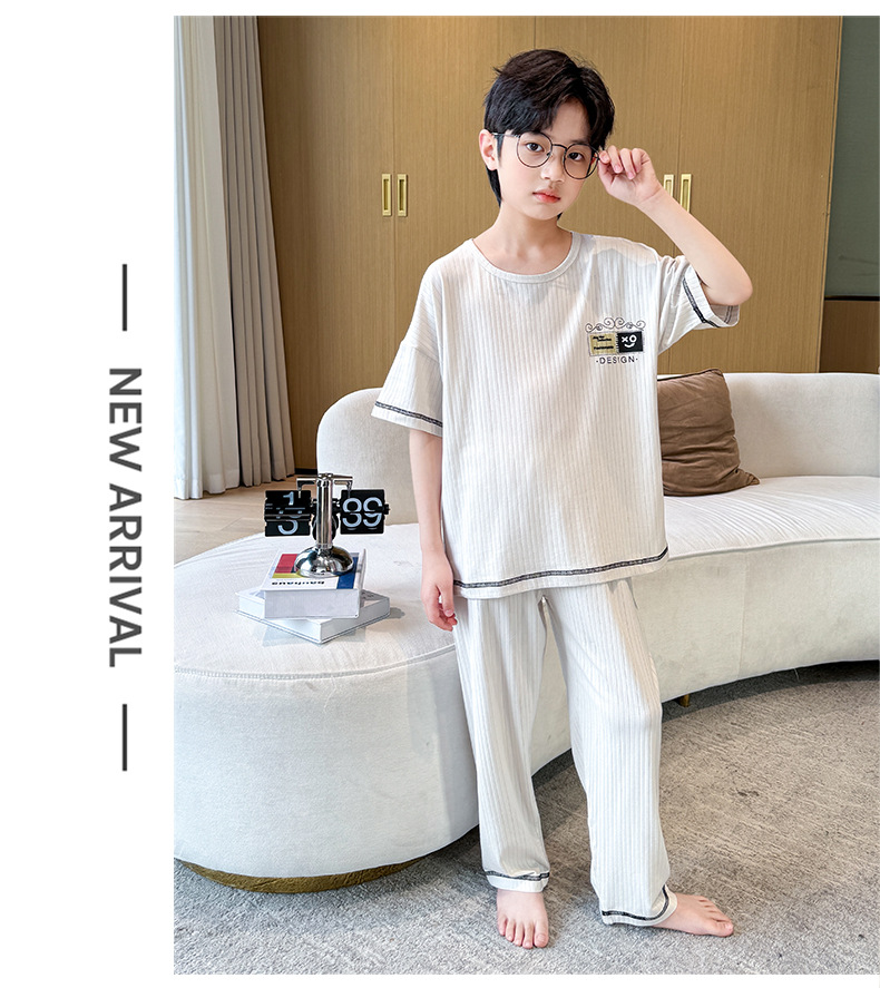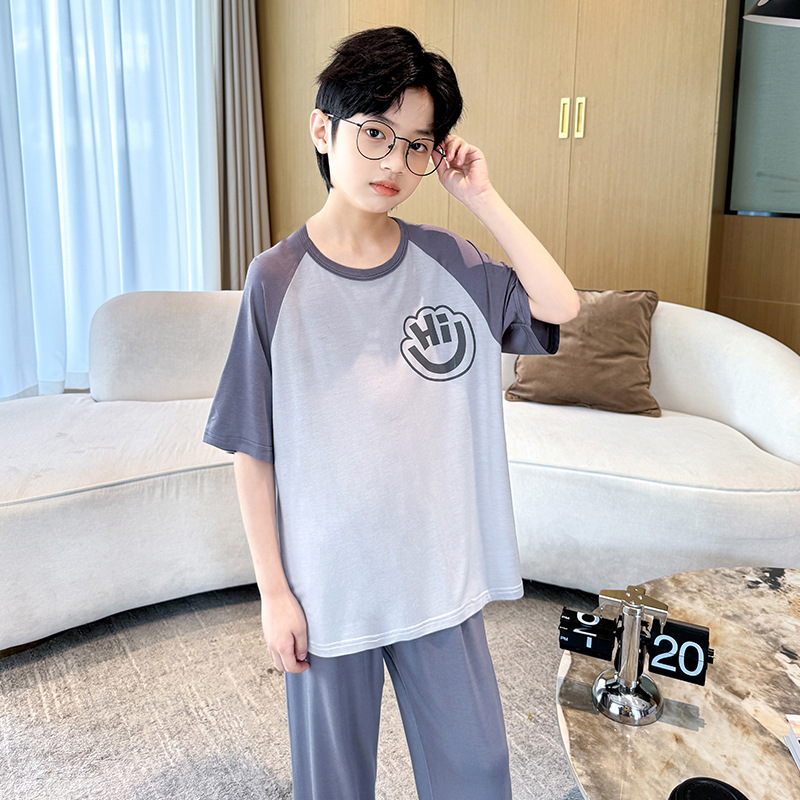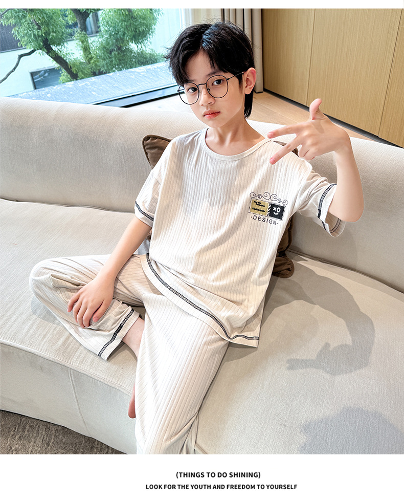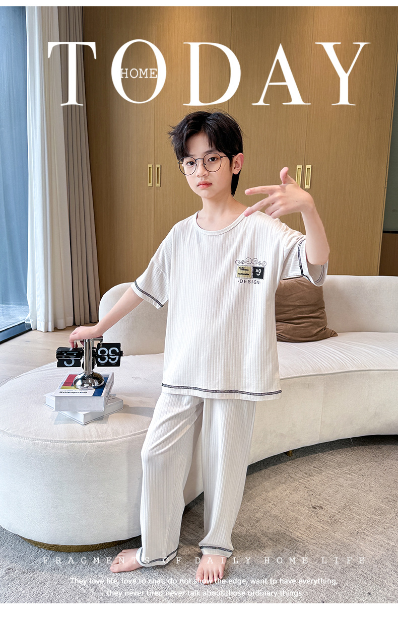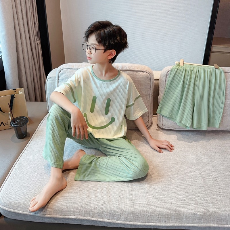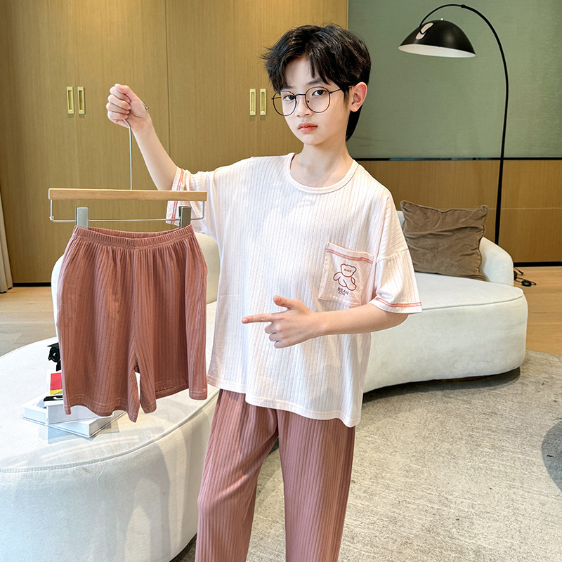 중대형 아동 남아 캐주얼 홈웨어 세트 A급 아동용 모달 잠옷 3종 세트 2025년 여름 신상품