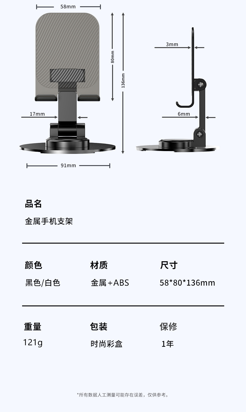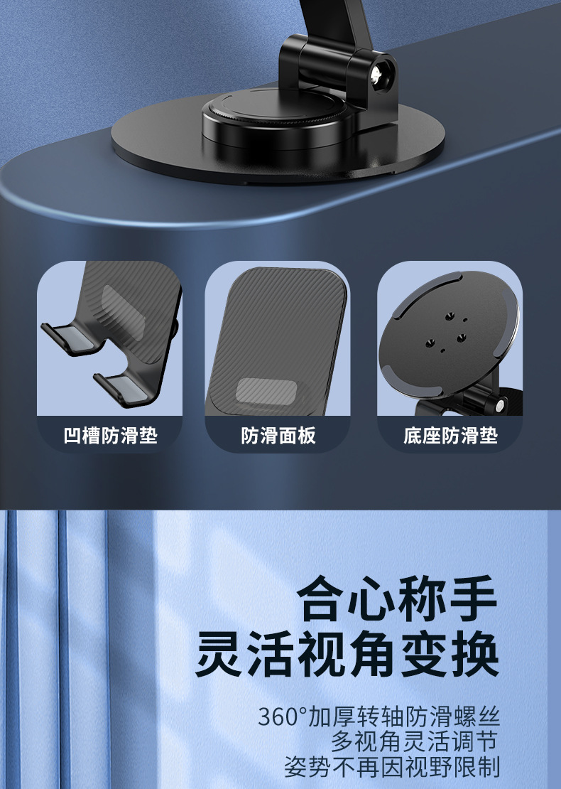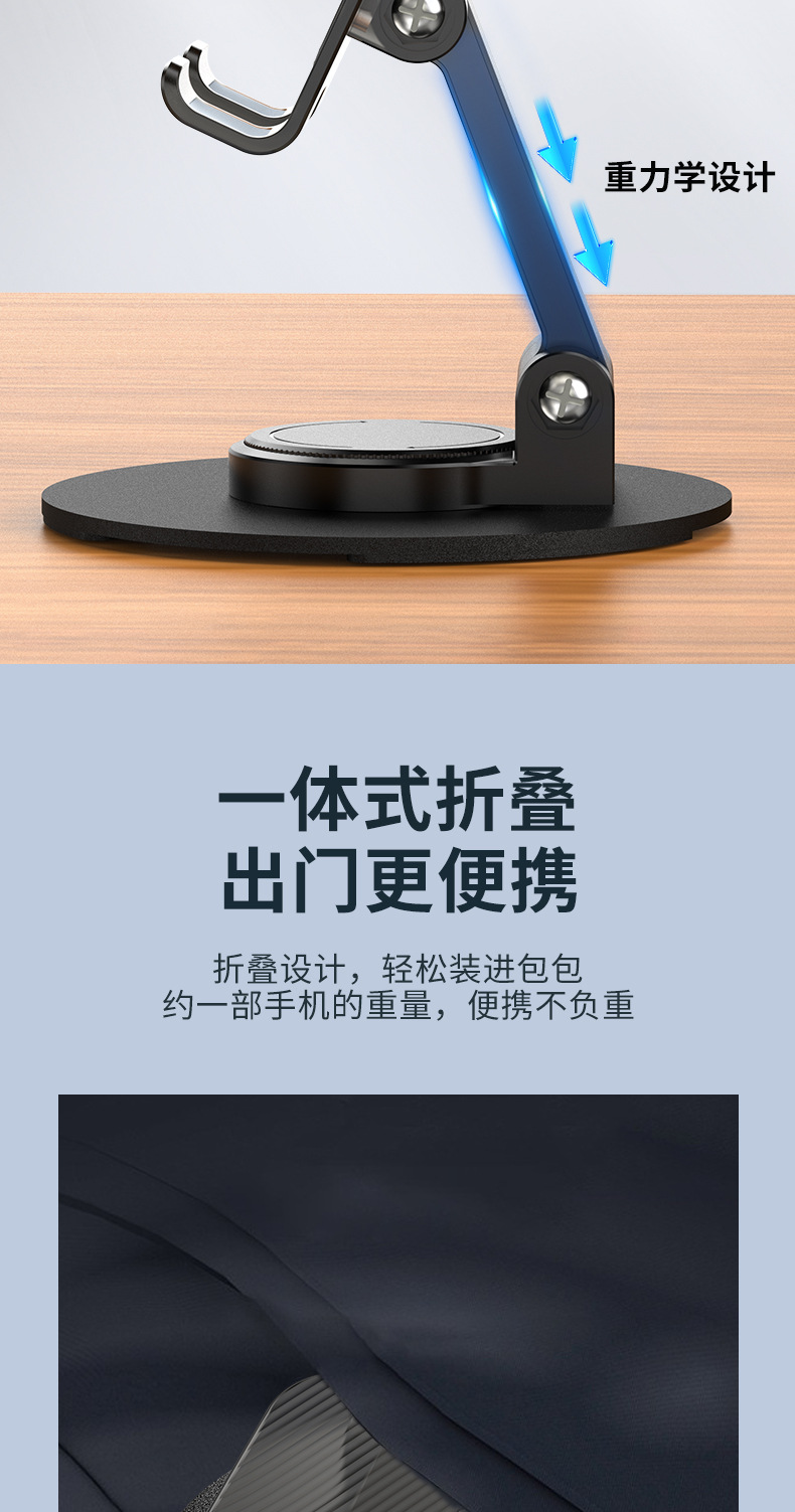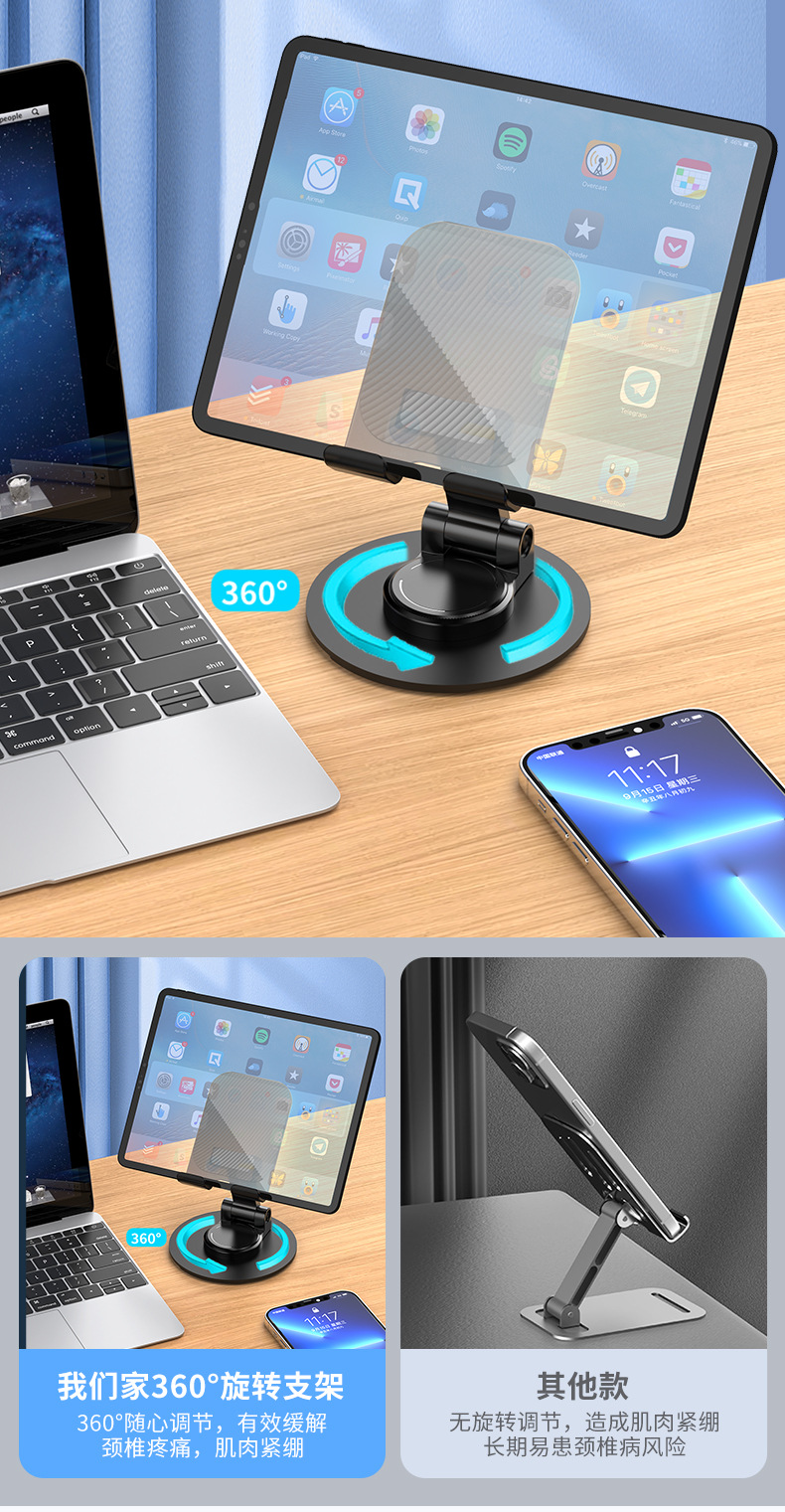 맞춤형 휴대폰 거치대 제조업체, 재고 도매, 해외배송, 전체 금속 360도 회전 접이식 데스크탑 휴대폰 거치대